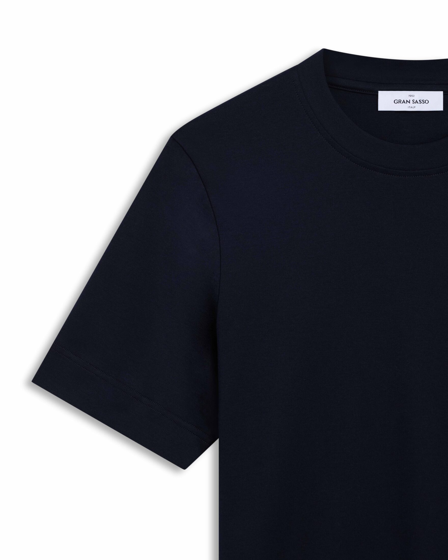 Klassisk T-skjorte fra Gran Sasso i myk og behagelig bomull. Modellen har rund hals, korte ermer og en ren, minimalistisk design som gjør den enkel å kombinere. En tidløs bomulls-T-skjorte som fungerer som et solid baseplagg i enhver garderobe.