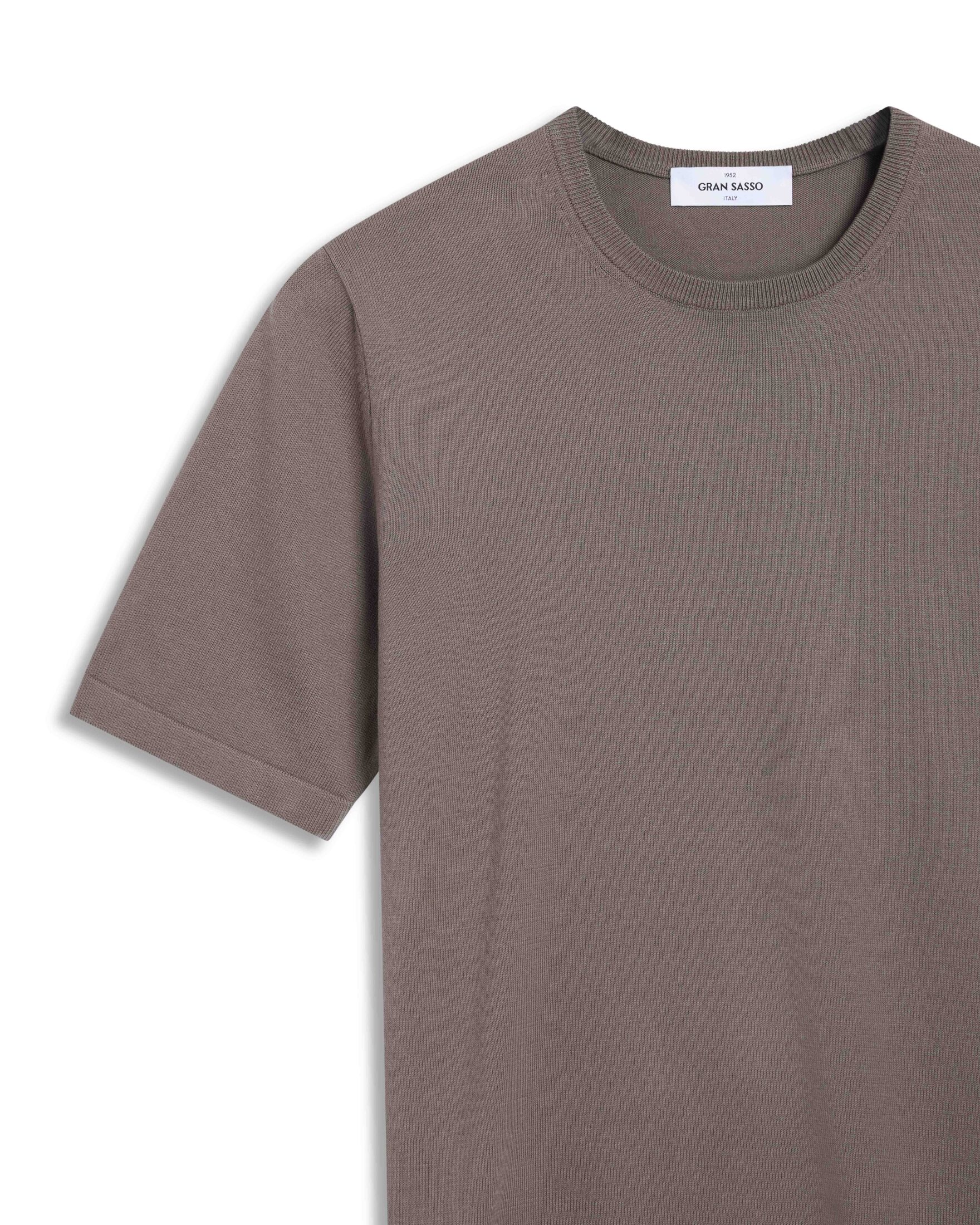 Strikket t-skjorte til herre fra Gran Sasso i 100% bomull. Modellen har rund hals og en lett, pustende kvalitet med et eksklusivt uttrykk. Perfekt alene eller under blazer og jakke.