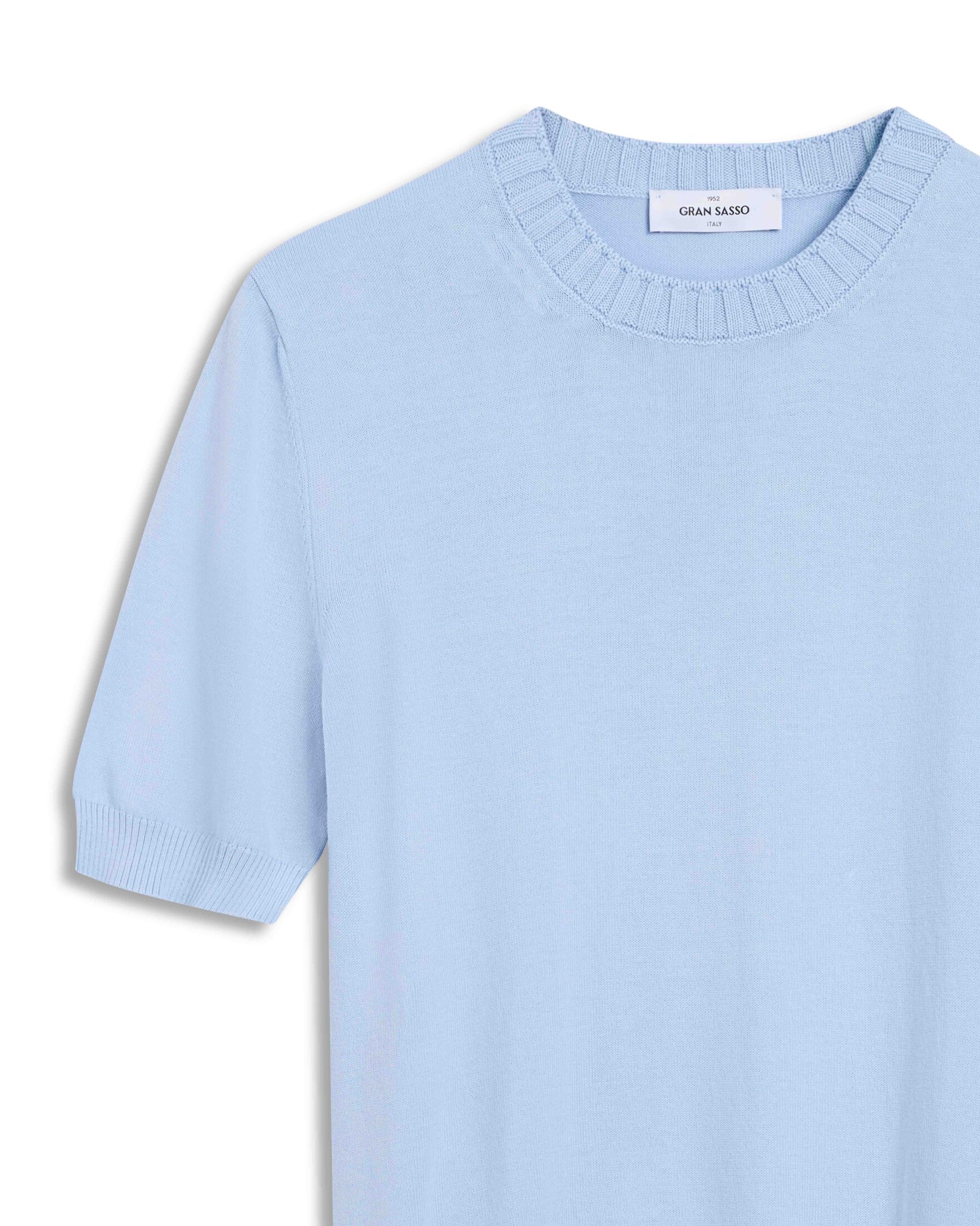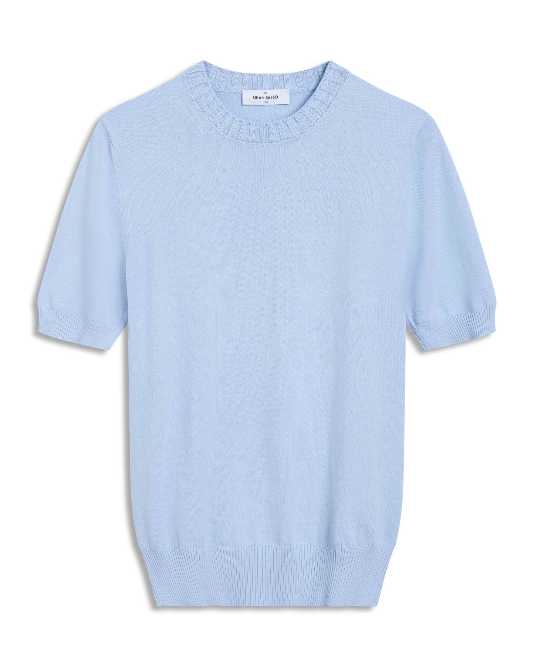 Strikket t-skjorte fra Gran Sasso i 100 % bomull. Modellen har rund hals, ribbestrikkede avslutninger og en myk, lett kvalitet som faller pent. En allsidig bomulls-t-skjorte som passer like godt alene som under blazer eller jakke.