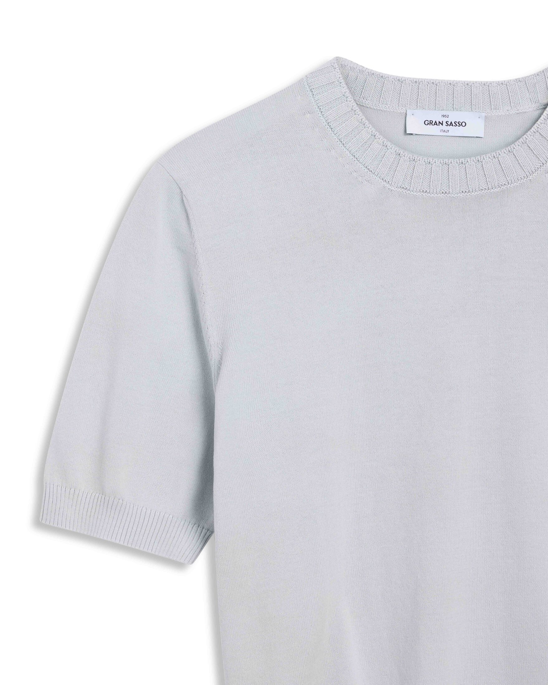 Strikket t-skjorte fra Gran Sasso i 100 % bomull. Modellen har rund hals, ribbestrikkede avslutninger og en myk, lett kvalitet som faller pent. En allsidig bomulls-t-skjorte som passer like godt alene som under blazer eller jakke.