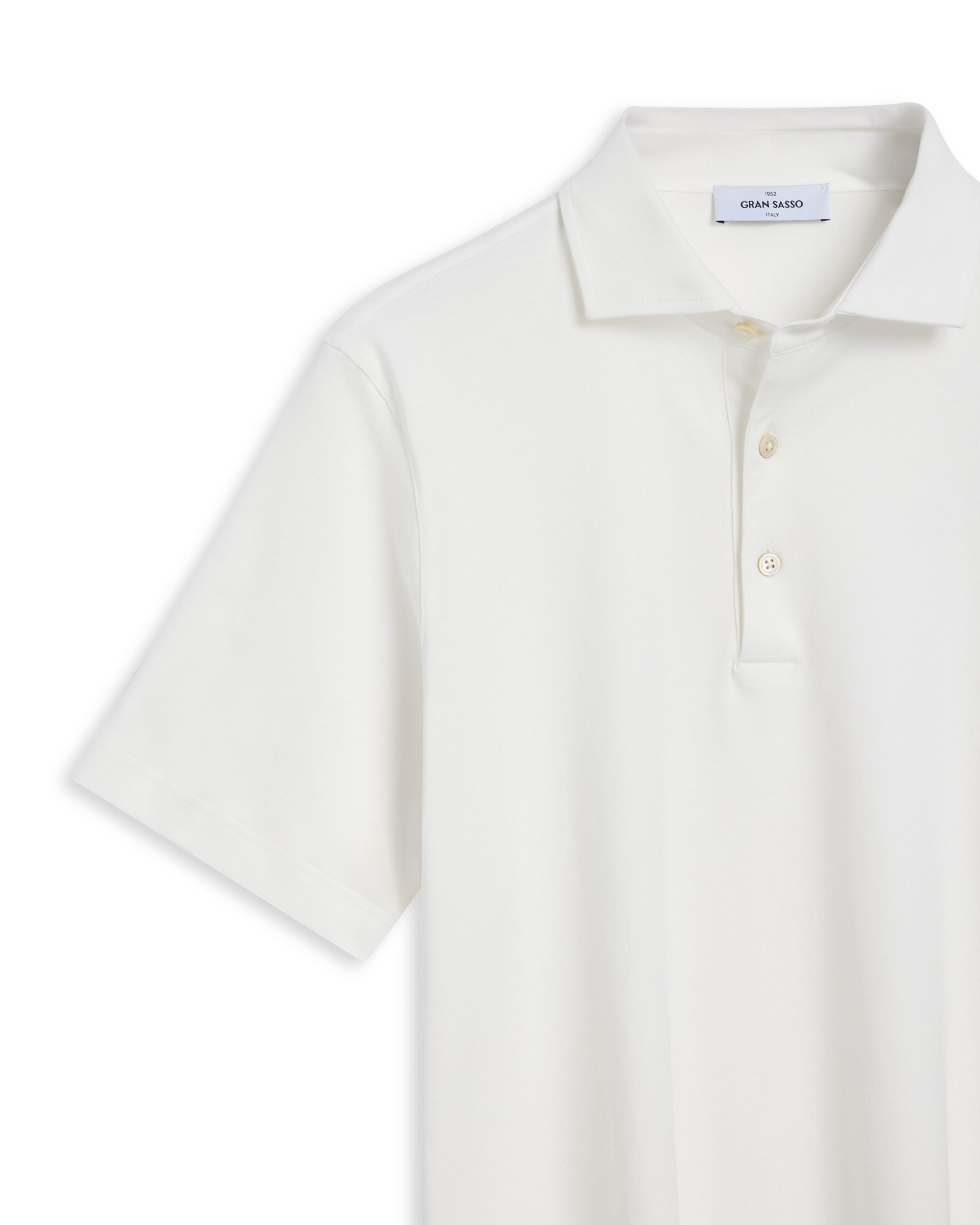 Klassisk poloskjorte fra Gran Sasso i 100% bomull. Modellen har krage med knappestolpe, korte ermer og en myk, behagelig kvalitet med pent fall. En tidløs bomullspolo som passer like godt til hverdags som til mer velkledde anledninger.