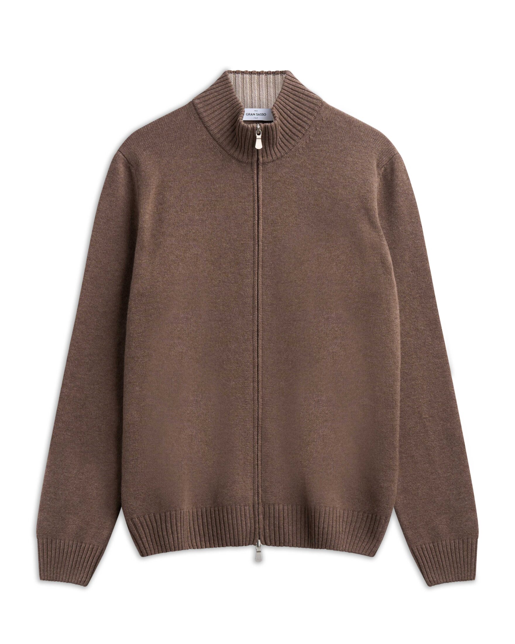 En elegant og allsidig cardigan til herre fra Gran Sasso, laget i en eksklusiv blanding av ull, viskose og kasjmir. Den har høy ribbestrikket hals, toveis glidelås og ribb nederst og på ermene for en komfortabel og tidløs passform. Den myke kvaliteten og rene designet gjør plagget perfekt til både hverdagsbruk og mer formelle anledninger.
