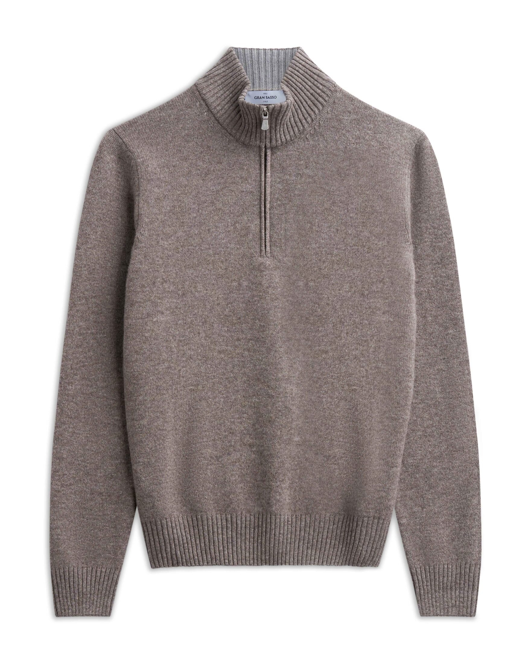 En tidløs og elegant genser til herre fra Gran Sasso, laget i en luksuriøs blanding av ull, viskose og kasjmir. Genseren har høy hals med glidelås og ribbestrikkede kanter som gir en behagelig og fleksibel passform. Den myke kvaliteten sørger for optimal komfort og varme, mens det rene designet gjør den enkel å kombinere med både skjorte og jakke. Et perfekt valg for en raffinert, avslappet stil.