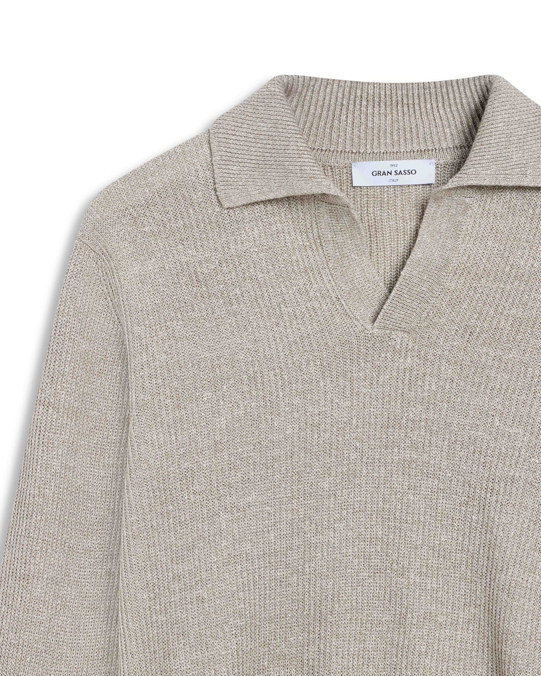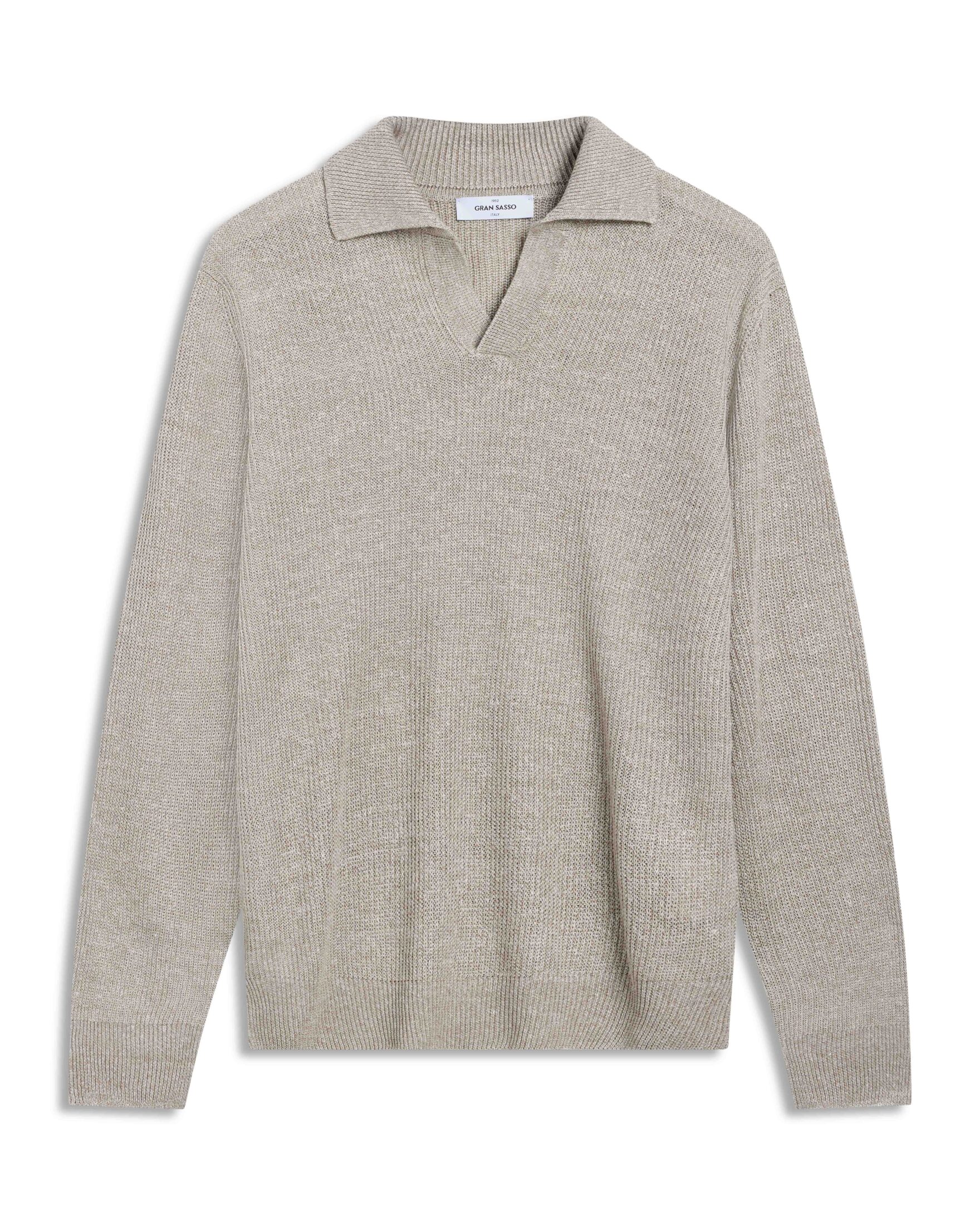 Strikket genser fra Gran Sasso i en lett og pustende blanding av lin og bomull. Modellen har åpen krage, ribbestrikkede avslutninger og en strukturert overflate som gir et sofistikert uttrykk. Et stilrent og komfortabelt alternativ som passer perfekt til en avslappet, men velkledd sommerstil.