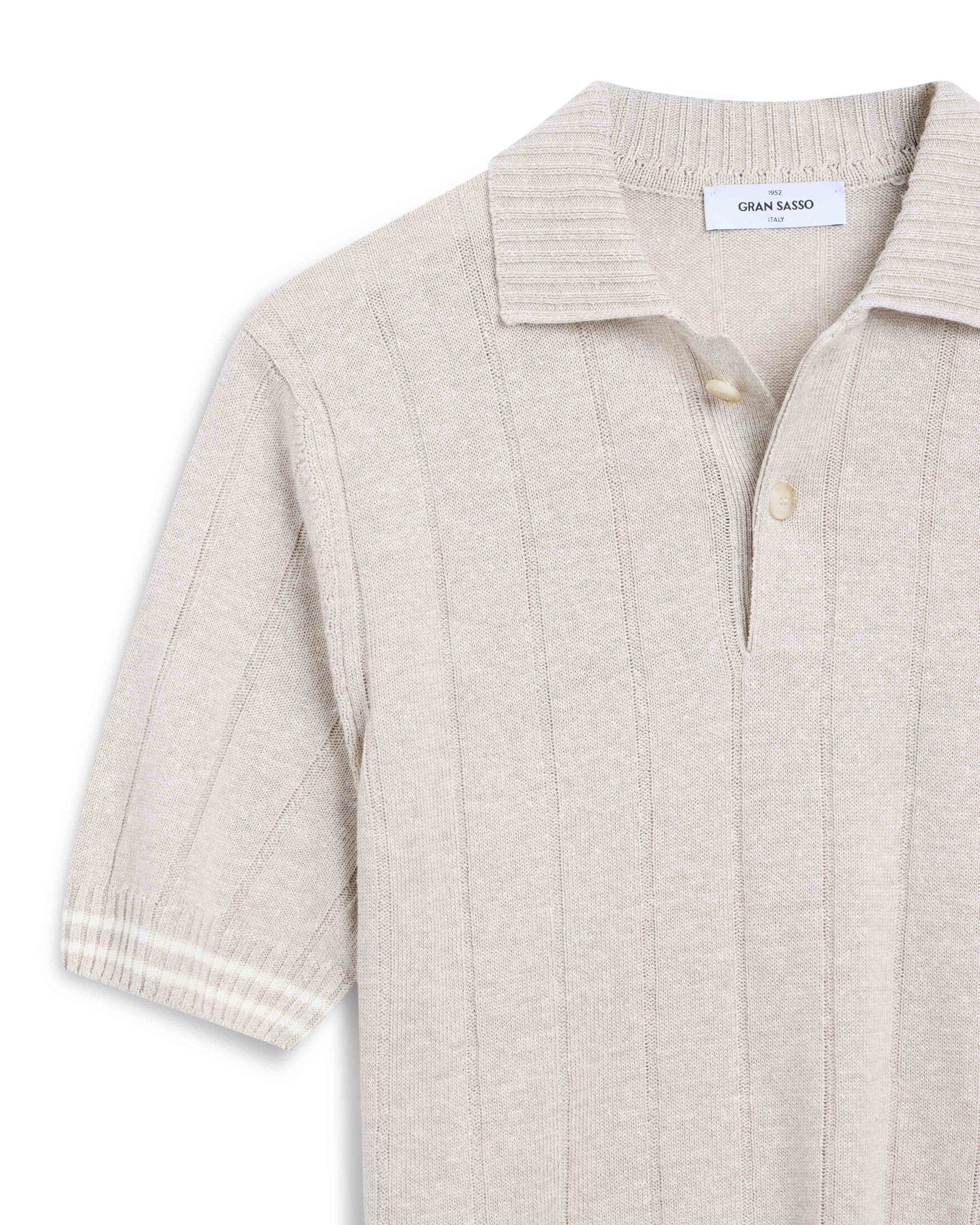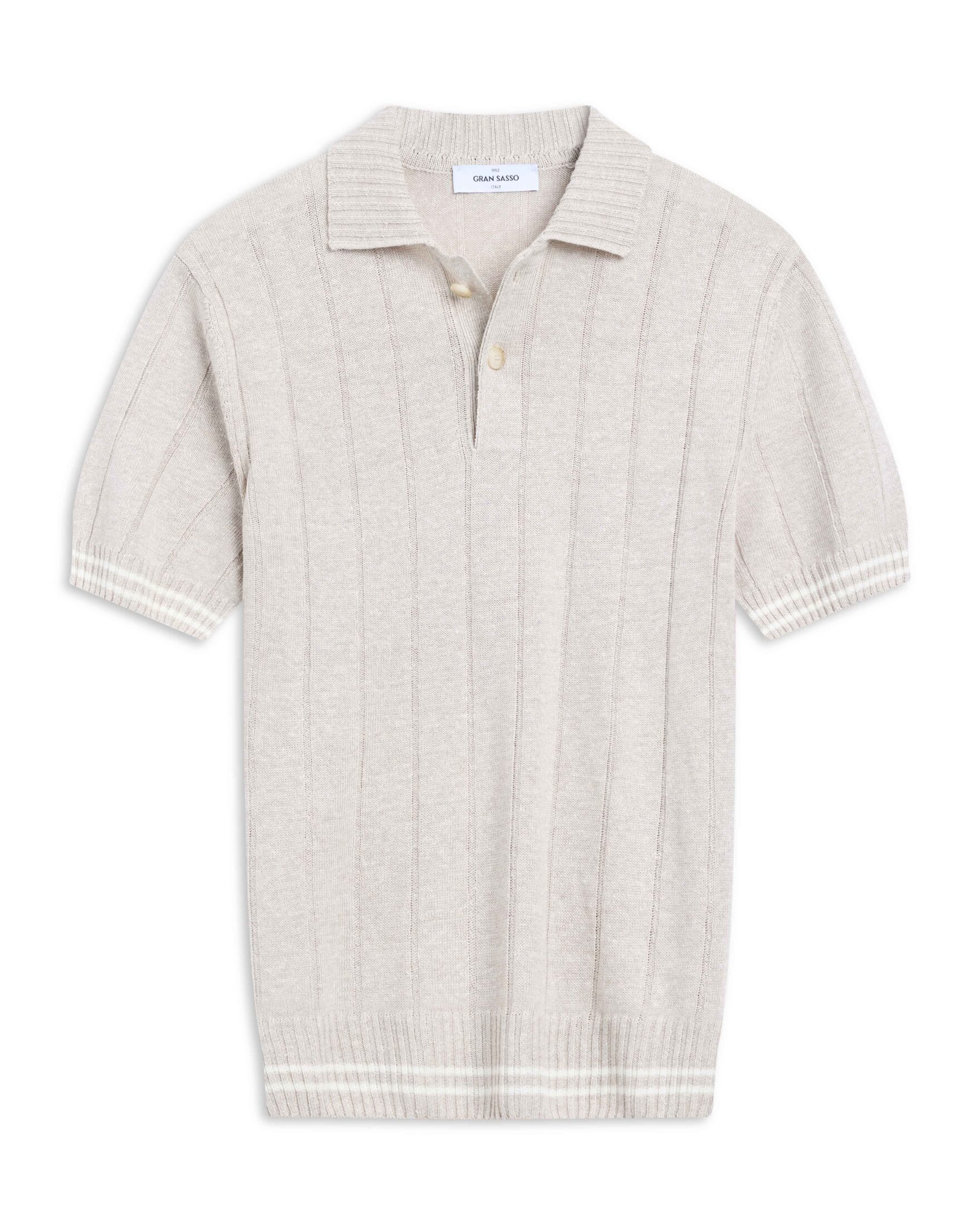 Strikket poloskjorte fra Gran Sasso i en lett og pustende blanding av lin og bomull. Modellen har ribbestrikket struktur, klassisk krage med knappelukking og kontraststriper på ermer og nederkant. En sommerlig og raffinert polo som kombinerer komfort med et sporty, stilrent uttrykk.