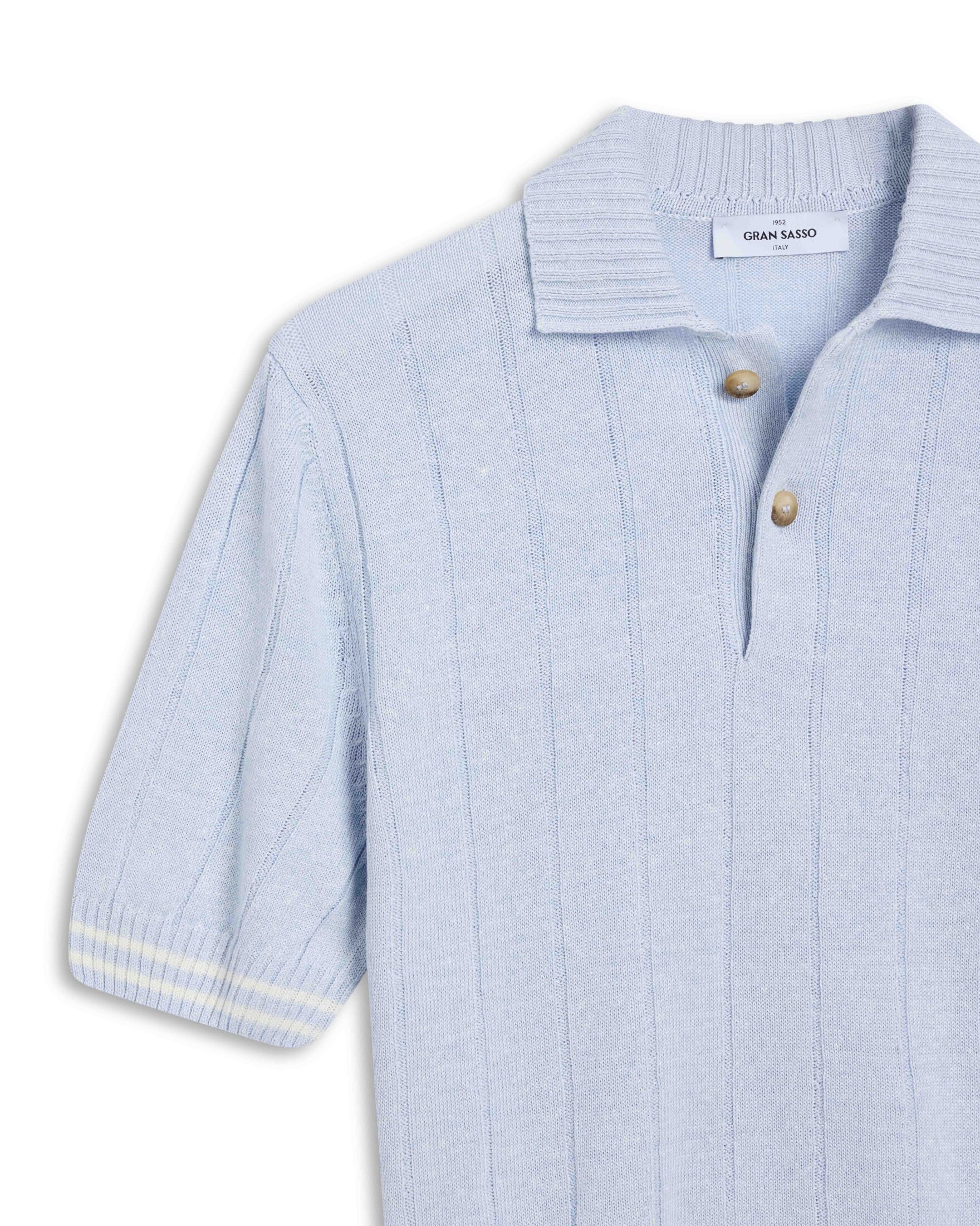 Linen Cotton Ribbed Polo – Lyseblå