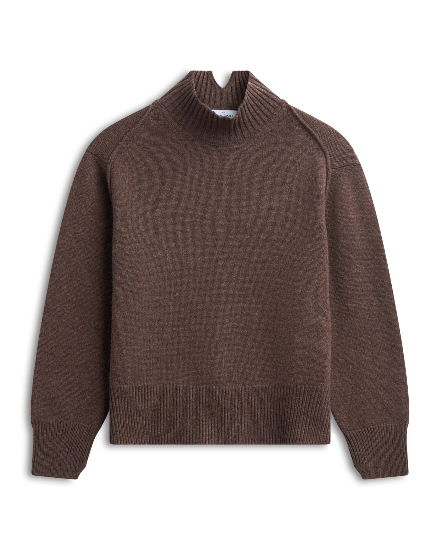 En stilren genser til dame fra Gran Sasso, laget i en luksuriøs blanding av ull, viskose og kasjmir. Den har en høy, ribbestrikket hals med diskret V-splitt bak, som gir et moderne og feminint uttrykk. Den myke kvaliteten gir både varme og komfort, mens den minimalistiske designen gjør genseren enkel å kombinere med både jeans og skjørt. Et elegant basisplagg for enhver garderobe.