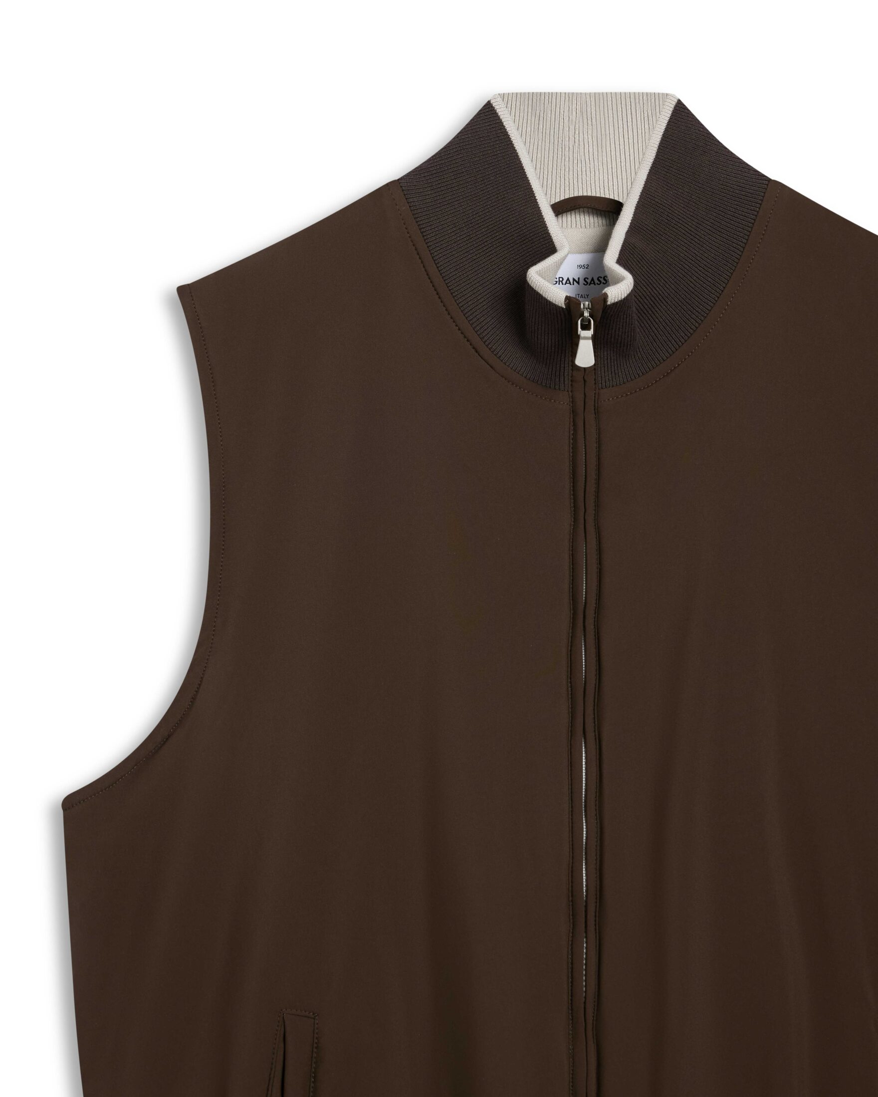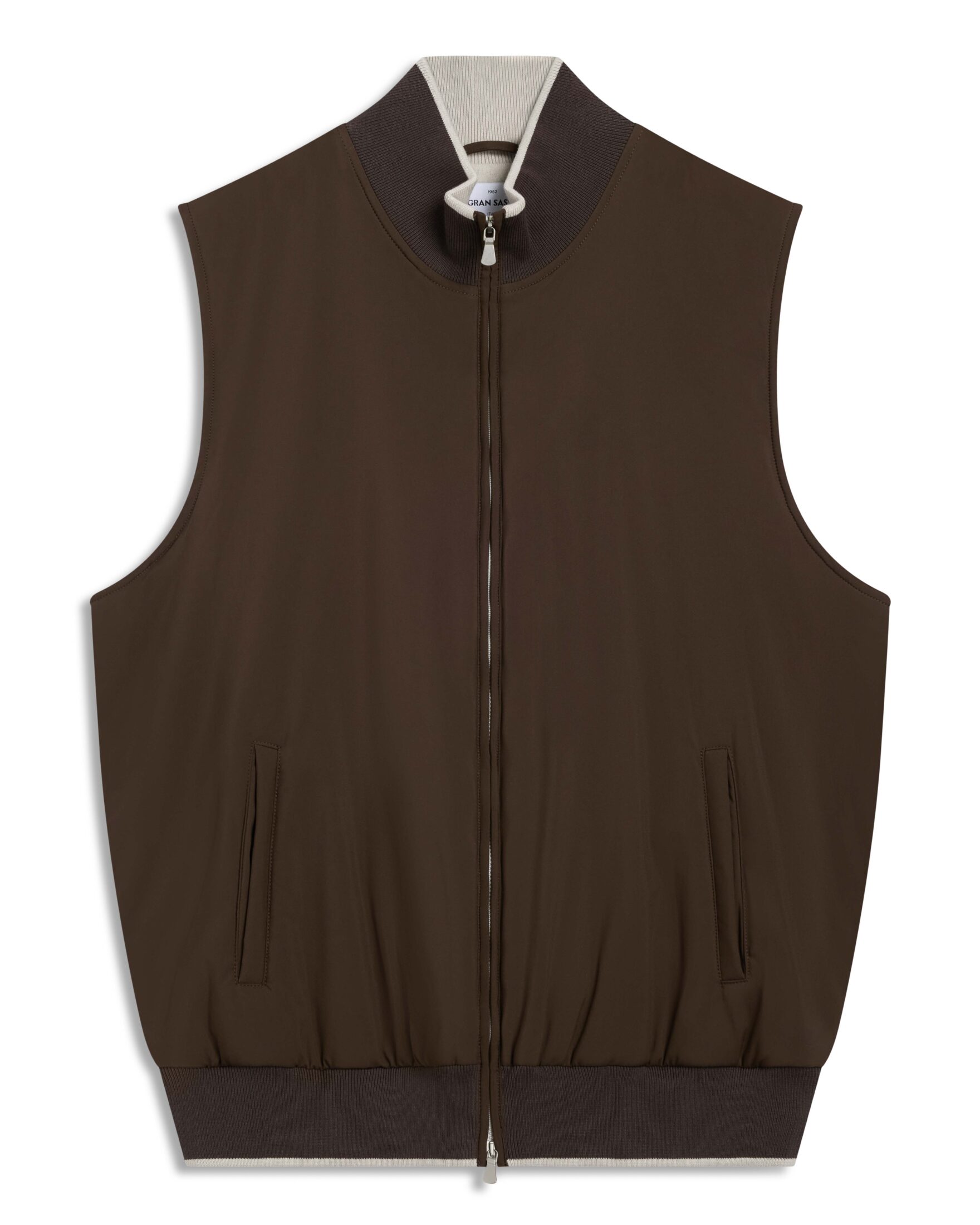 Vattert vest fra Gran Sasso i slitesterk polyester med lett polyesterfyll. Modellen har toveis glidelås, stikklommer og ribbestrikket krage og kant i bomull for økt komfort. En lett og funksjonell vest som passer perfekt som lag-på-lag gjennom sesongen.