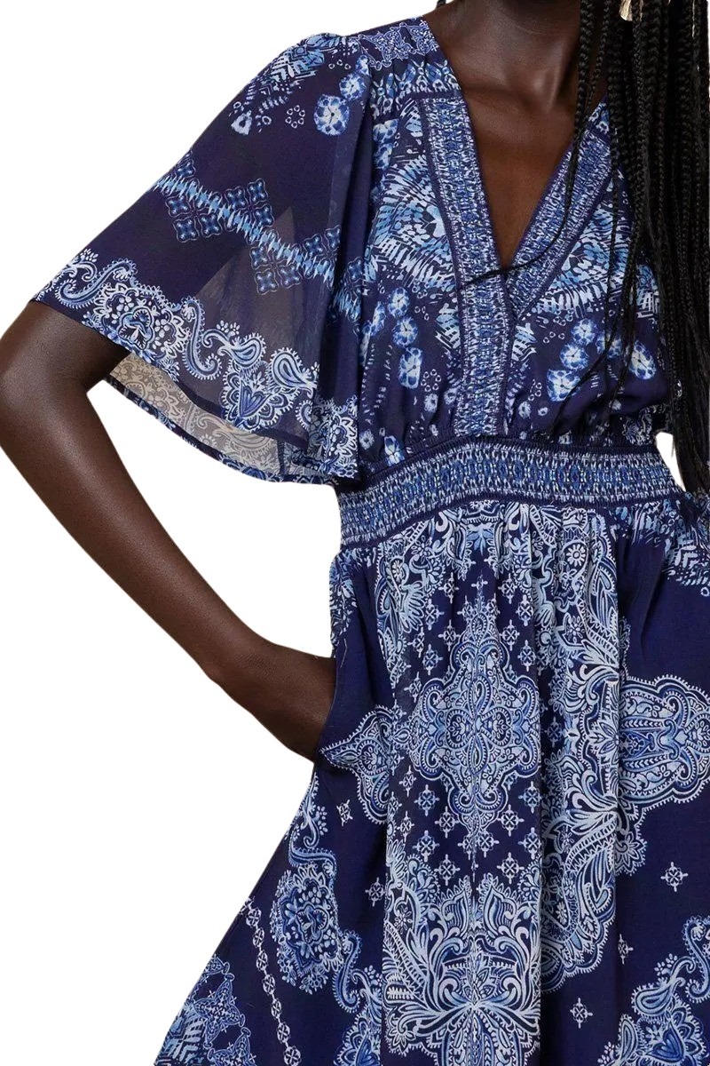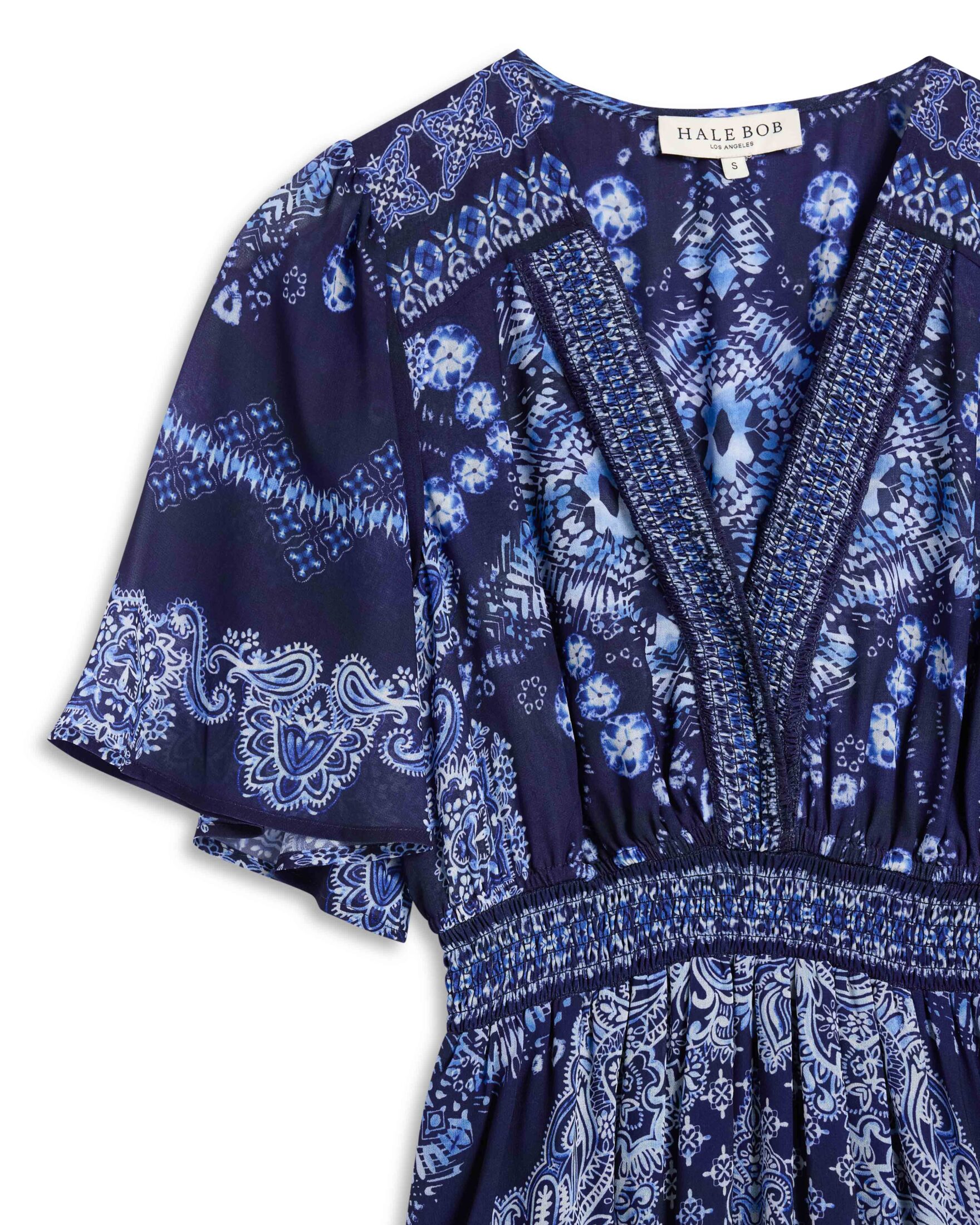 Feminin maxikjole til dame fra Hale Bob. Laget i vasket chiffon har et lett og luftig fall som gir et elegant uttrykk. Smock i hals og midje fremhever silhuetten, mens albuelange klokkeermer og lommer på hoftene gir en avslappet og komfortabel følelse. Kjolen er helfôret i myk viskose for ekstra komfort gjennom hele dagen.