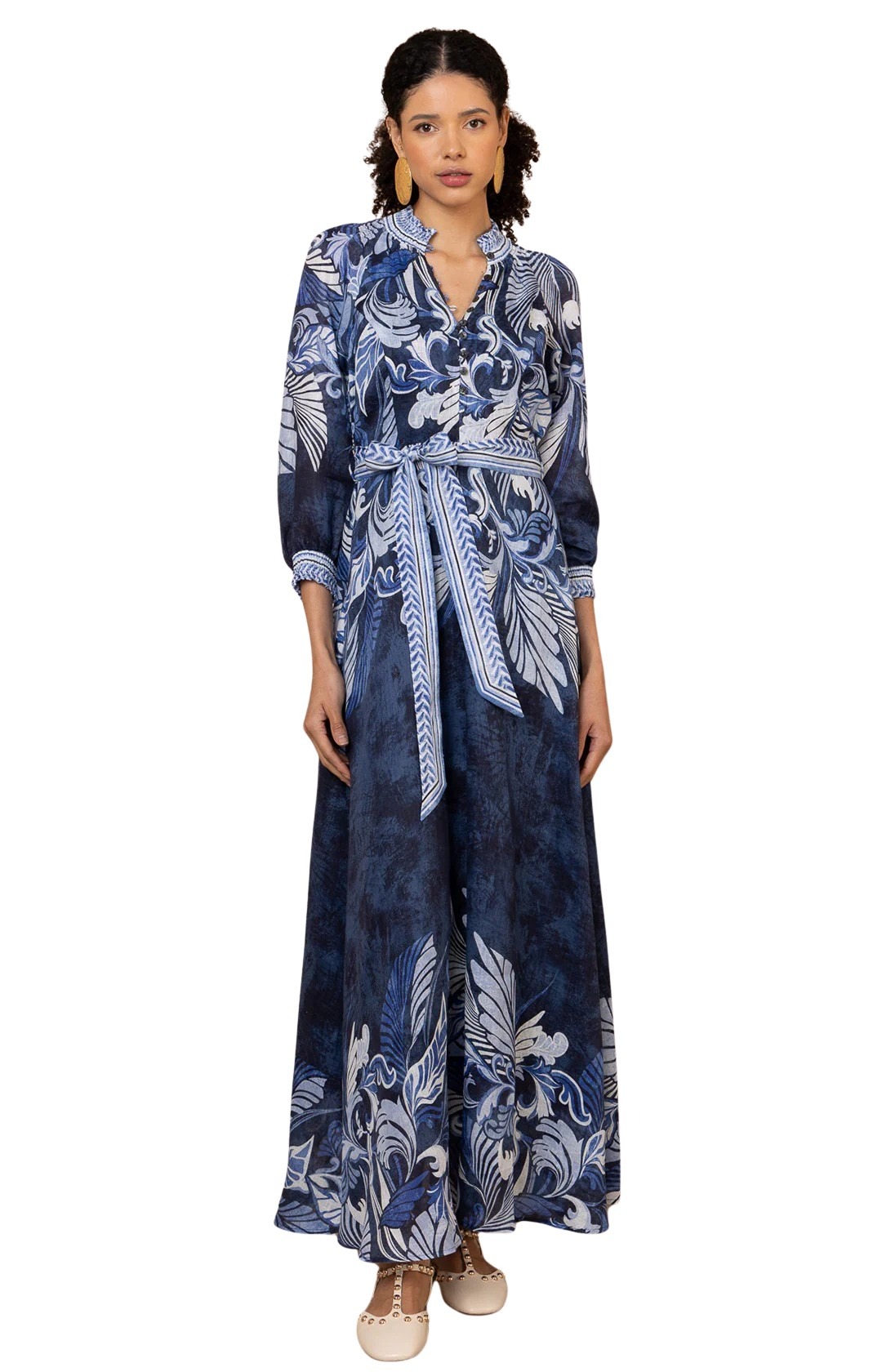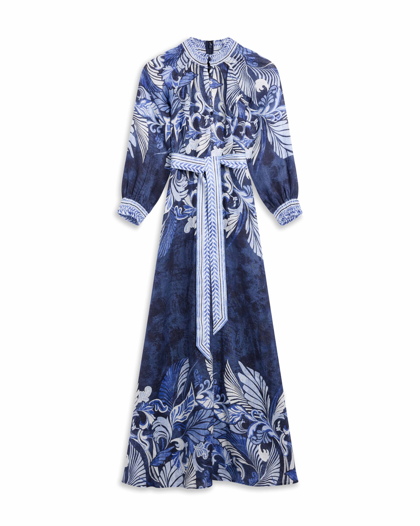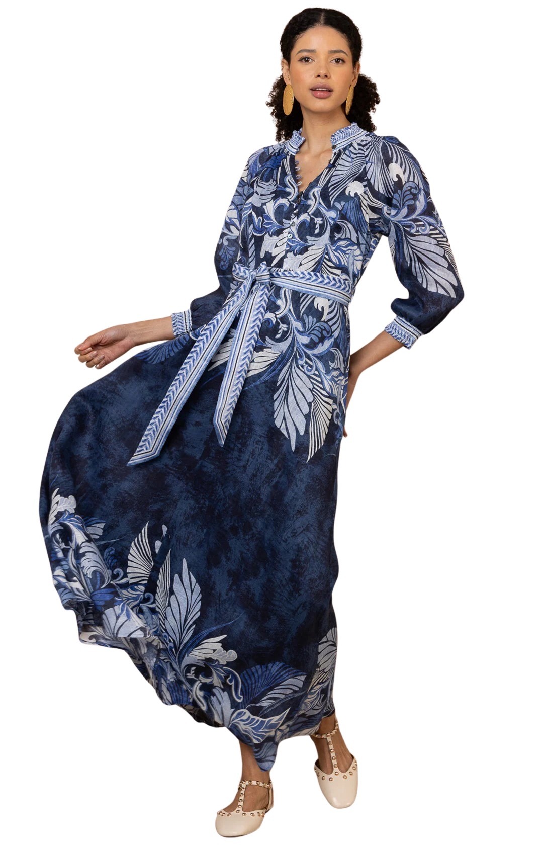 Elegant maxikjole til dame fra Hale Bob. Laget i vasket lin og har et lett, eksklusivt uttrykk med utsvingt skjørt, lommer i siden og knytebelte som fremhever midjen. Den har knapper i front, smock i krage og mansjetter samt skjult glidelås bak for en flatterende passform. En feminin og anvendelig kjole som fungerer like godt til sommerfester som til stilfulle hverdager.