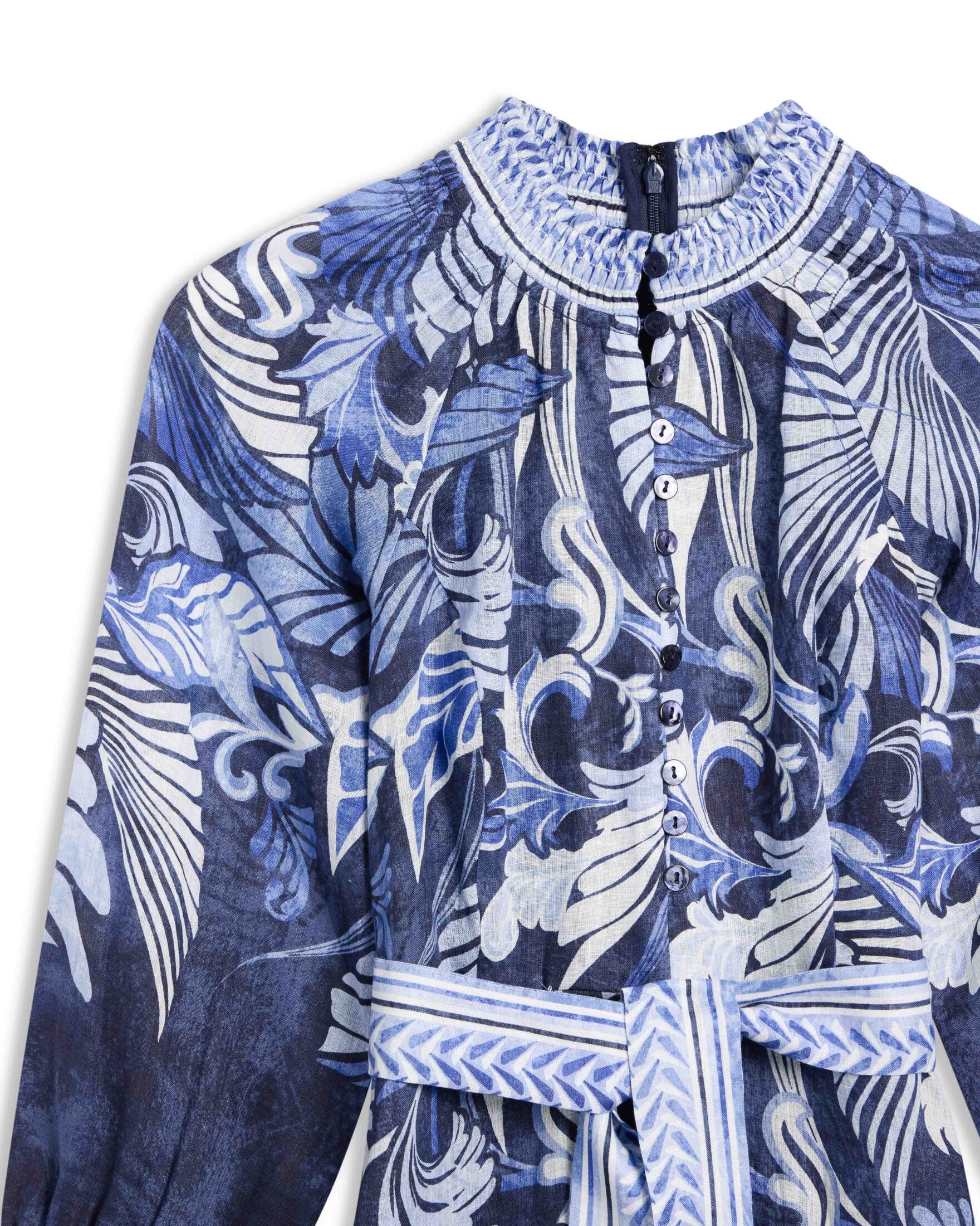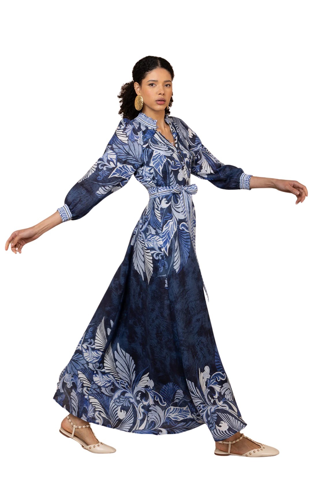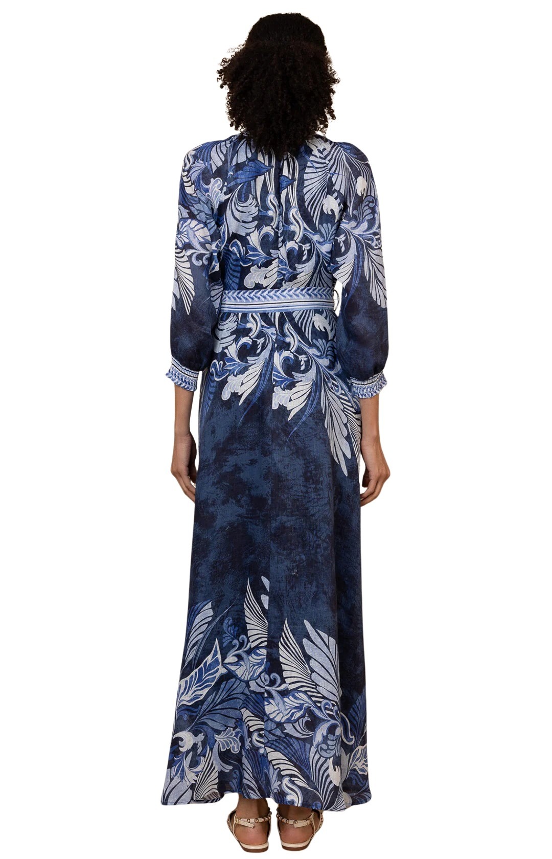 Elegant maxikjole til dame fra Hale Bob. Laget i vasket lin og har et lett, eksklusivt uttrykk med utsvingt skjørt, lommer i siden og knytebelte som fremhever midjen. Den har knapper i front, smock i krage og mansjetter samt skjult glidelås bak for en flatterende passform. En feminin og anvendelig kjole som fungerer like godt til sommerfester som til stilfulle hverdager.