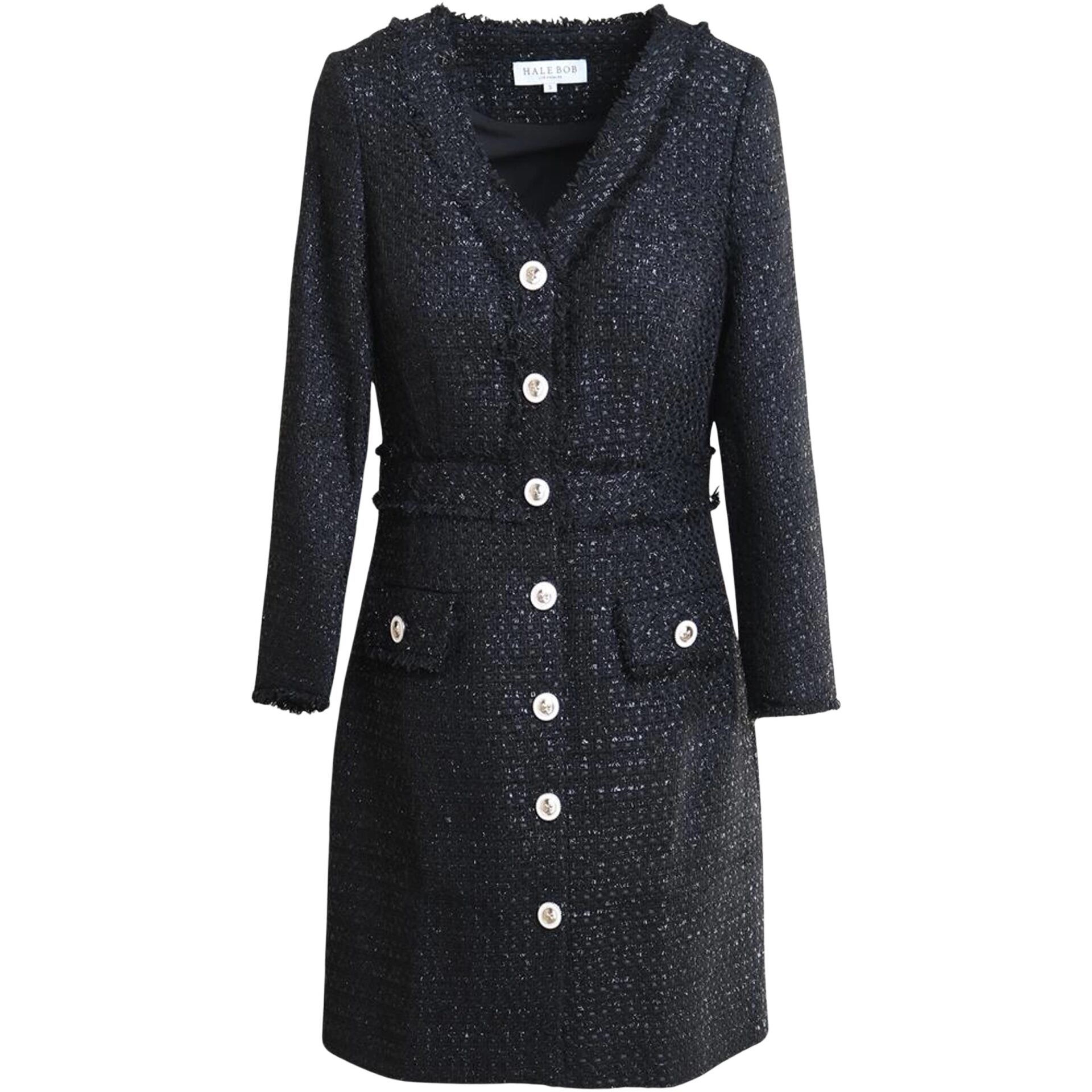 Kjole til dame fra Hale Bob. Laget i delikat bouclé med glitrende finish. Knappelukking foran med lommer på hoftene. Style kjolen med boots og gullsmykker for en moderne og sofistikert look.