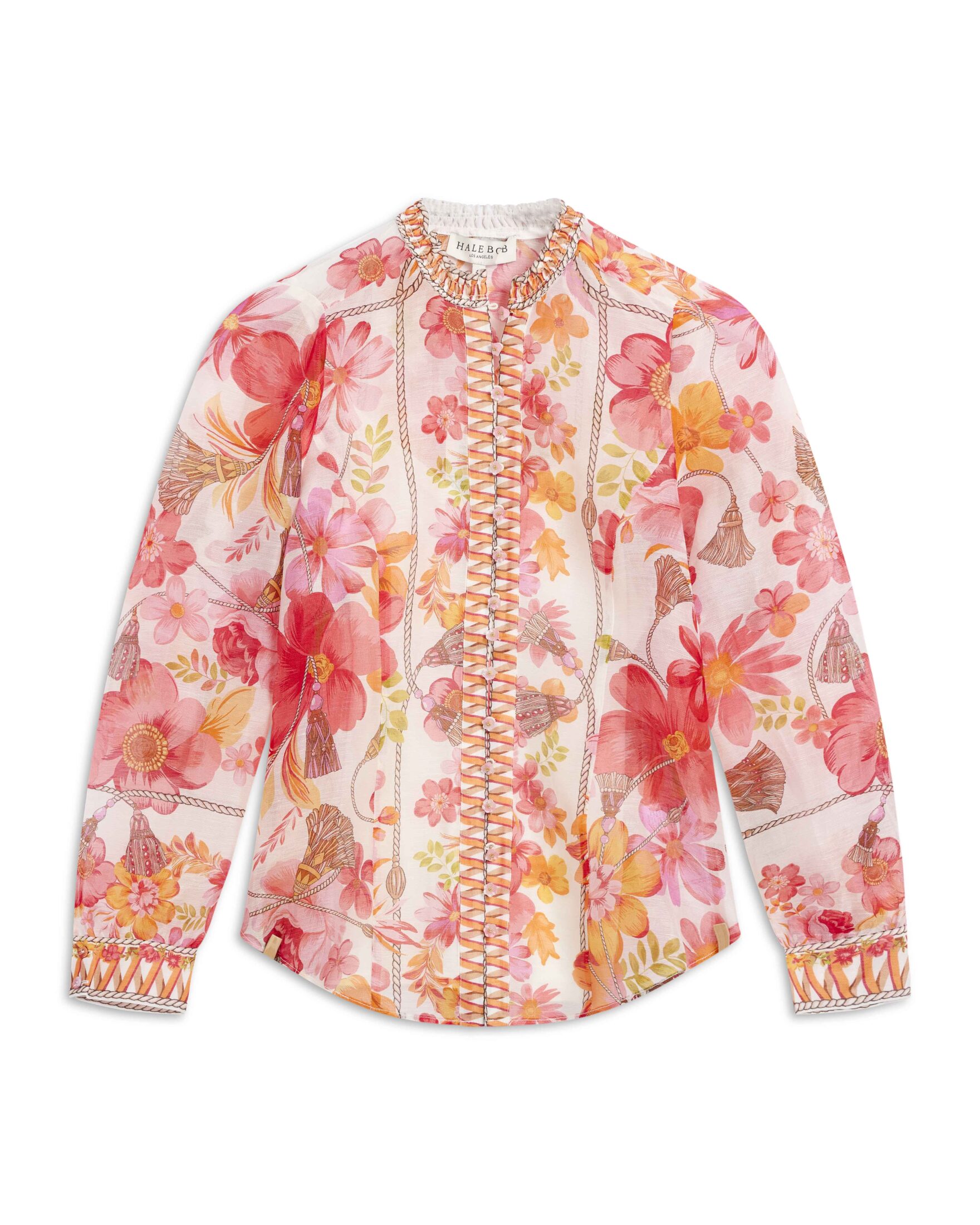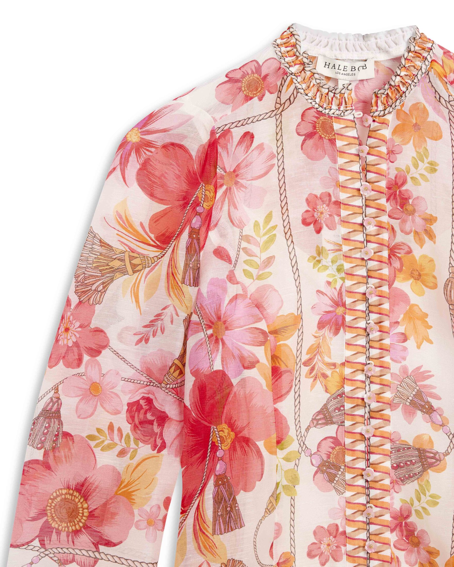 Lett og elegant bluse fra Hale Bob. Laget i en eksklusiv blanding av silke og lin. Den har smal passform med prinsessesømmer, blomsterknapper foran og lange ermer med mansjett. Perfekt når du vil ha et feminint og gjennomført uttrykk.