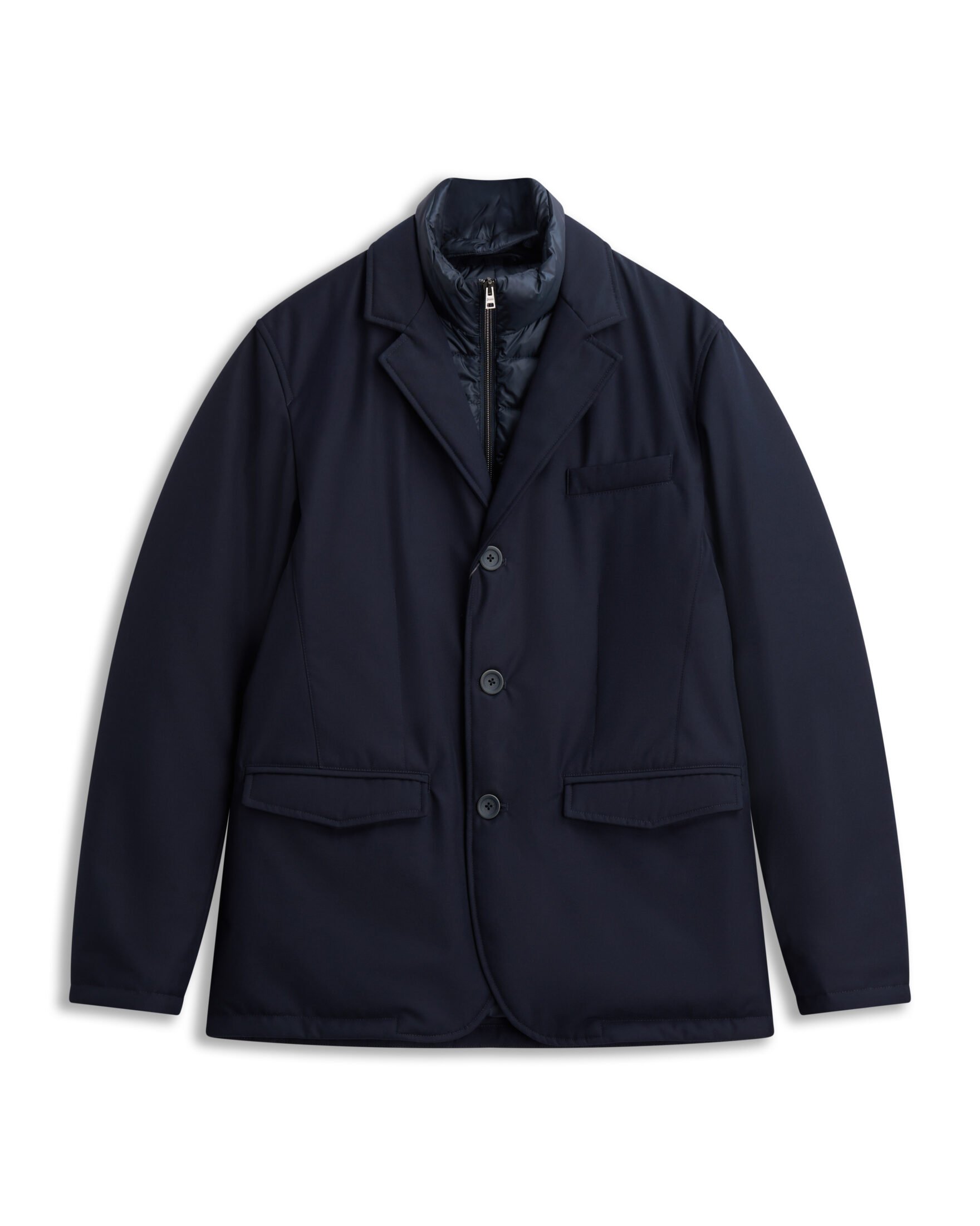 Stilfull blazerjakke til herre fra Herno i teknisk stoff. Jakken har en skreddersydd silhuett og en avtakbar smekke som gir ekstra beskyttelse i mellomsesongen. Med sitt pustende og vindtette materiale er dette et perfekt valg for bybruk. Et sofistikert ytterplagg som fungerer like godt til jobb som til fritid.