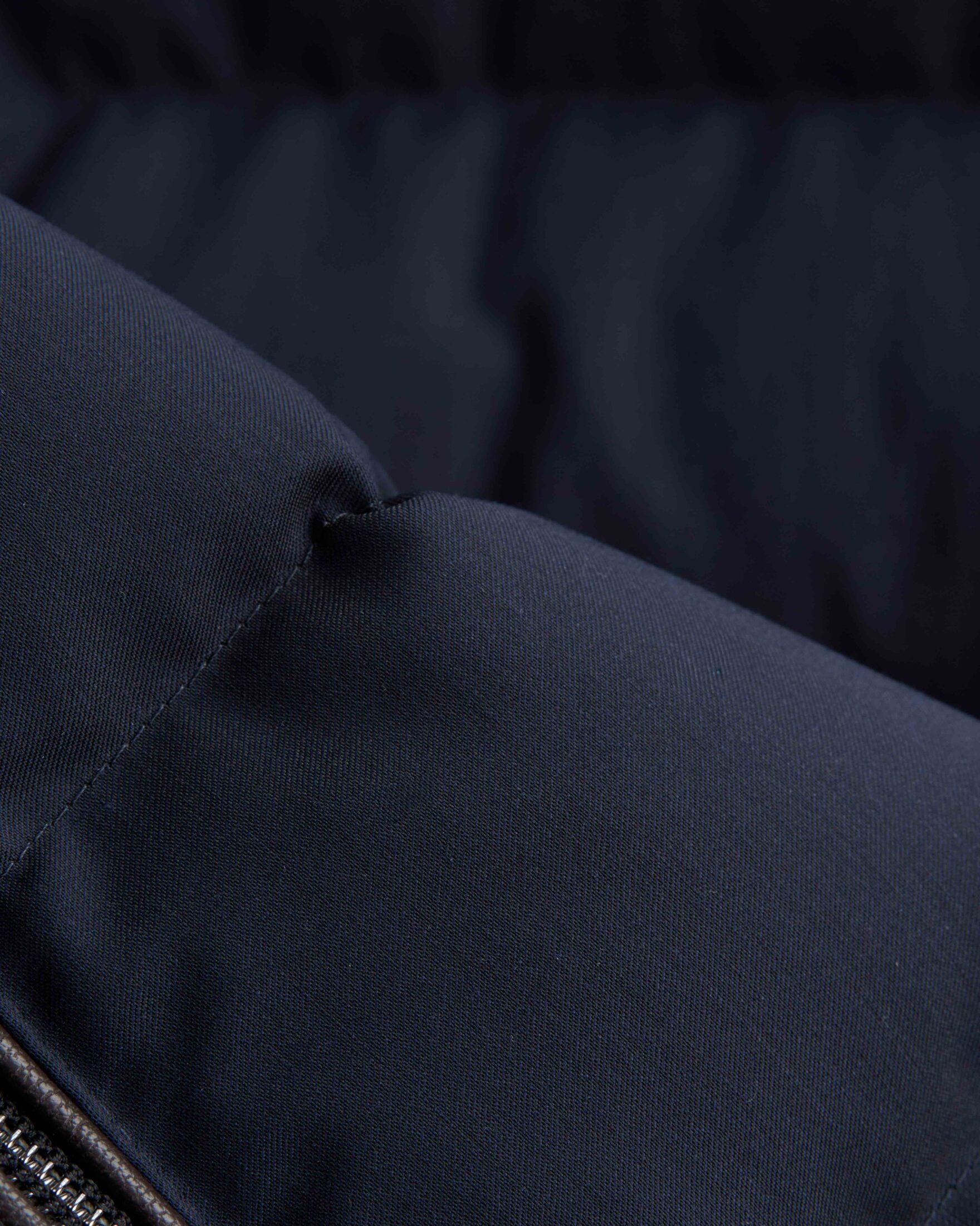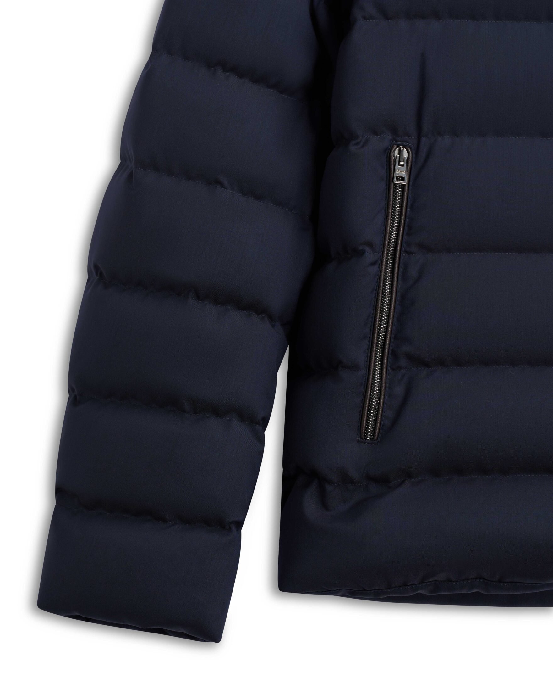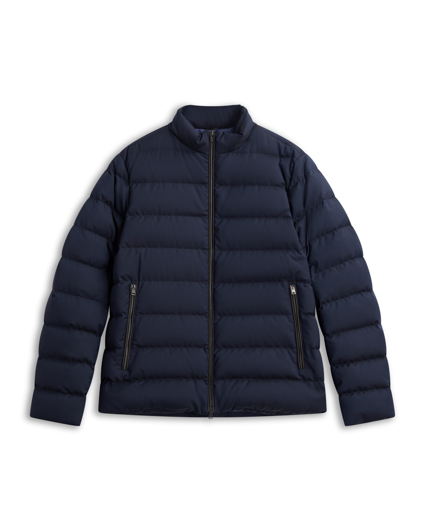 Moderne bomberjakke til herre fra Herno. Laget i teknisk ull- og polyesterstoff med en myk følelse og elegant finish. Jakken kombinerer inspirasjon fra fritidsklær med skreddersydd presisjon. Resultatet er en tidløs klassiker som passer like godt til hverdags som til mer formelle anledninger.