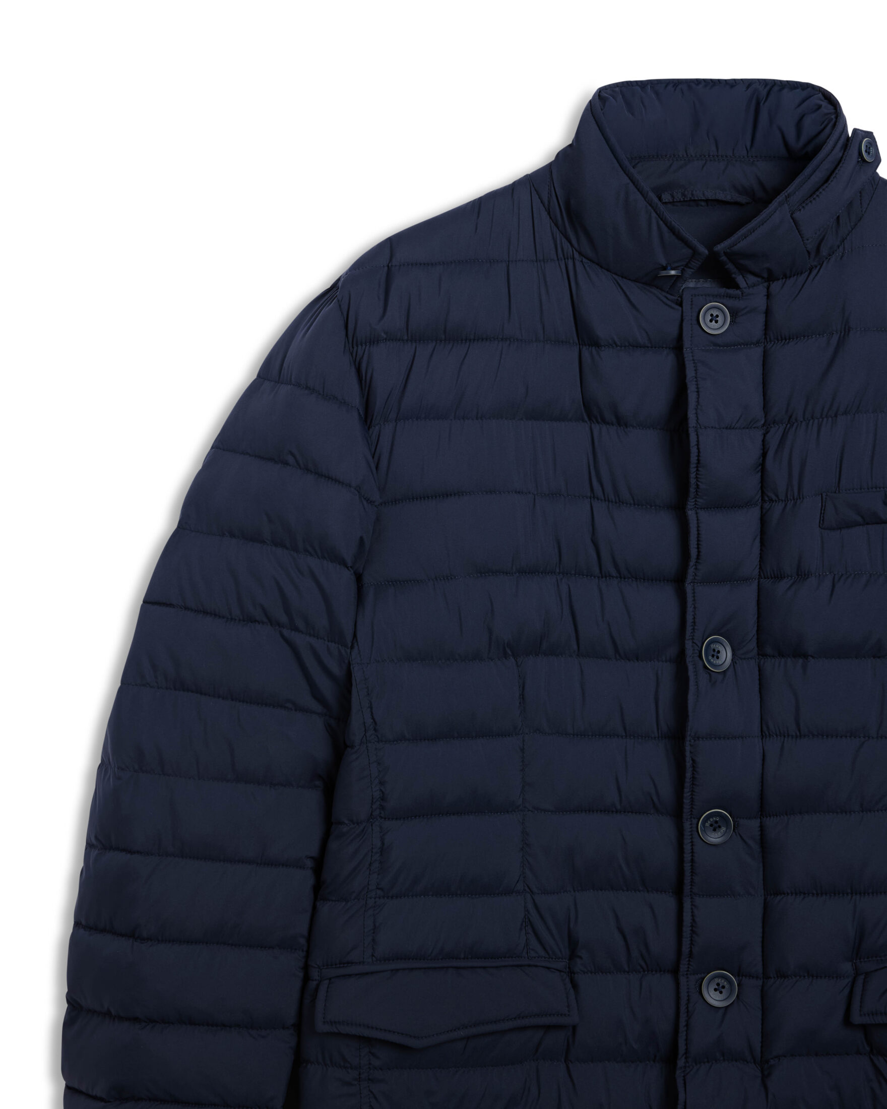 Klassisk quiltet jakke til herre fra Herno. Laget i resirkulert nylonmikrofiber med en myk, matt og vannavvisende finish. Den lette konstruksjonen kombinerer komfort og funksjonalitet med et tidløst uttrykk. Et allsidig ytterplagg med høy kvalitet, skapt for å vare sesong etter sesong.