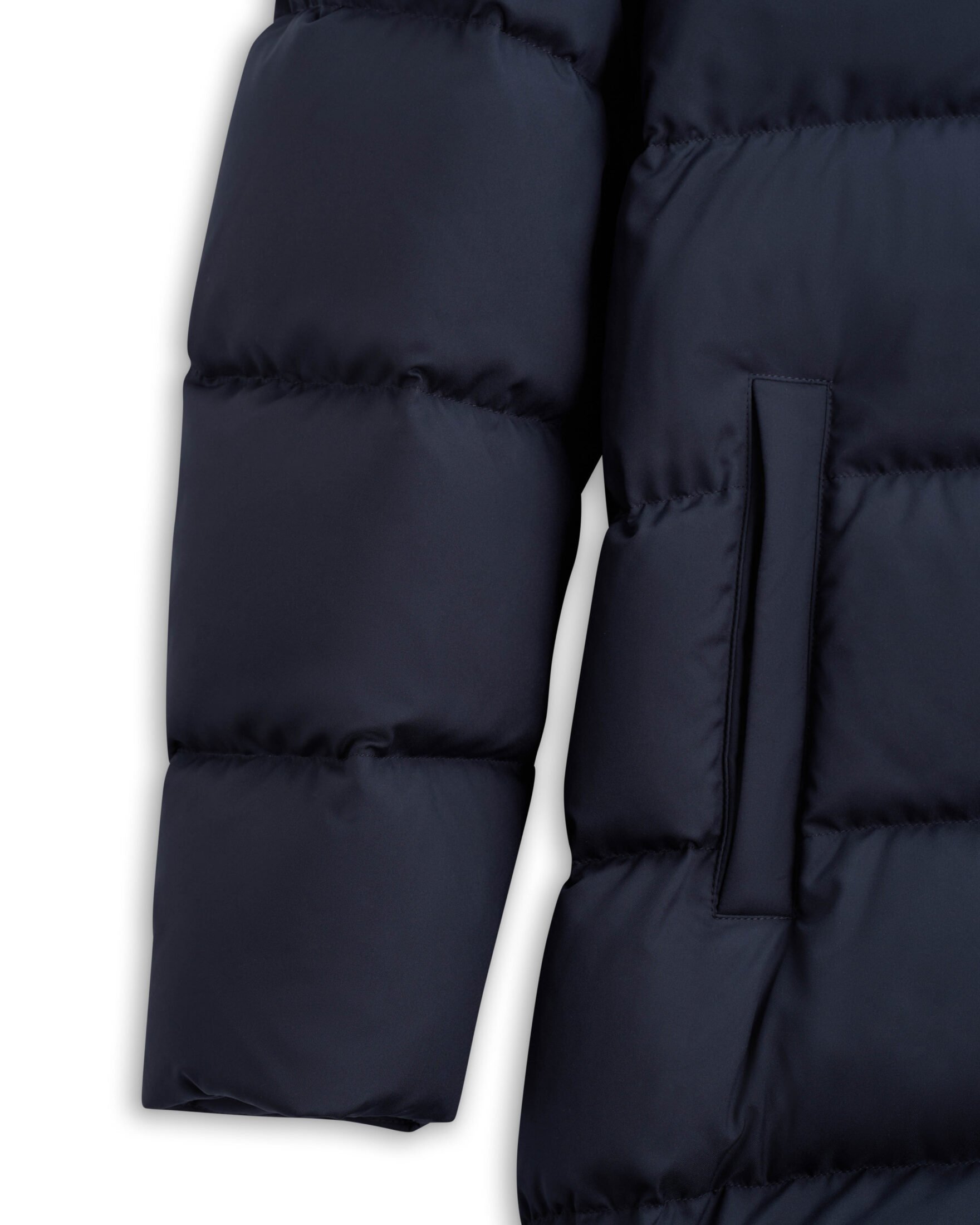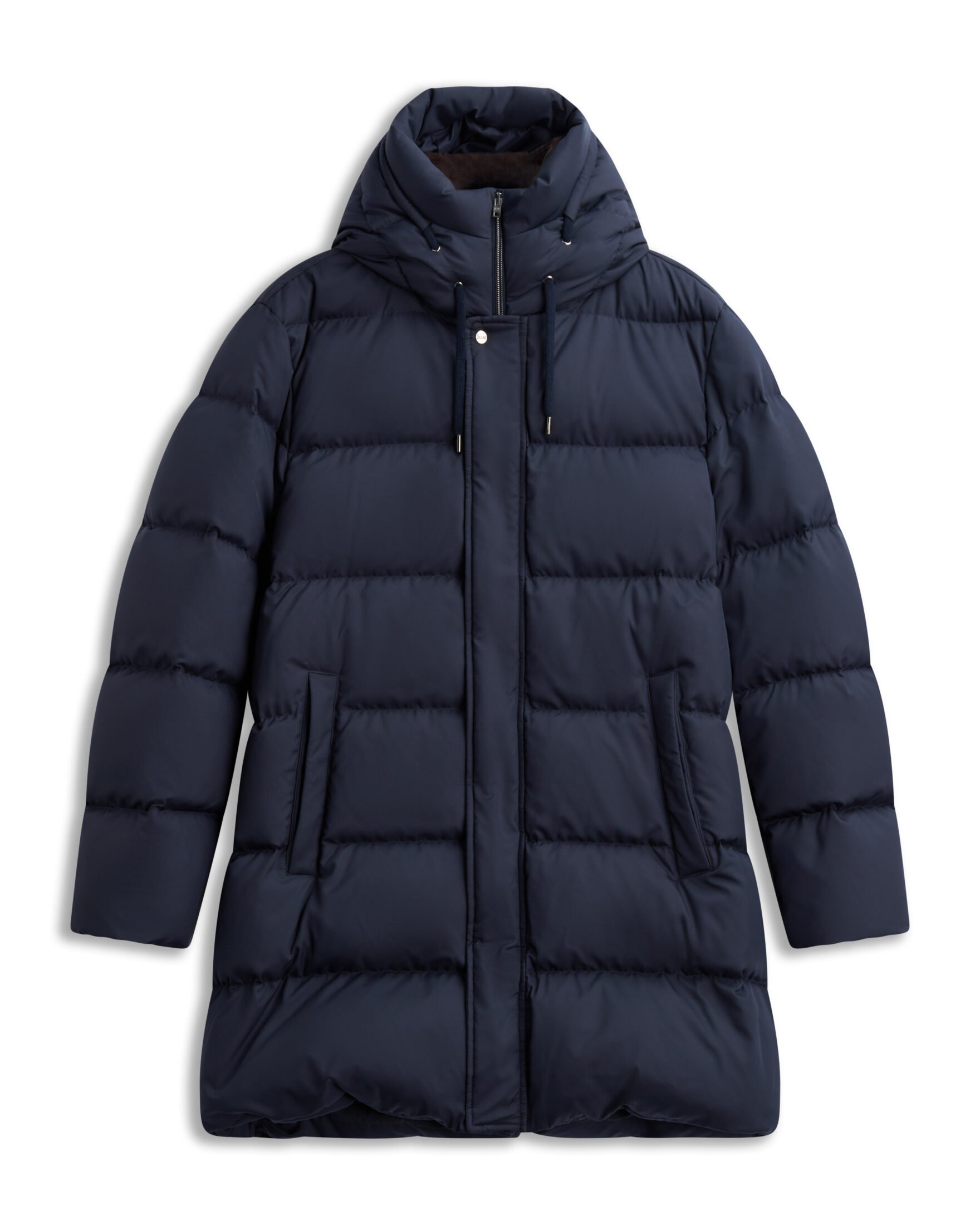 Elegant og funksjonell dunjakke til herre fra Herno. Laget i supermatt polyesterstoff med en lett, myk og fløyelsaktig finish. Jakken har en moderne silhuett med høy krage kledd i fuskepels som gir et luksuriøst preg, samtidig som den beskytter godt mot kulde. Vattert med dun og fjær for optimal varme og komfort. Belagt med et vannavvisende lag for ekstra funksjonalitet. En tidløs vinterjakke som kombinerer italiensk eleganse med praktiske detaljer.