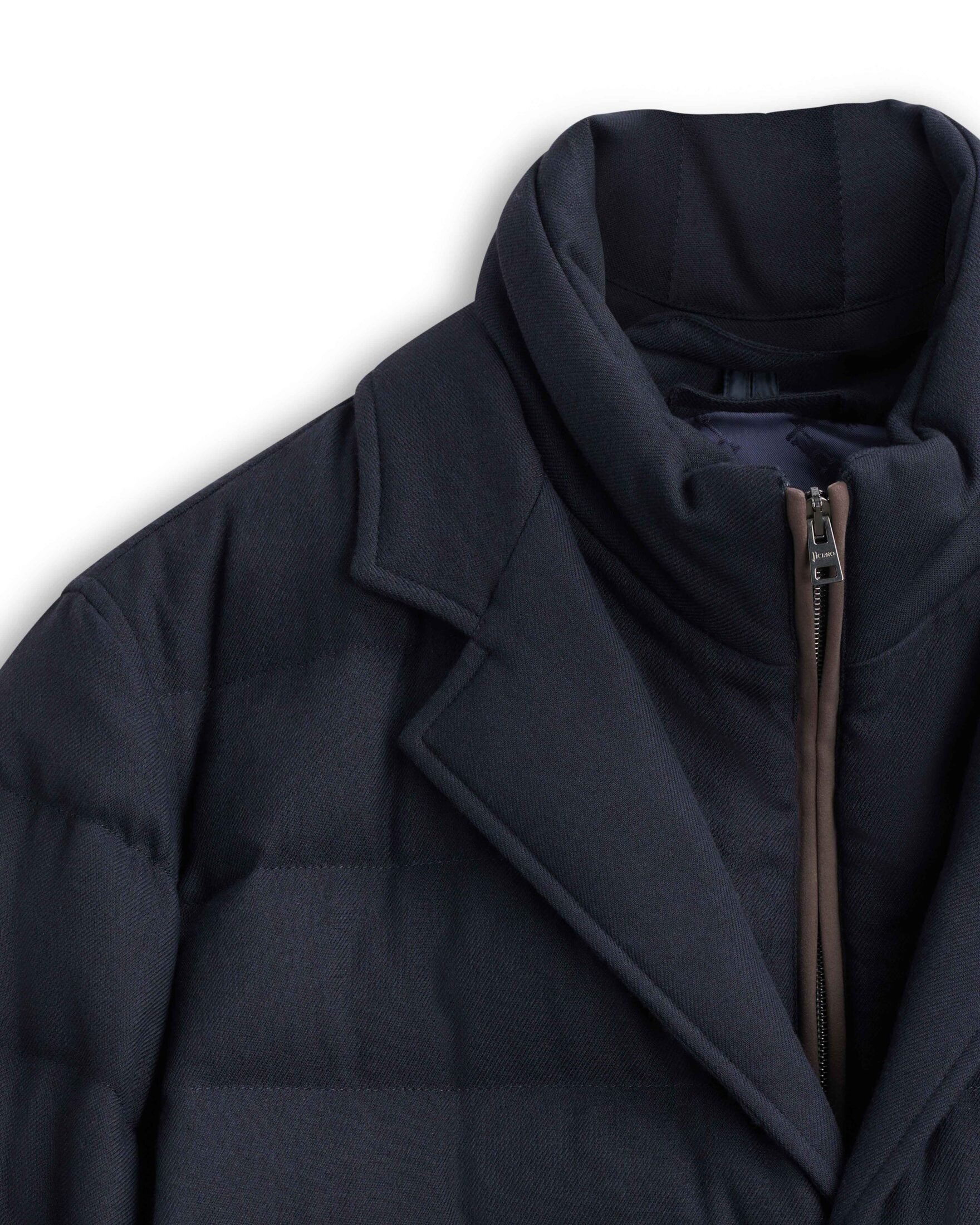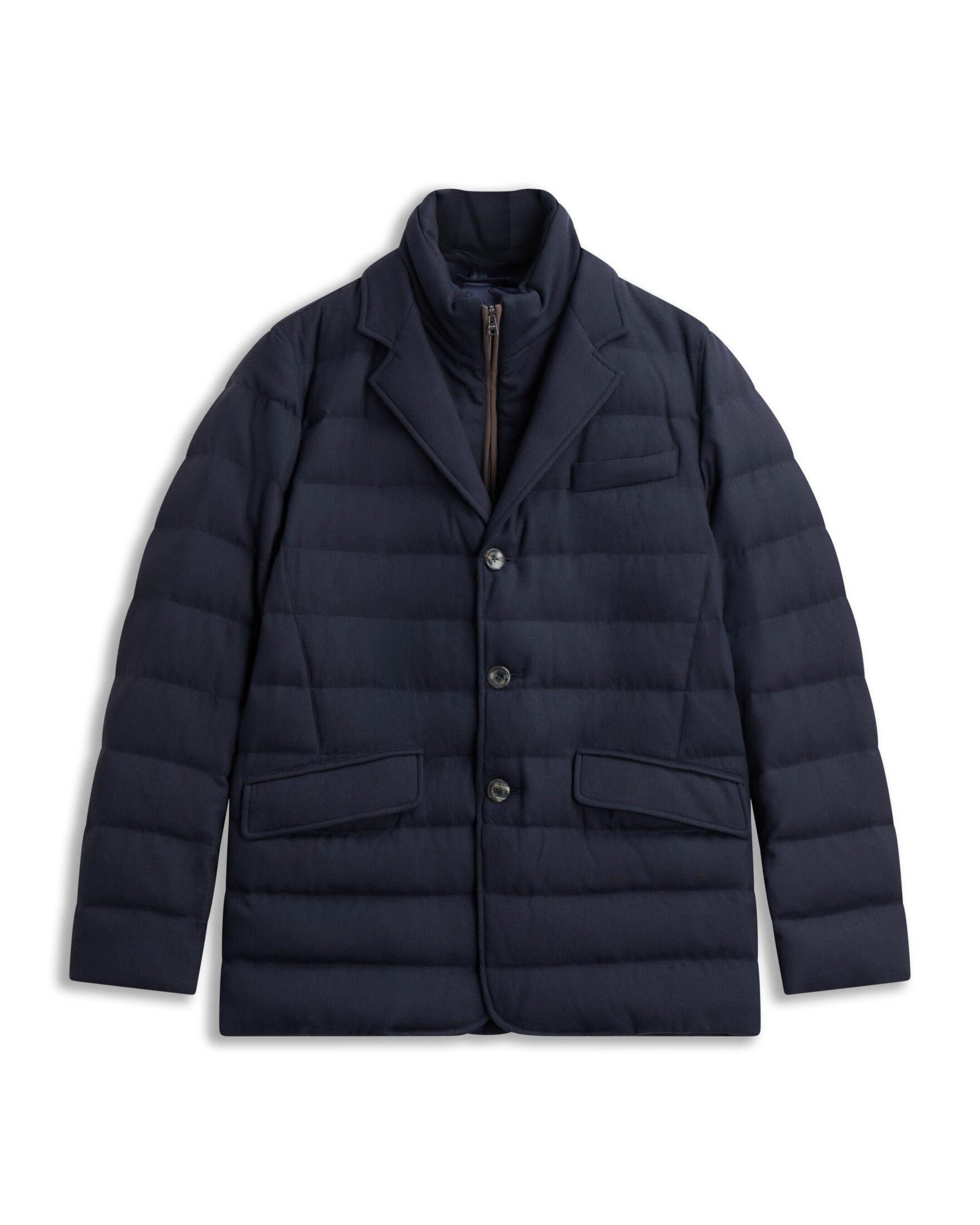 Elegant blazerjakke til herre fra Herno med lett dunfyll som kombinerer klassisk dress-stil med moderne komfort. Laget i en eksklusiv ull- og viskoseblanding med myk finish og tidløst uttrykk. Jakken har avtakbar innersmekk med glidelås for ekstra varme, klassiske slag, treknappslukking og praktiske lommer med klaff. Et perfekt valg til både jobb og fritid når du ønsker et sofistikert, men komfortabelt ytterplagg.