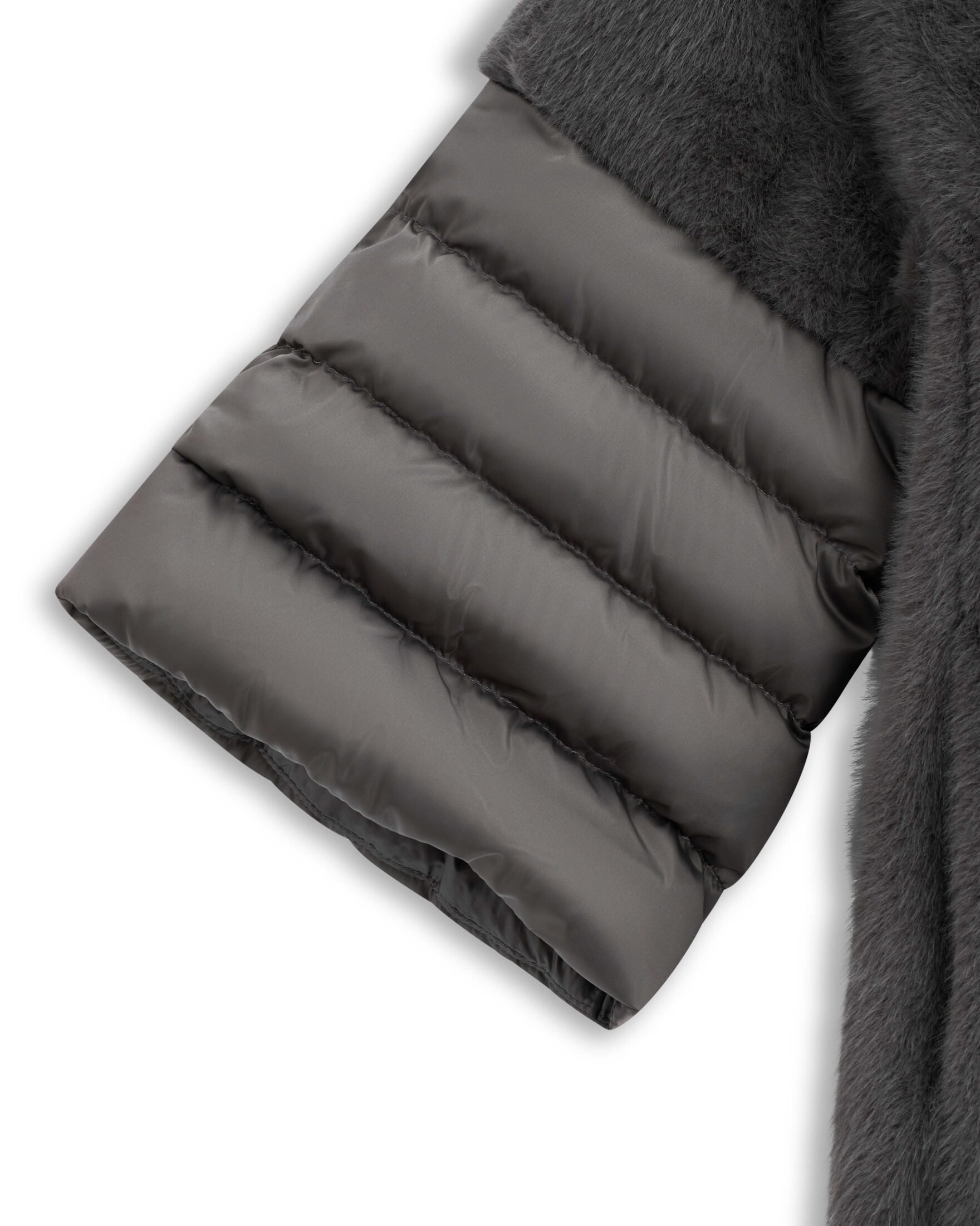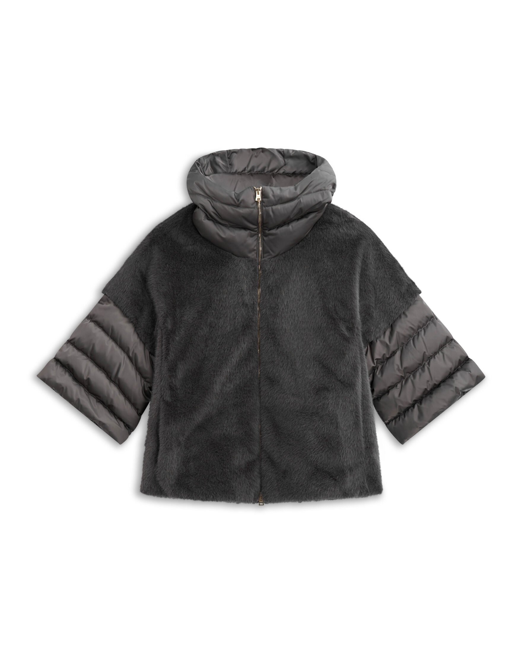 Eksklusiv kappe til dame fra Herno i glatt sateng med høy tetthet som gir en luksuriøs og myk følelse. Beriket med overdådig klippet fuskepels som gir et sofistikert preg. Lett, elegant og allsidig – et perfekt plagg som løfter ethvert antrekk med moderne italiensk eleganse.