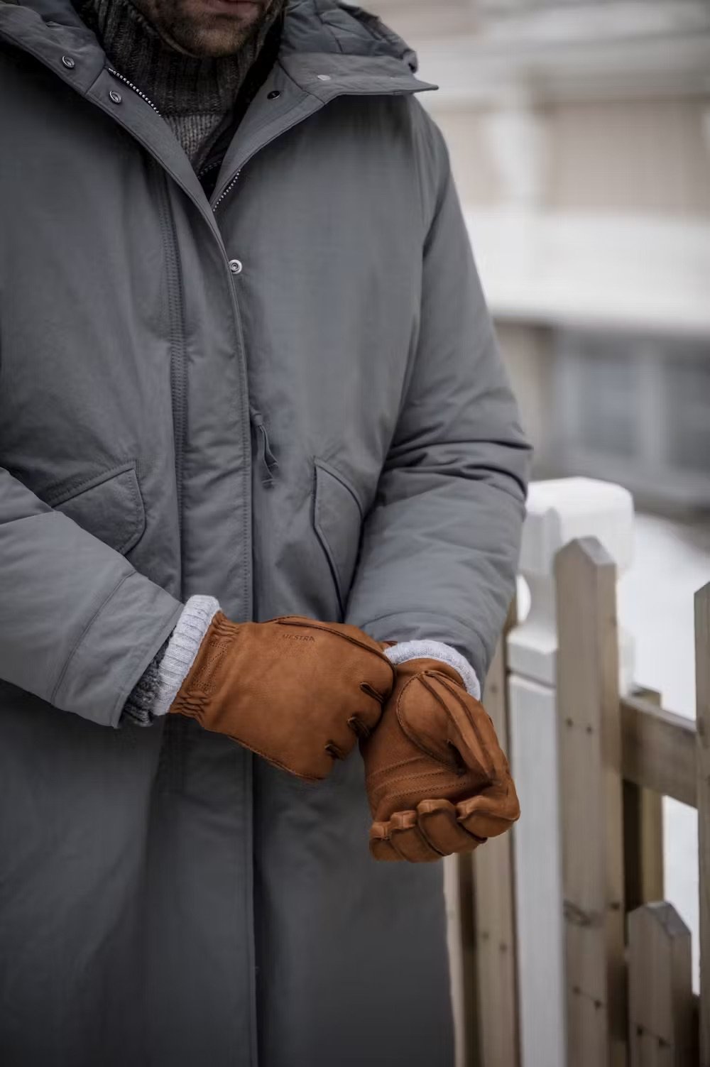 Joar fra Hestra er en varm og komfortabel hanske i mykt nubuck-skinn med ribbestrikket mansjett. Den har fleecefôr og Primaloft Gold-isolasjon som holder hendene varme på kalde vinterdager. Forbøyde fingre og utvendige sømmer gir ekstra god passform og komfort. En klassisk hanske med sporty stil. Perfekt både i byen og på tur.