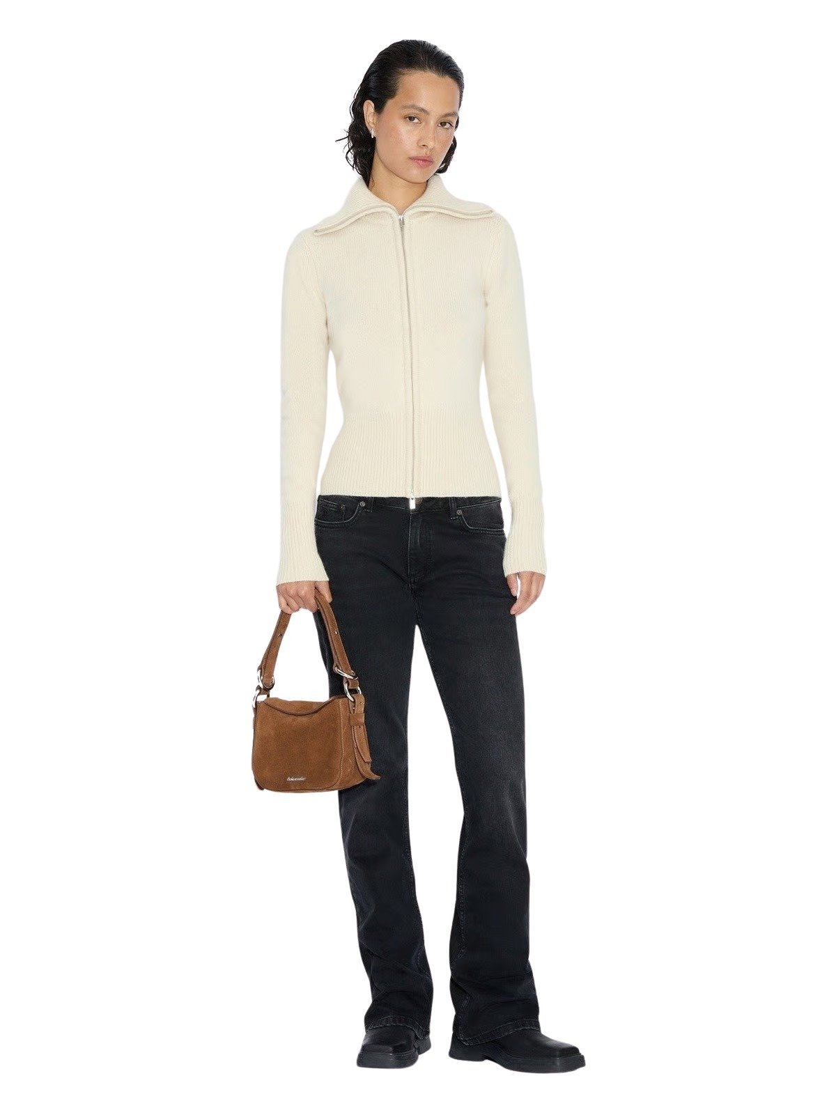 Veske fra Holzweiler. Stilfull veske som kombinerer luksus og funksjon i et tidløst design. Laget av mykt semsket skinn med fôr i bomullstwill, har den en logoplakett foran og en praktisk innerlomme. De små proporsjonene gjør den perfekt både til hverdags og kveldsbruk – et elegant tilbehør som løfter ethvert antrekk.