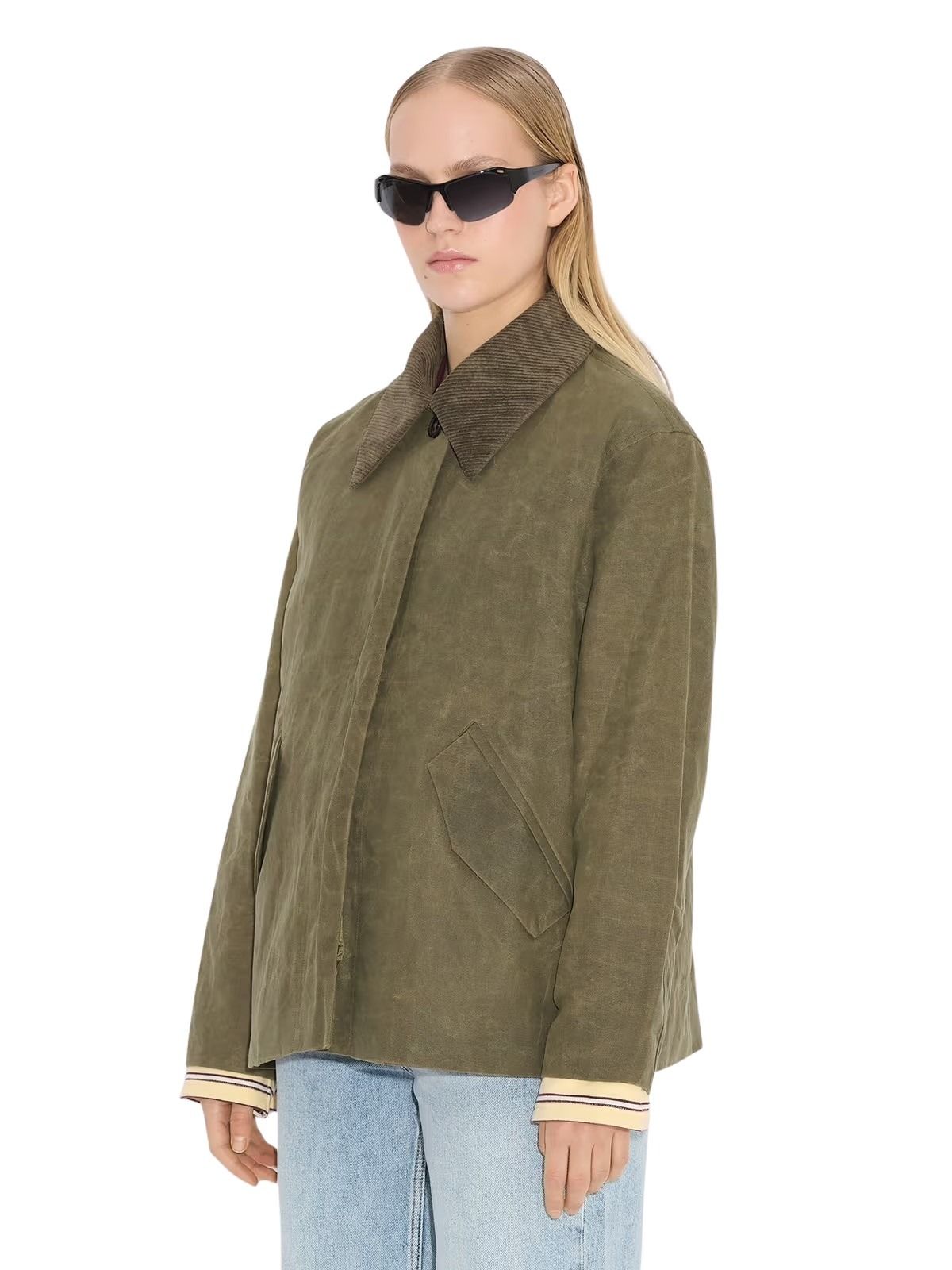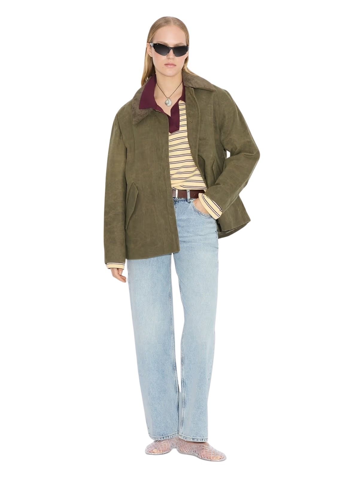 Diana Short Jacket fra Holzweiler. En oppdatert favoritt med et tidløst uttrykk og funksjonelle detaljer. Den voksede overflaten gir en vannavvisende finish, mens avtakbar kordfløyelskrage og skjult knappelukking tilfører et sofistikert preg. I en jordnær grønn tone er dette jakken du enkelt styler – uansett anledning.