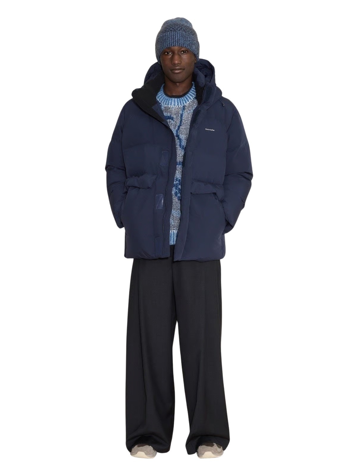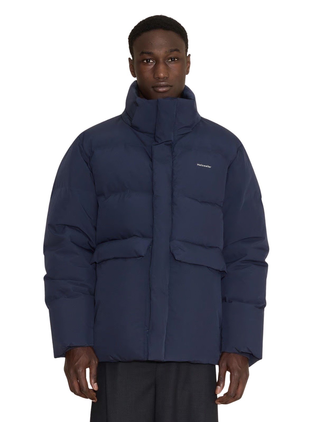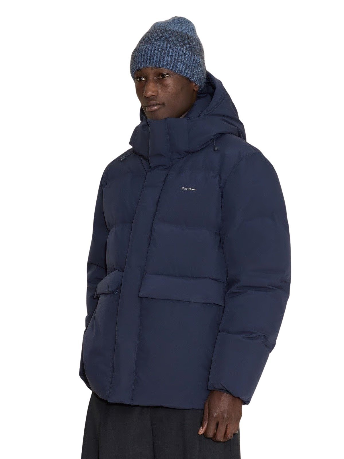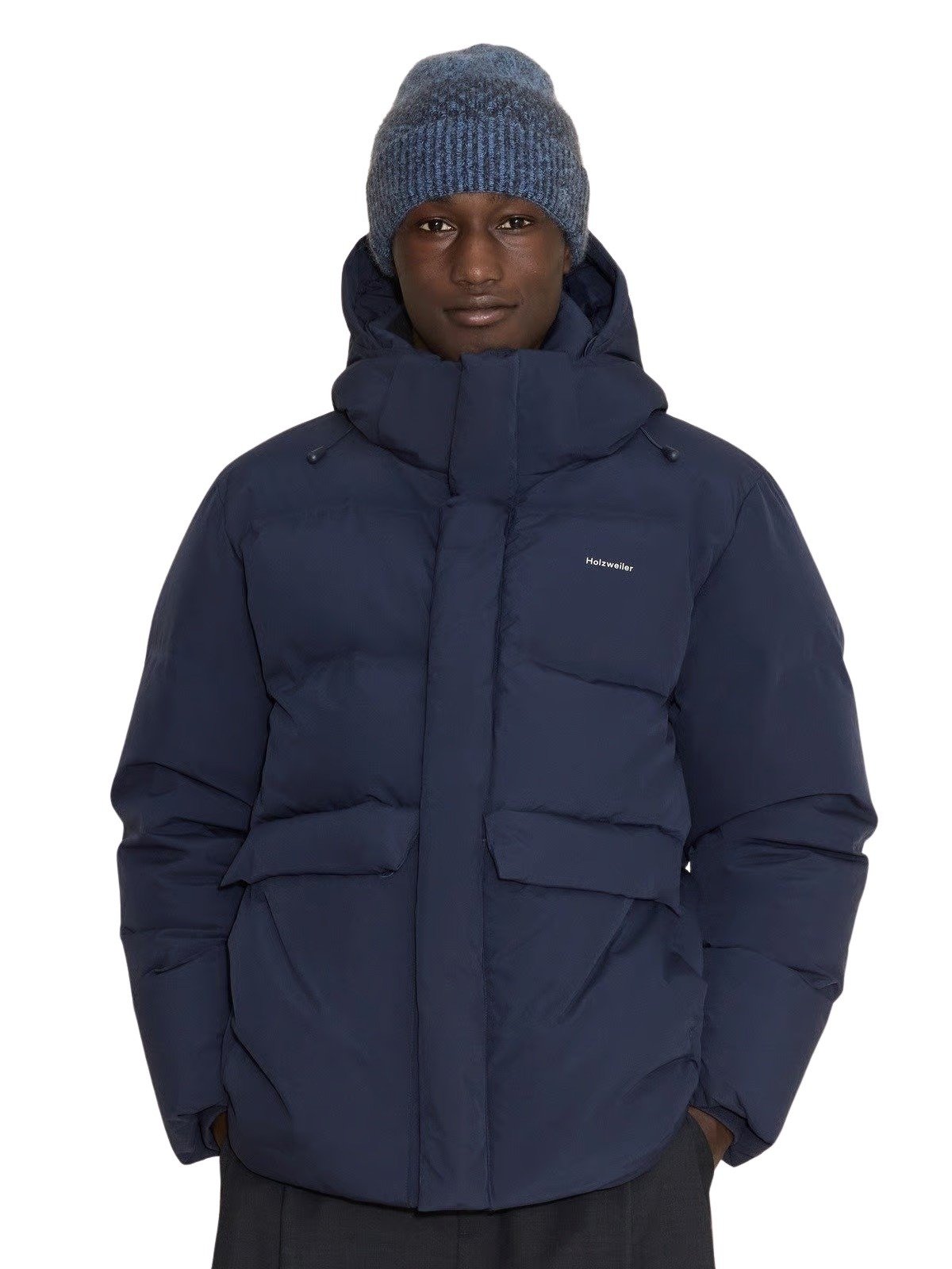 Dunjakke til herre fra Holzweiler. Laget av resirkulerte materialer, og fylt med RDS-sertifisert dun for optimal varme. Det tekniske stoffet har 10K/10K vanntett DWR-behandling som holder deg tørr, samtidig som det er mykt og pustende. Med toveis glidelås, praktiske lommer og et tidløst design er dette en jakke du kan stole på – sesong etter sesong.