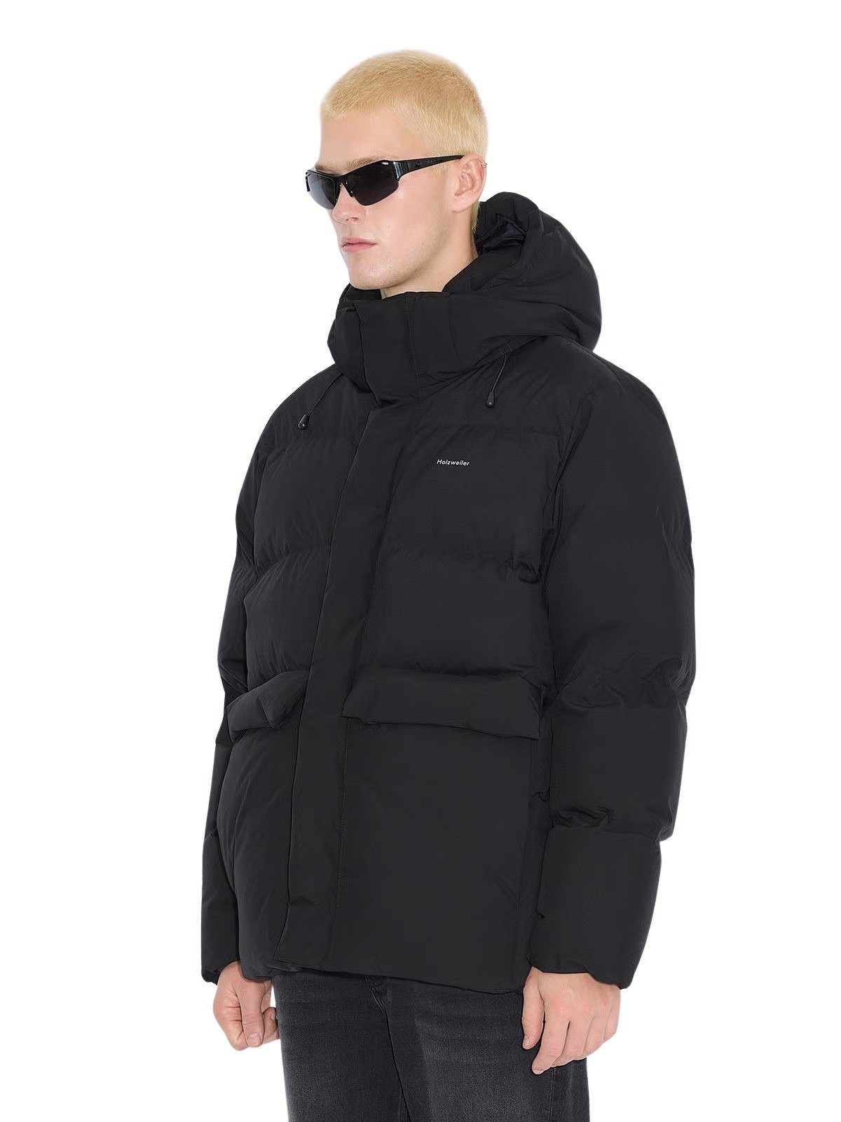 Dunjakke til herre fra Holzweiler. Laget av resirkulerte materialer, og fylt med RDS-sertifisert dun for optimal varme. Det tekniske stoffet har 10K/10K vanntett DWR-behandling som holder deg tørr, samtidig som det er mykt og pustende. Med toveis glidelås, praktiske lommer og et tidløst design er dette en jakke du kan stole på – sesong etter sesong.
