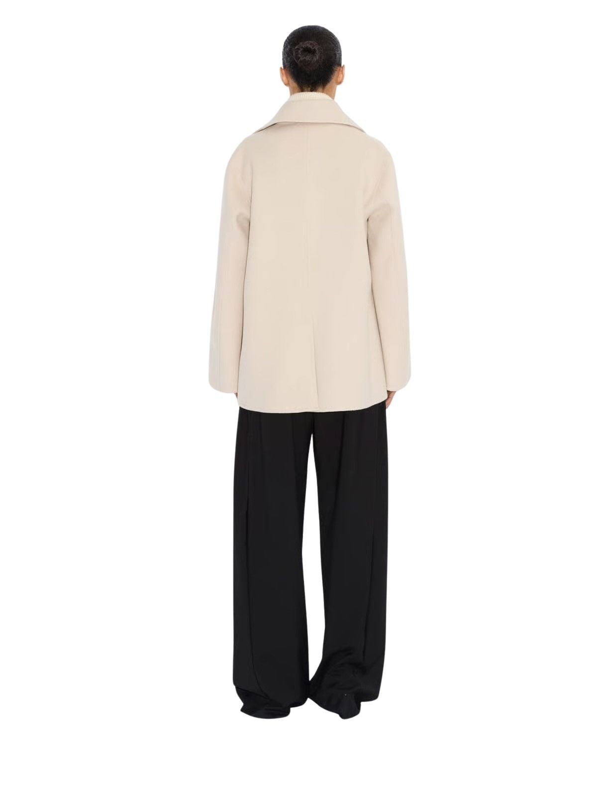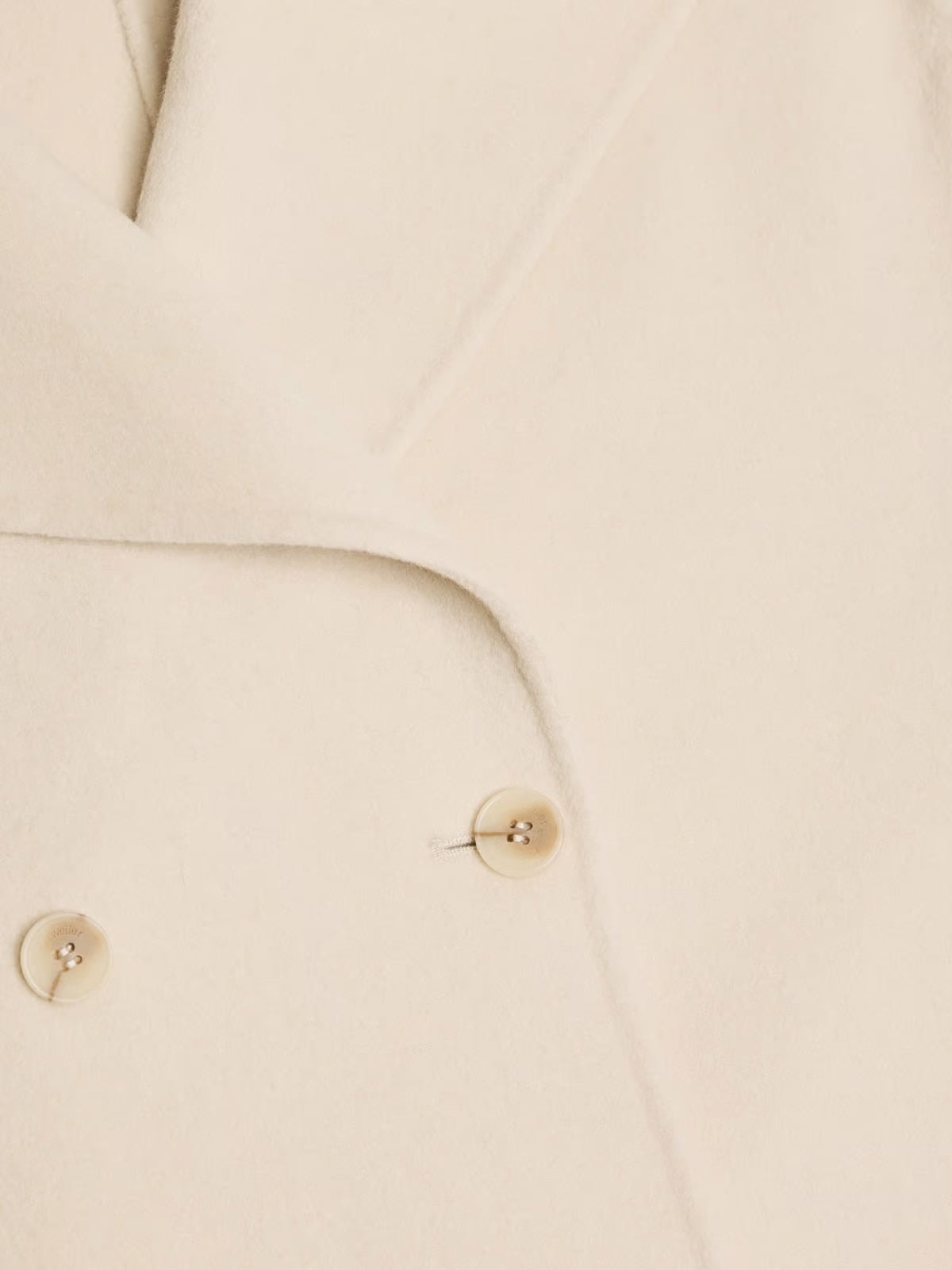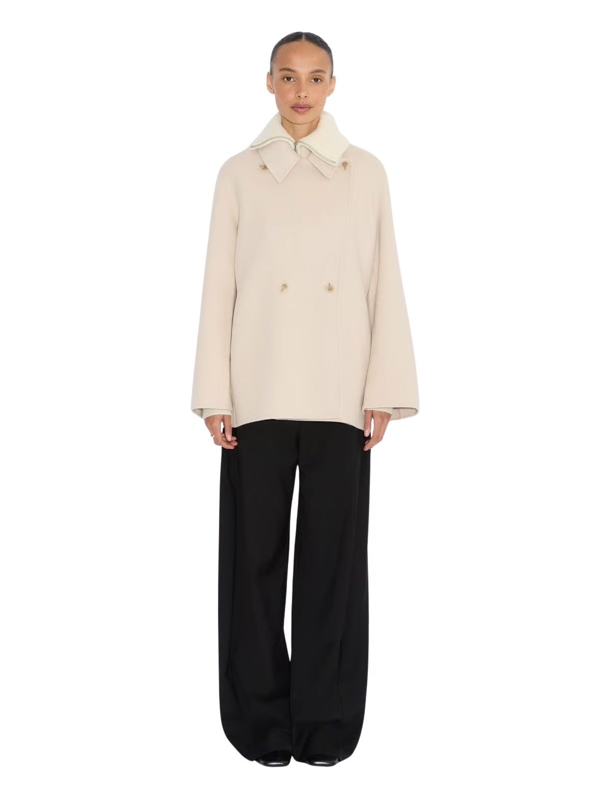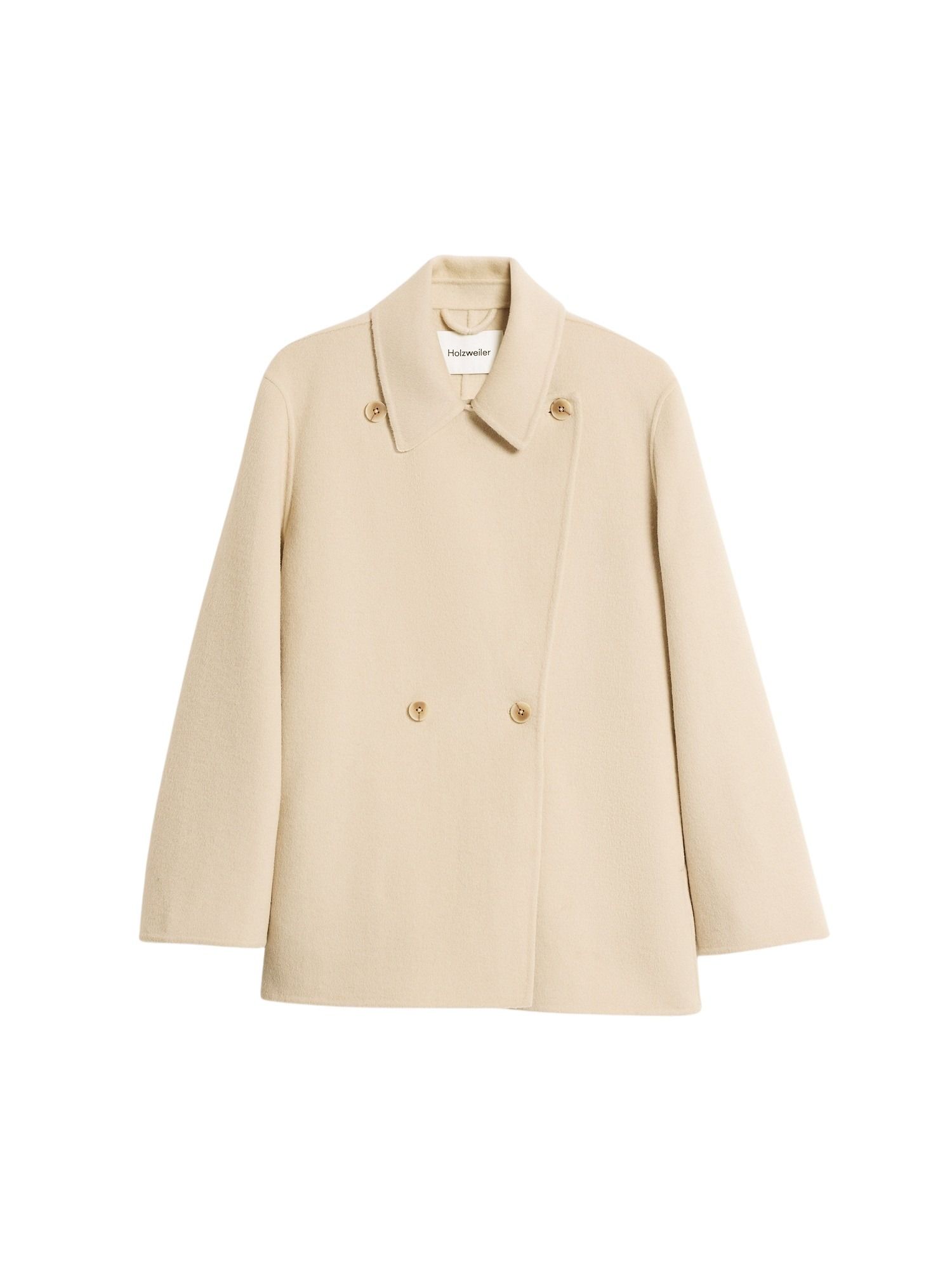 Felsa Wool Peacoat fra Holzweiler. En elegant, kort kåpe laget i en varm og strukturert ullblanding. Den doble knappelukkingen og rene linjene gir et tidløst, sofistikert uttrykk. Perfekt til både hverdagsbruk og mer formelle anledninger.