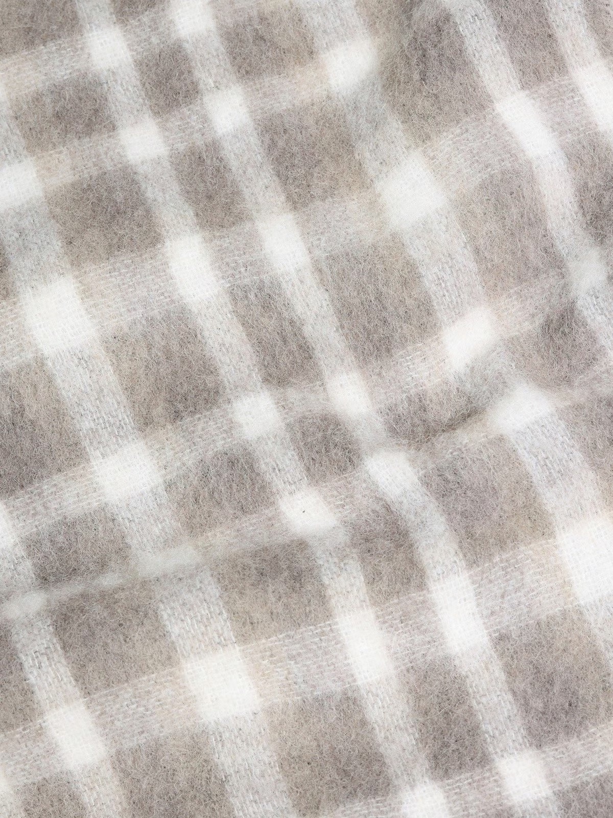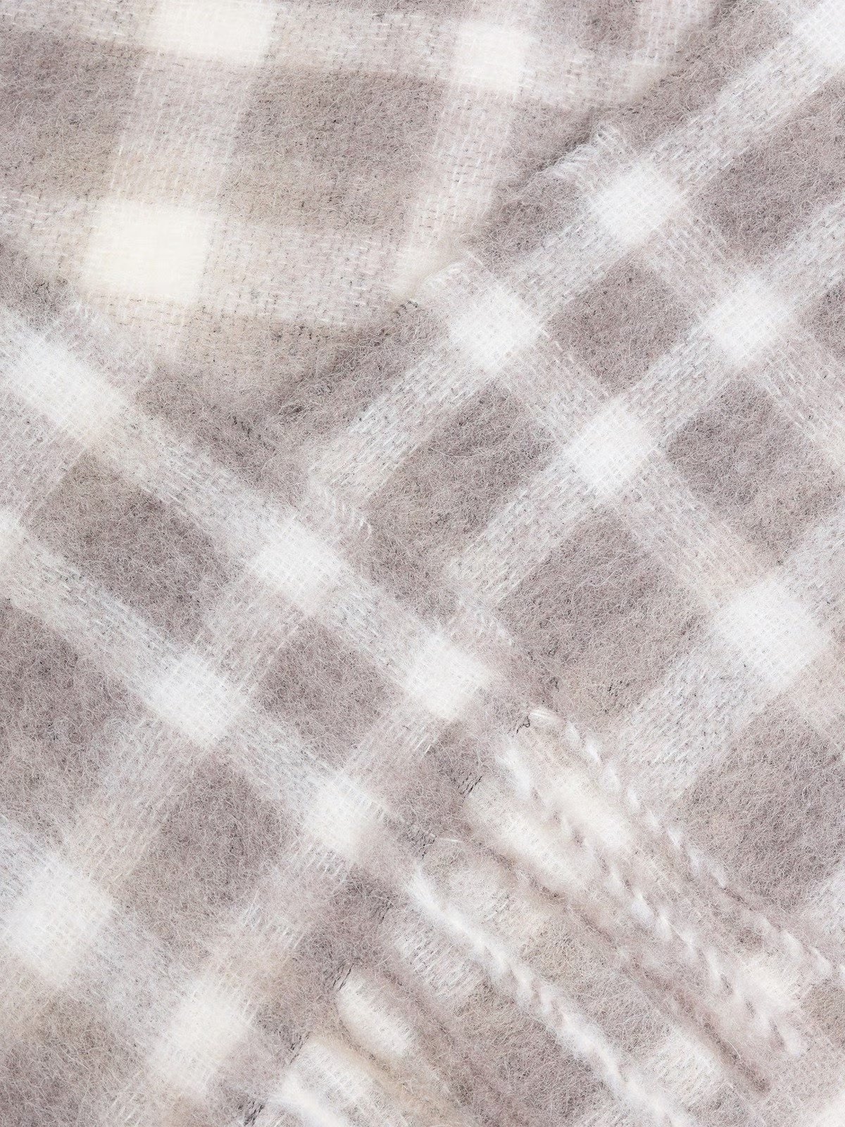 Skjerf fra Holzweiler. Laget i Firenze av en luksuriøs boucléblanding med alpakka, kjent for sin myke og taktile kvalitet. Skjerfet har et tidløst rutemønster og frynsede kanter som gir et elegant, avslappet uttrykk. Et varmt og stilfullt tilbehør som løfter ethvert antrekk.
