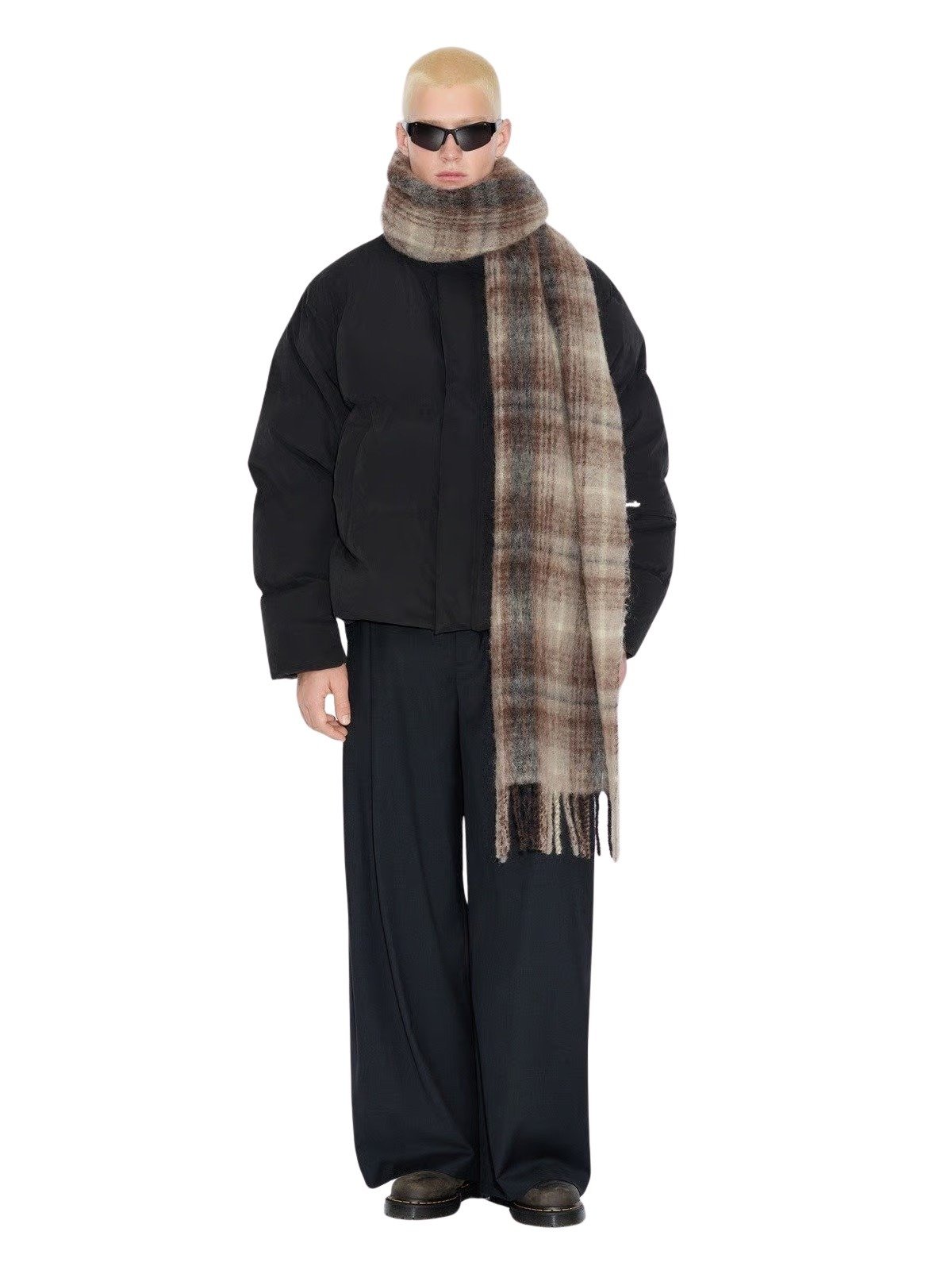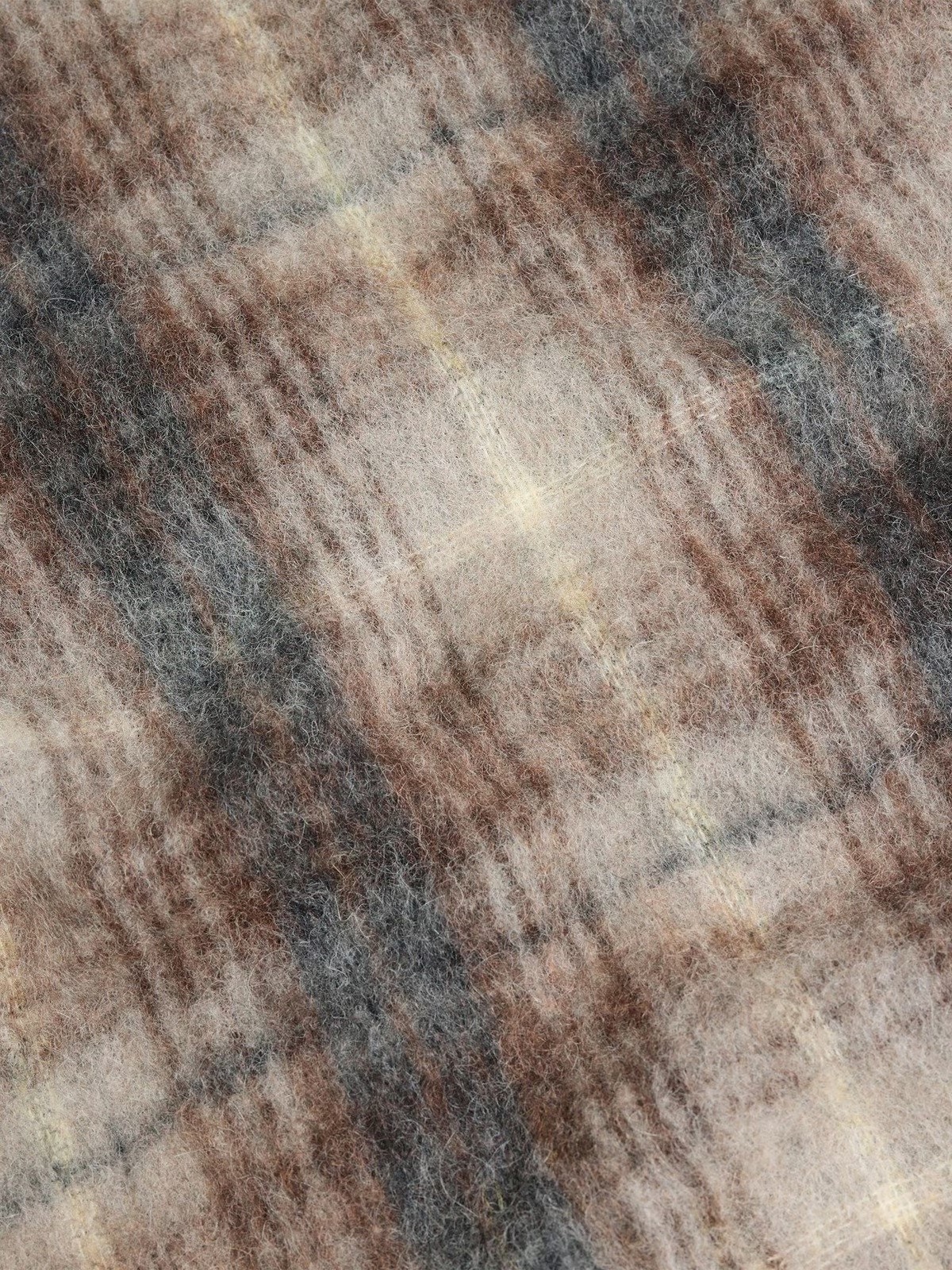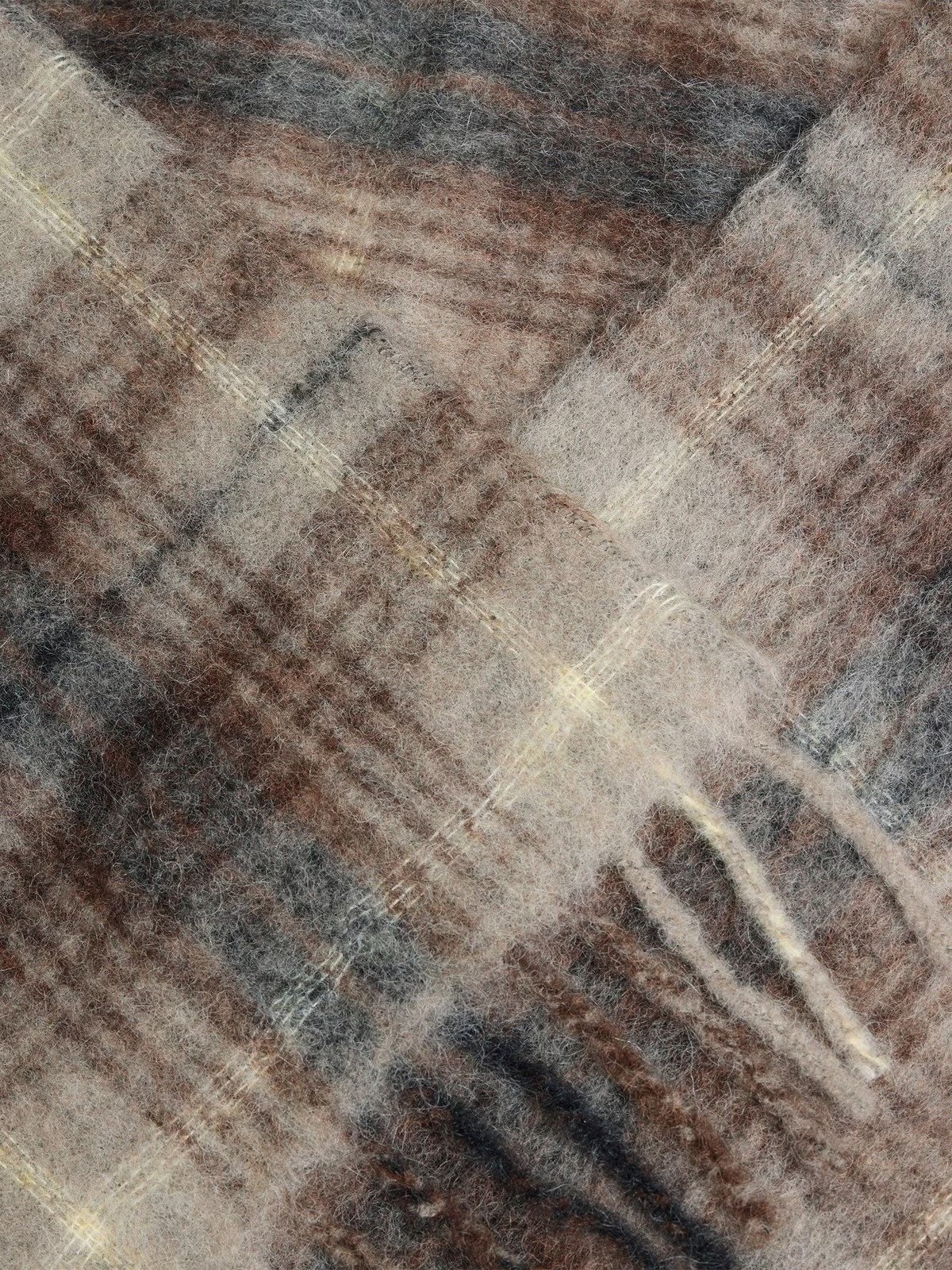 Skjerf fra Holzweiler. Laget i Firenze av en luksuriøs boucléblanding med alpakka, kjent for sin myke og taktile kvalitet. Skjerfet har et tidløst rutemønster og frynsede kanter som gir et elegant, avslappet uttrykk. Et varmt og stilfullt tilbehør som løfter ethvert antrekk.