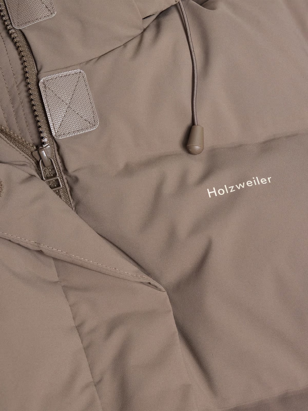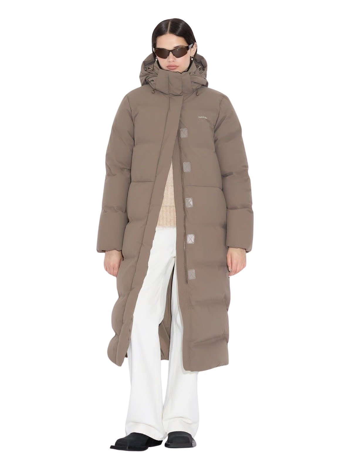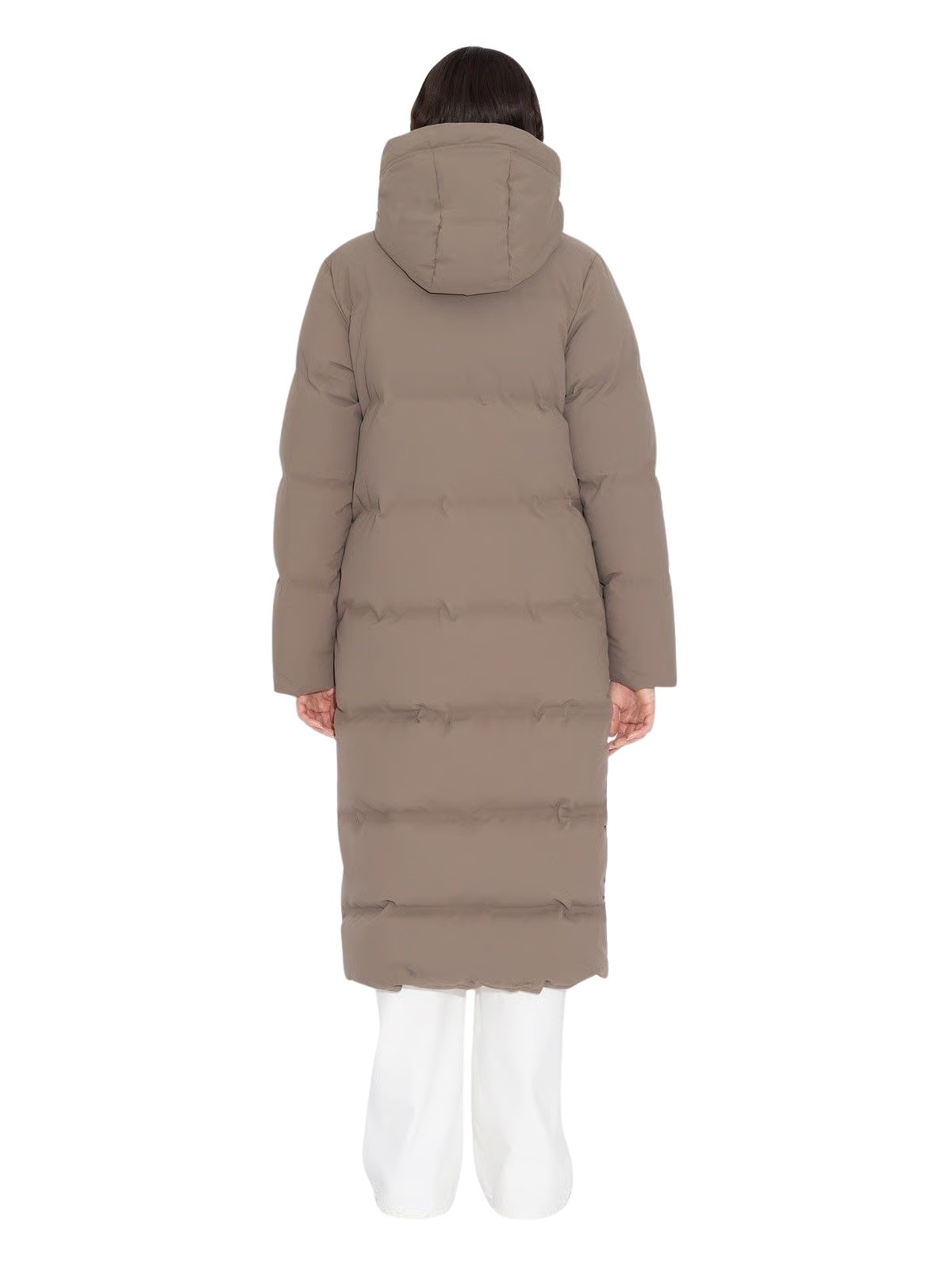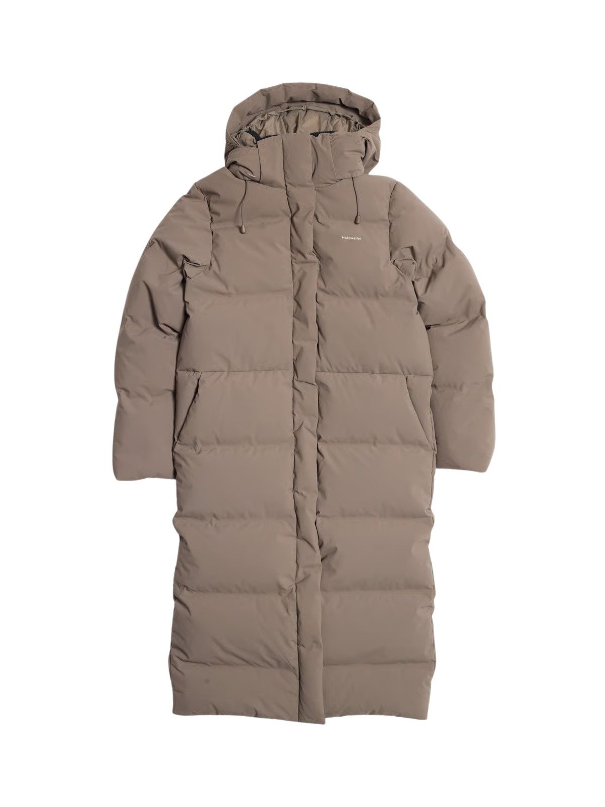 Lang dunjakke til dame fra Holzweiler. Designet for maksimal varme og komfort gjennom vinteren. Laget av et lagdelt teknisk stoff og er vattert med RDS-sertifisert dun som gir lett isolasjon uten å føles tung. Med sitt minimalistiske uttrykk, rene linjer og beskyttende hette er dette en jakke som kombinerer funksjon og moderne stil – perfekt for kalde dager i byen.