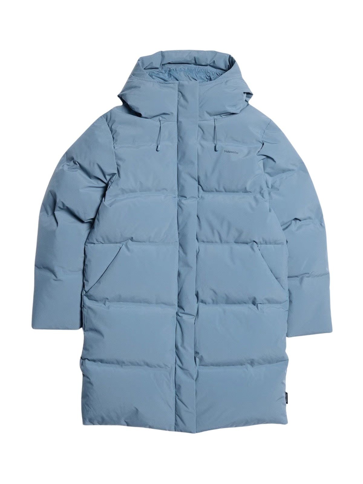 Mellomlang dunjakke til dame fra Holzweiler. Stilig jakke som kombinerer funksjon og minimalistisk stil. Jakken er vattert og polstret med RDS-sertifisert dun som gir lun varme uten å føles tung. Det rene designet og den praktiske hetten gjør den perfekt for kalde vinterdager – en tidløs favoritt i garderoben.