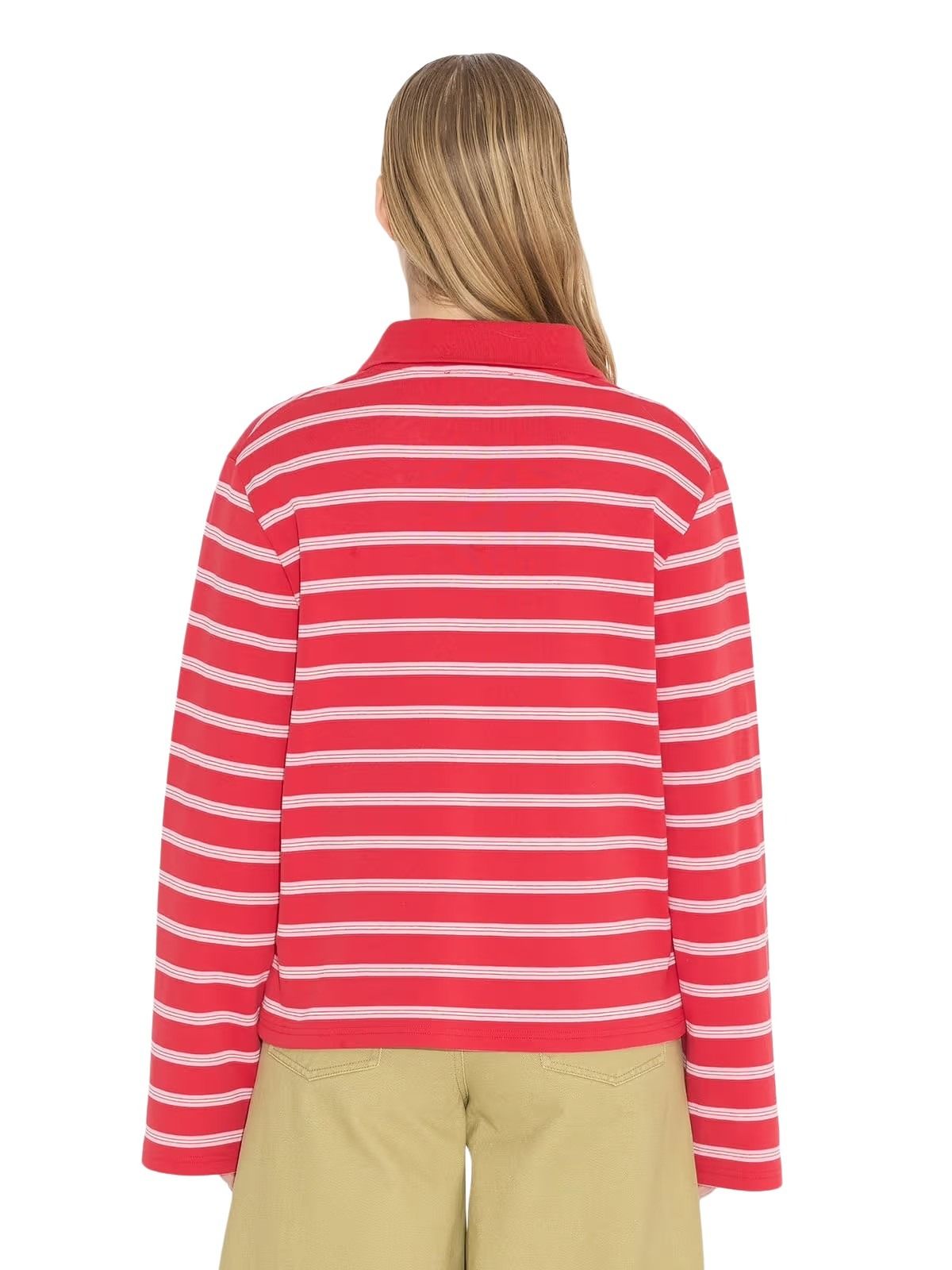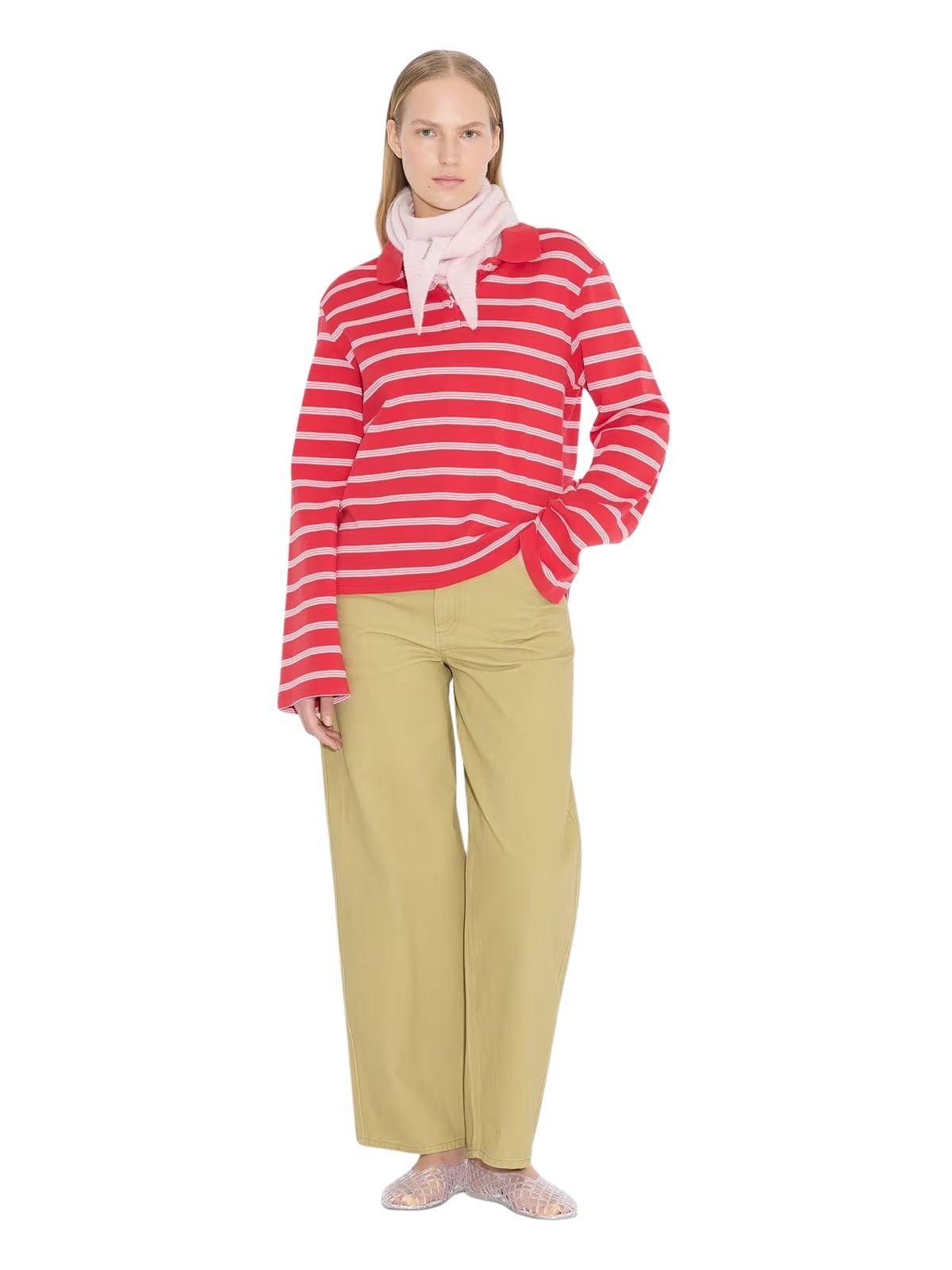 Sunny Striped Polo fra Holzweiler. Gi garderoben et friskt løft med denne poloen med iøynefallende stripemønster. Laget i lett og pustende bomull som gjør den perfekt for varmere dager. Et lekent og stilrent plagg du enkelt kan bruke sesong etter sesong.