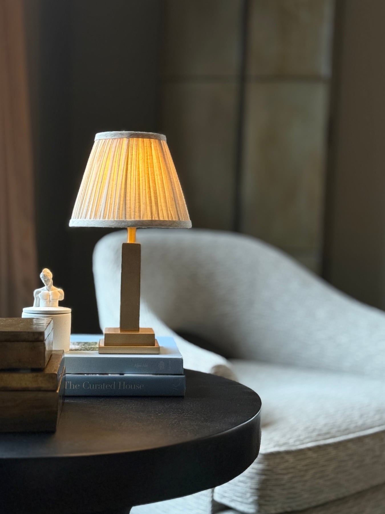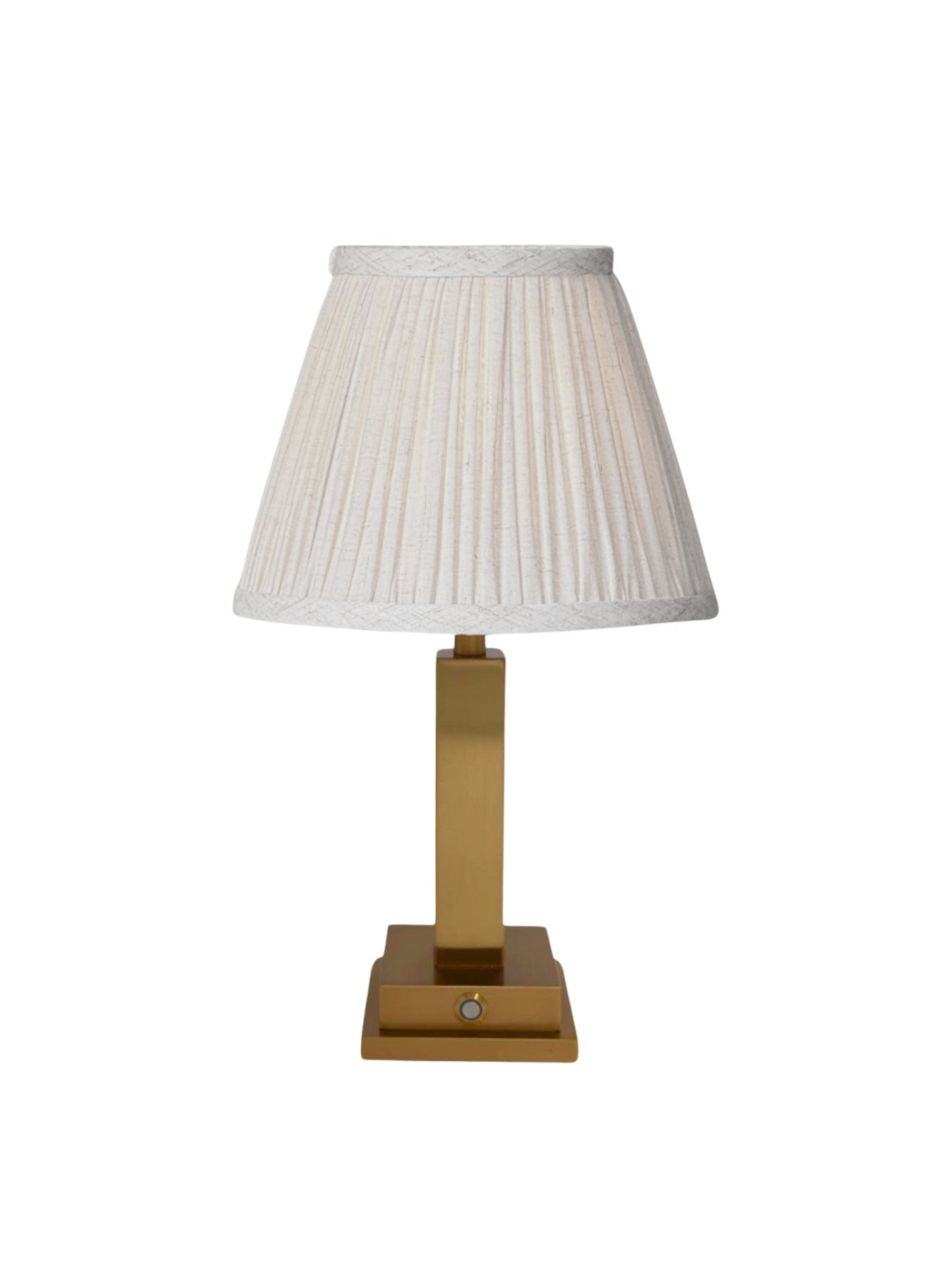 Chicago fra House of Firefly. En oppladbar og bærbar bordlampe med en elegant gullfinish og lampeskjerm. Den solide vekten og det dimbare lyset gjør den til et stemningsfullt innslag på både spisebord, sidebord og i vinduskarmer. Med flere skjermalternativer kan du enkelt tilpasse uttrykket til alt fra moderne til klassisk interiør.
