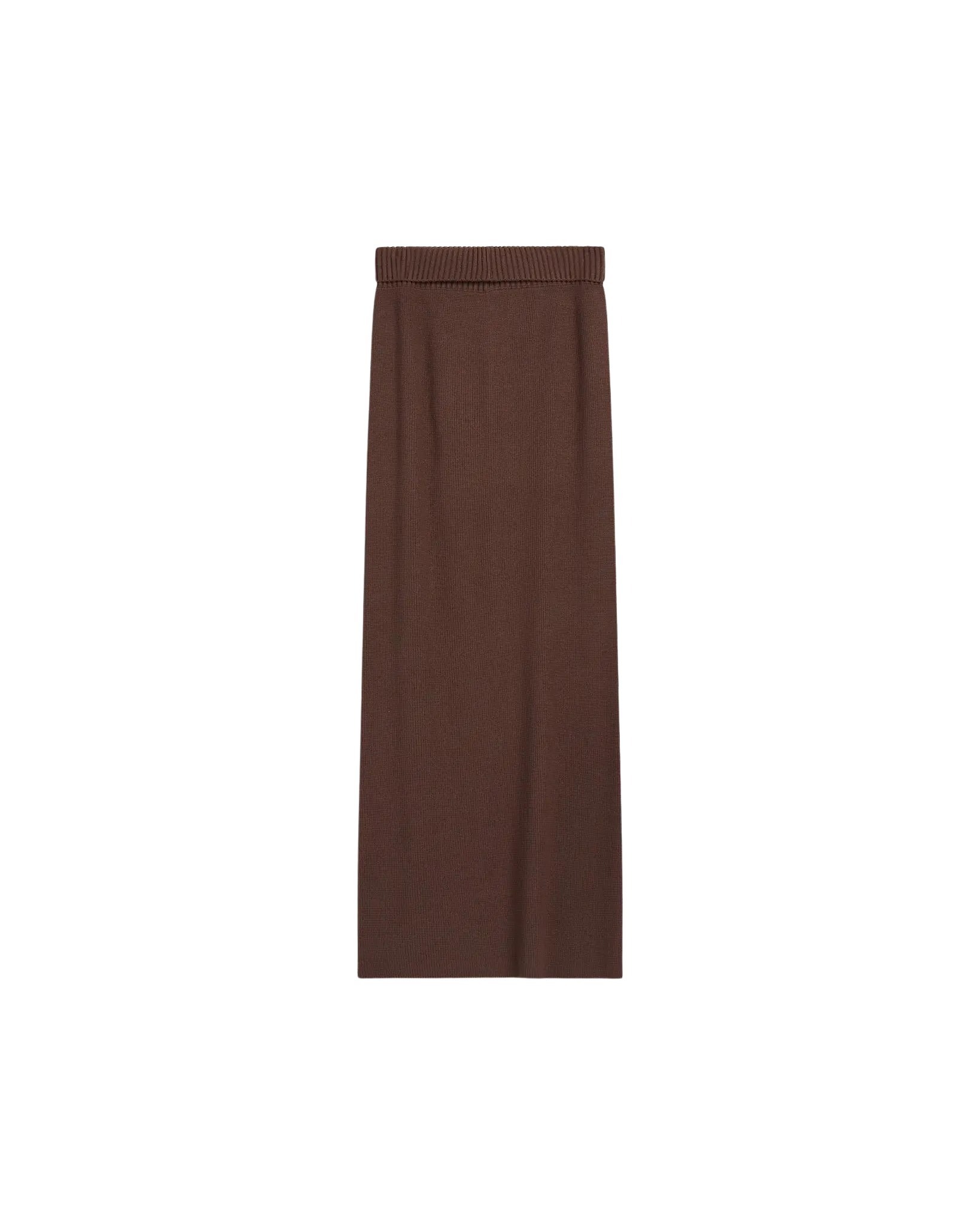 Atari Rib Skirt fra IBEN. Et mykt ribbestrikket skjørt i en eksklusiv rayonblanding som gir en behagelig og luksuriøs følelse mot huden. Den doble linningen kan styles høyt eller lavt i livet, mens midi-lengden og en diskret splitt bak gir en flatterende silhuett og god bevegelsesfrihet. Et allsidig skjørt som enkelt kan styles både avslappet og mer sofistikert.