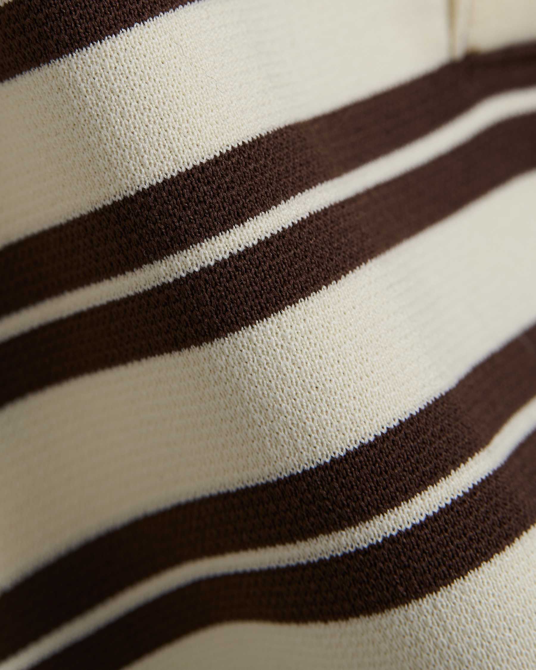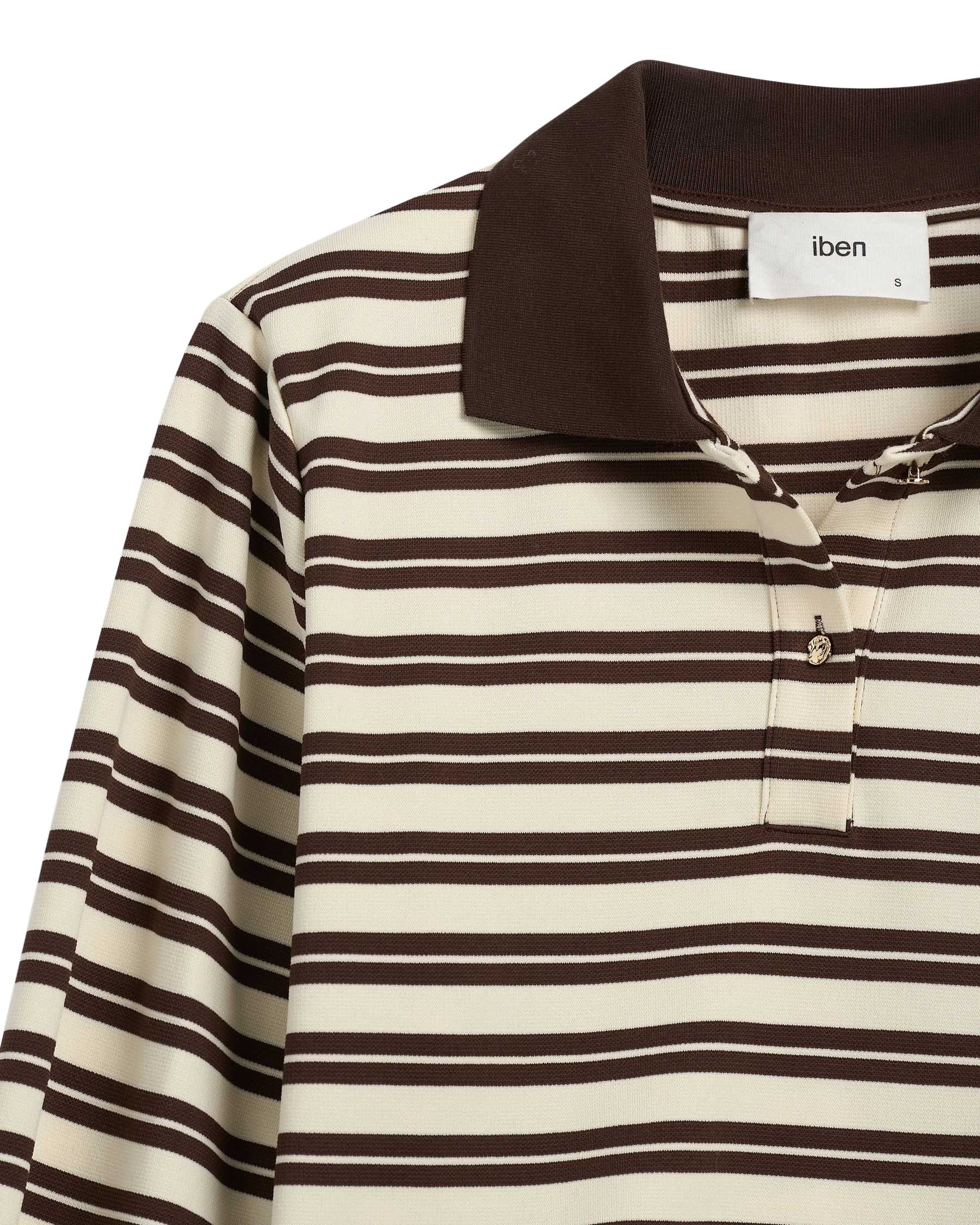 Genser til dame fra IBEN. Stripete polo laget i en myk bomullsblanding som gir komfort med en strukturert finish. Klassisk krage og metallknapper tilfører et subtilt, edgy uttrykk til den rene silhuetten. Et allsidig plagg som enkelt styles til både denim og dressede antrekk.
