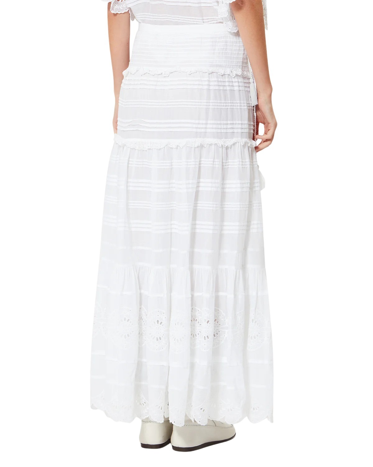 Paoline Frilly Cotton And Floral Lace Skirt – Hvit