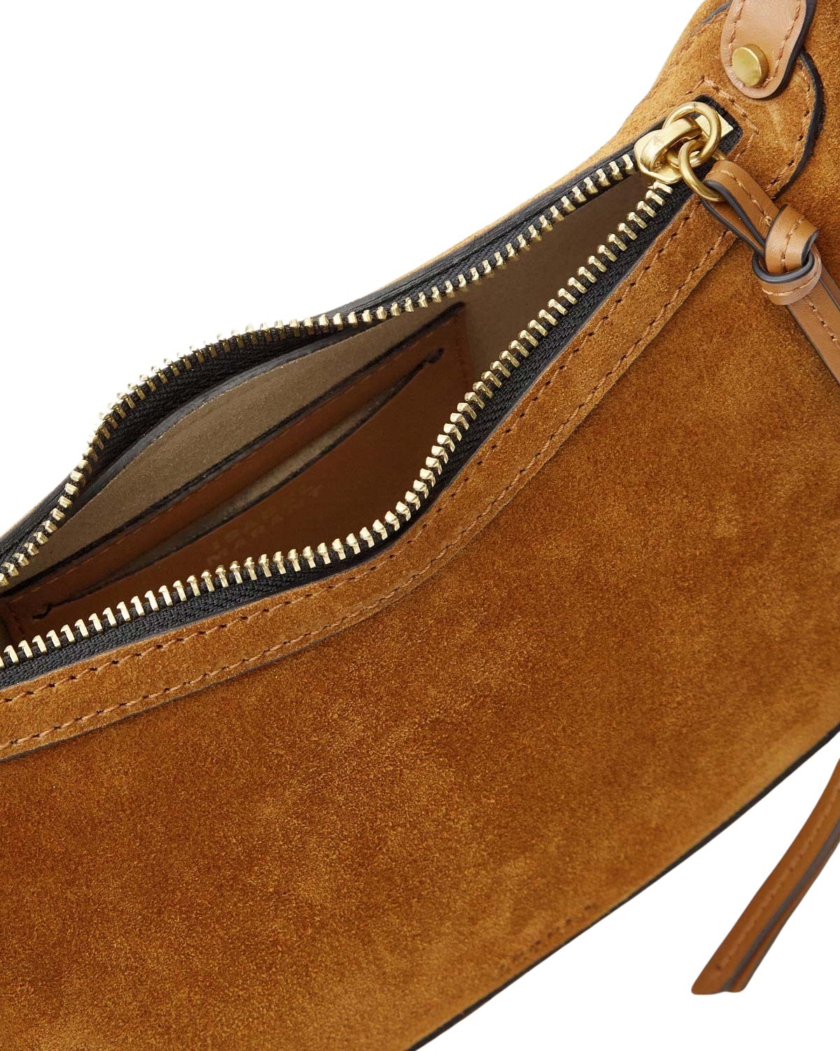 Baguette-skulderveske i semsket kalveskinn fra Isabel Marant. Vesken har avtakbar og justerbar skulderrem, og kan bæres i hånden, på skulderen eller som crossbody. Kantene er utsmykket med mykt flettet skinn og vesken lukkes med glidelås. Praktisk veske med åpen lomme innvendig og stilfull preget “Isabel Marant” logo i front.