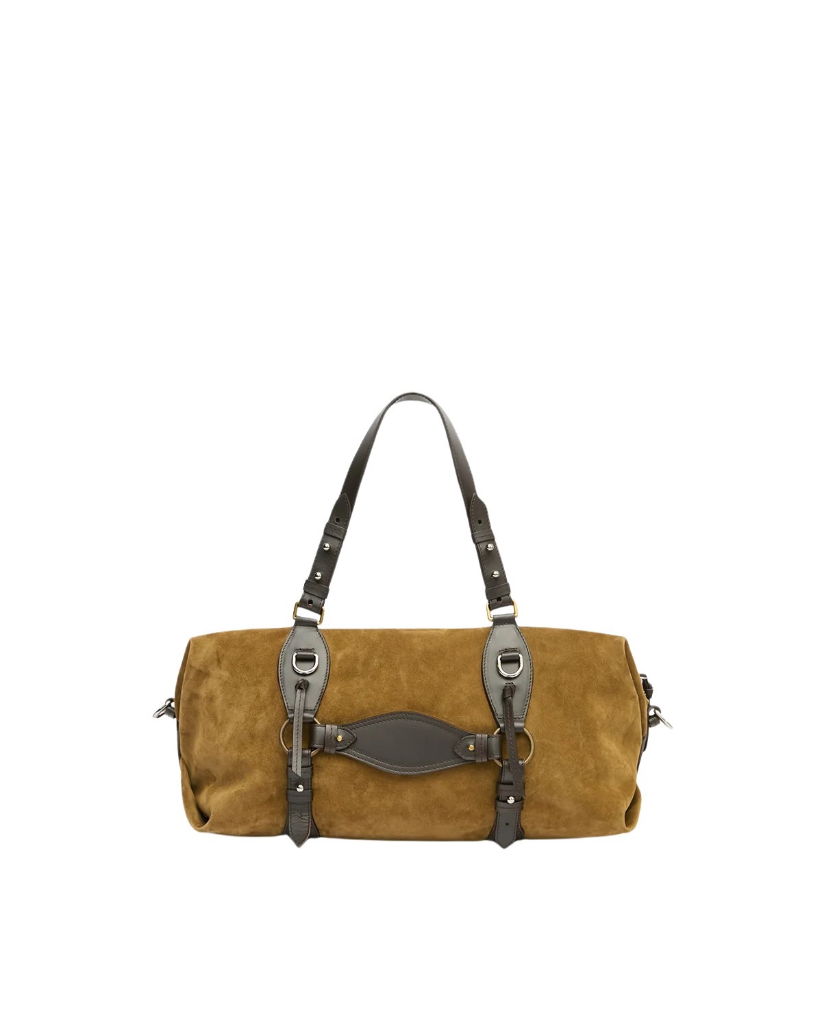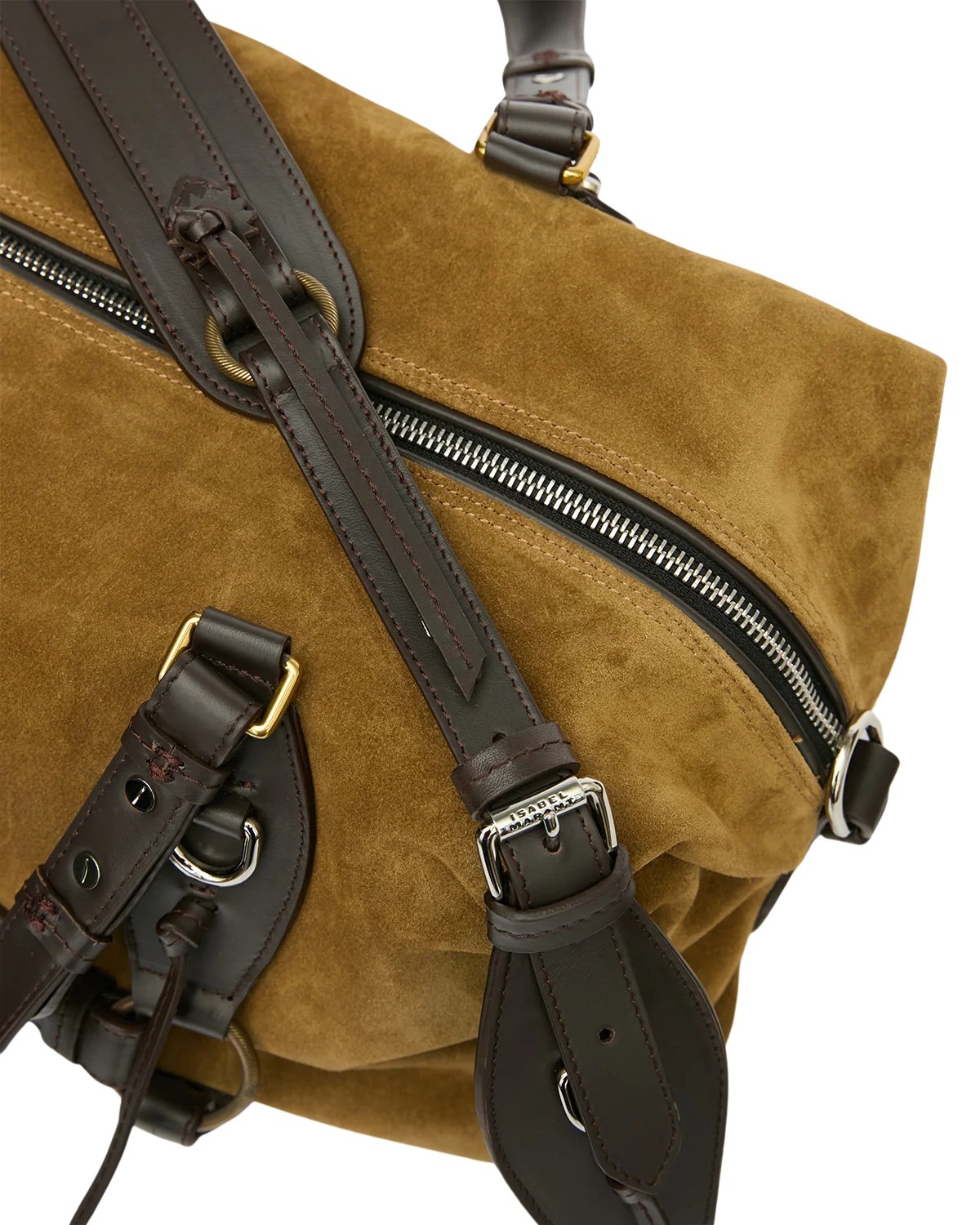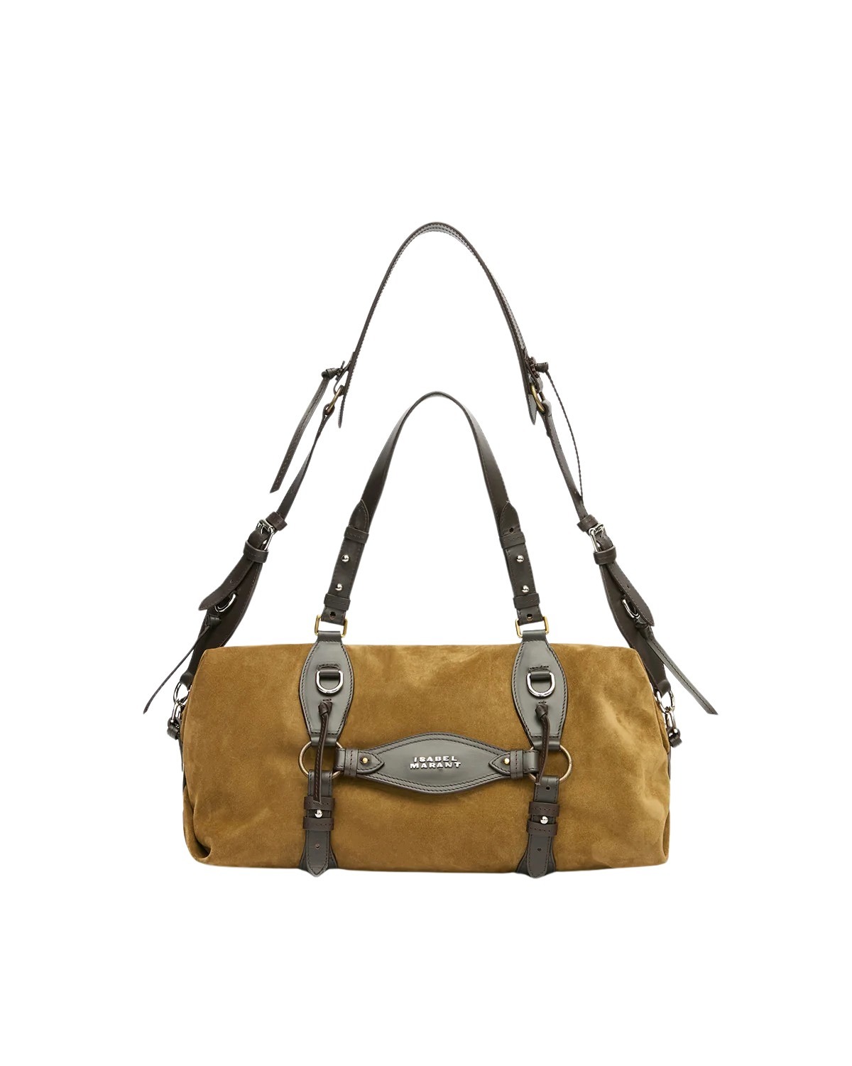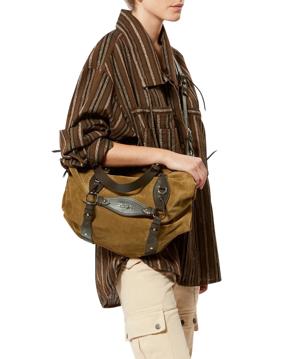 Skulderveske i semsket og glatt kalveskinn fra Isabel Marant. Vesken kan bæres i hånden eller over skulderen og har et justerbart håndtak. Designet med signaturdetaljer, toppsydde remmer og metallogo i front. Lukkes med glidelås og har praktisk innerlomme.