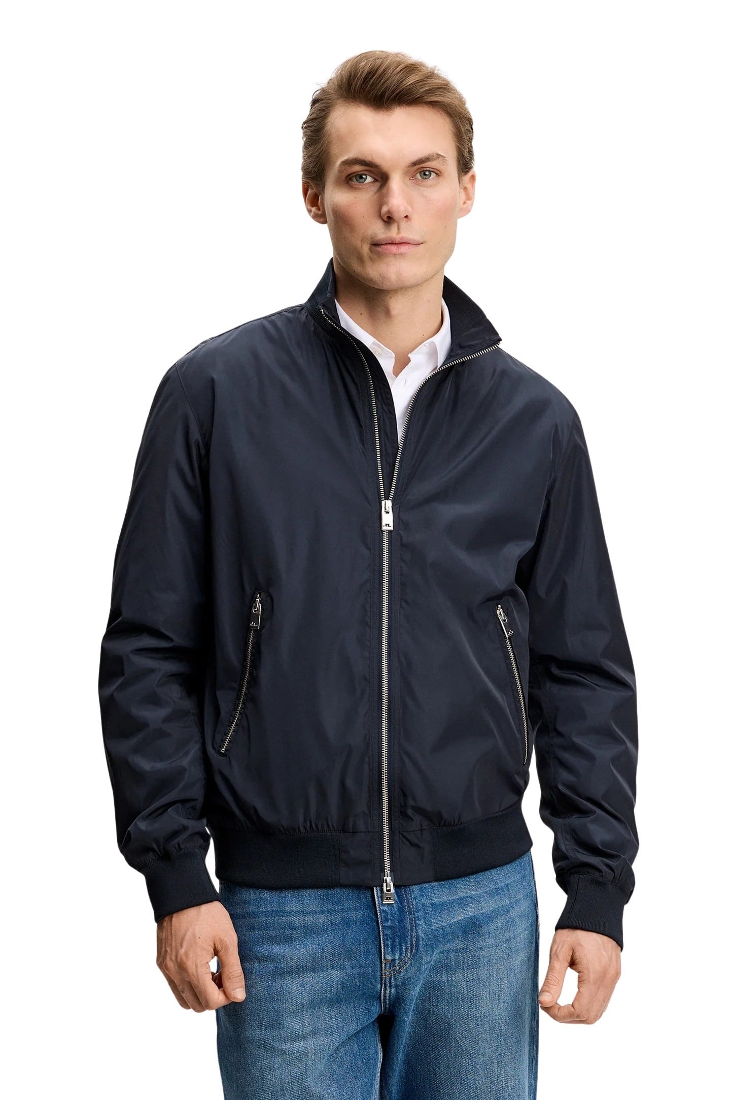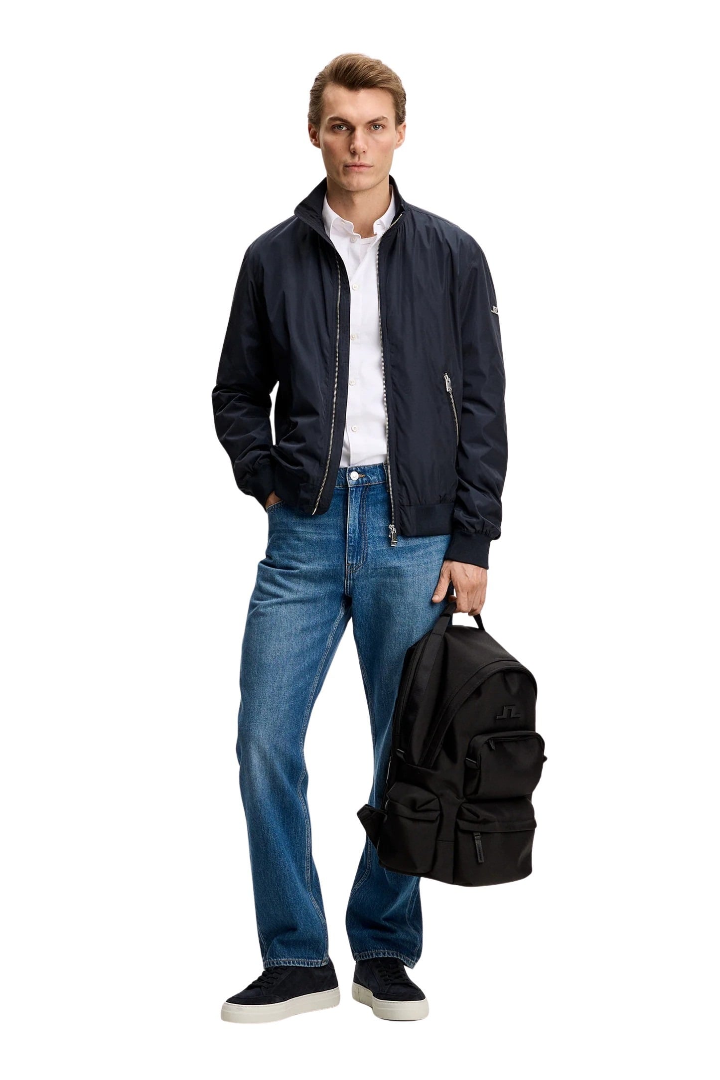 Lett jakke til herre fra J.Lindeberg med vannavstøtende overflate og renskåret design. Fullfôret modell med toveis glidelås, ribbestrikkede detaljer og flere praktiske lommer. Perfekt til bruk i overgangssesongen.