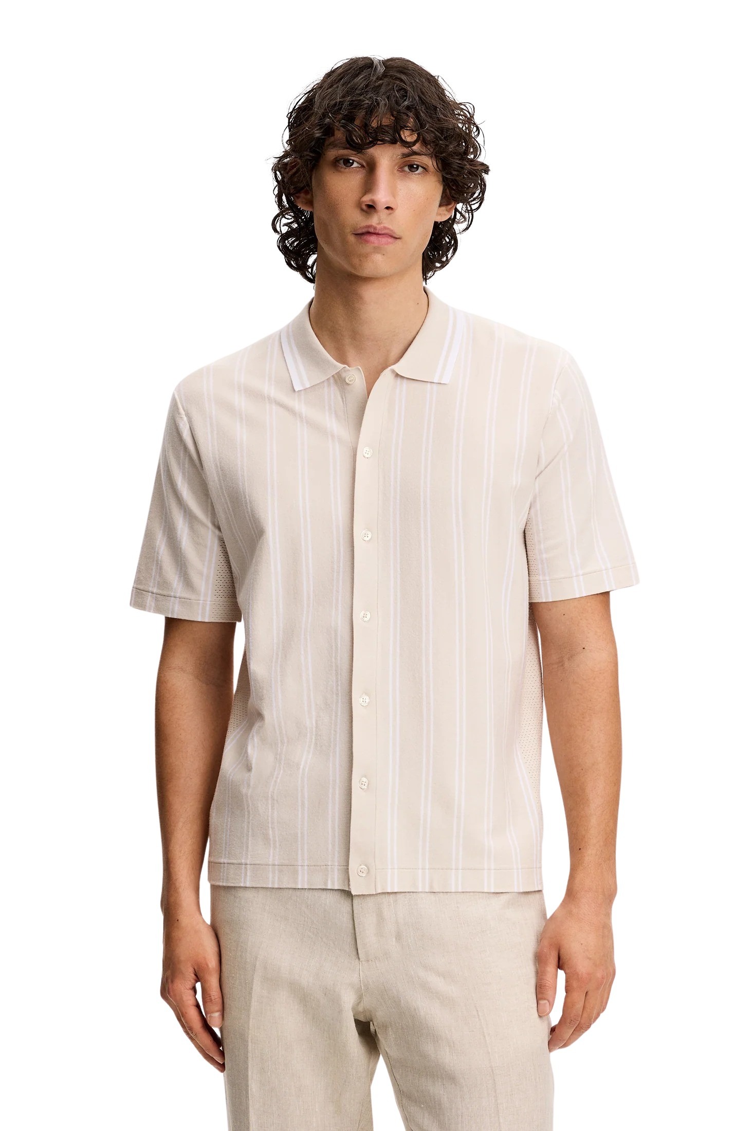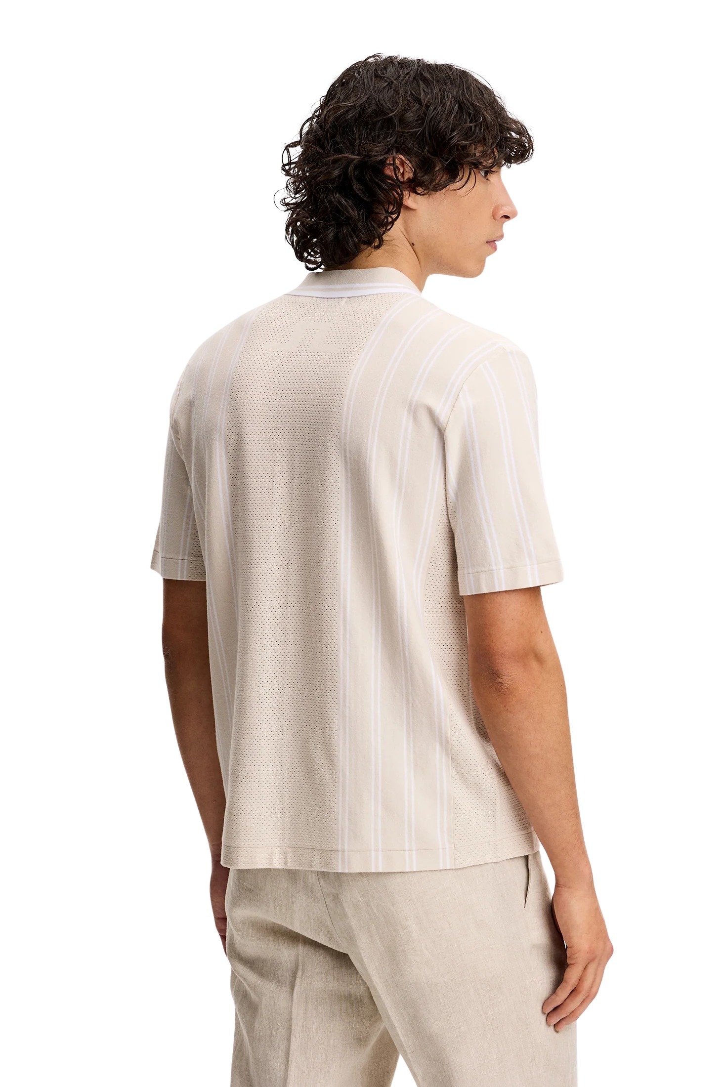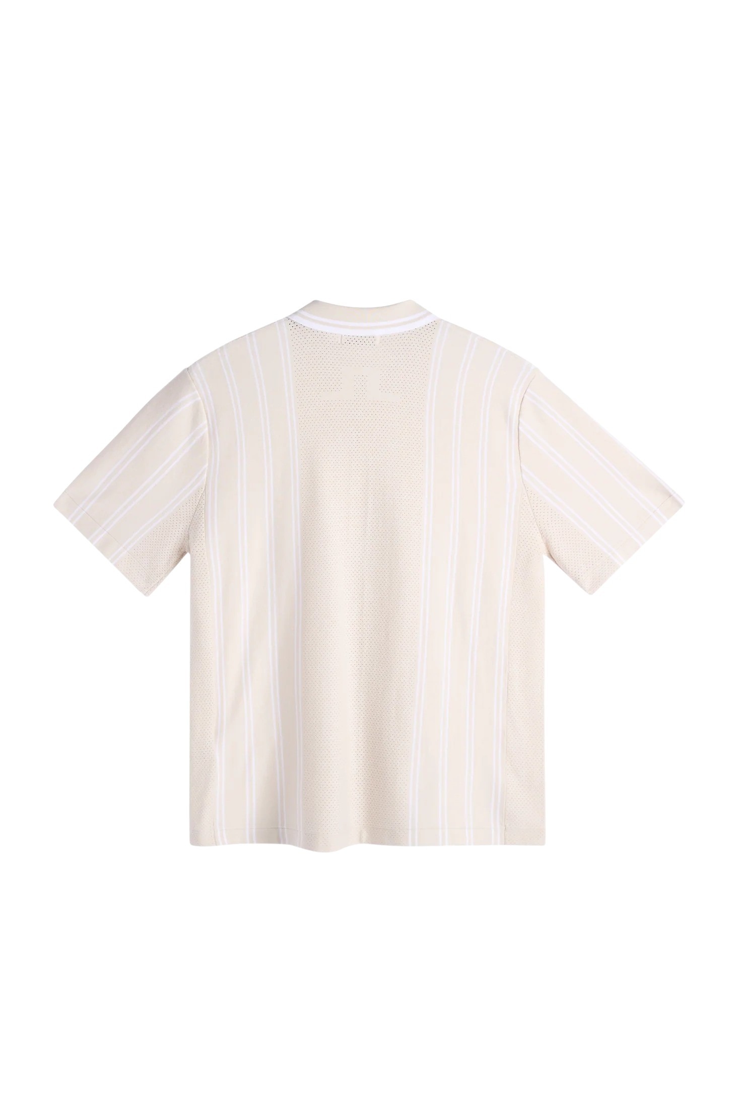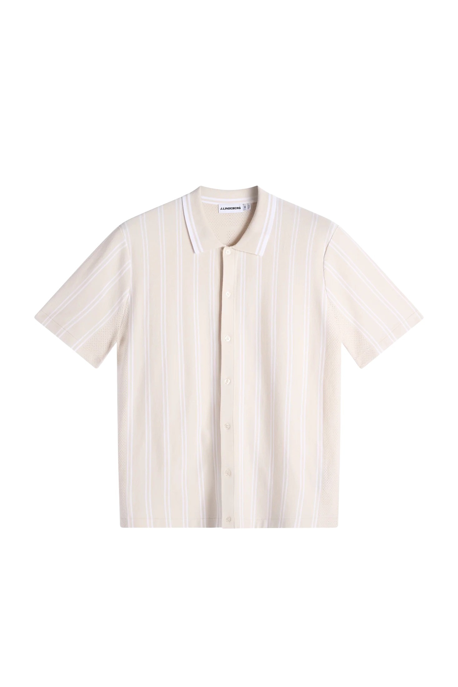 Rue Knit SS Shirt fra J.Lindeberg. En kortermet skjorte med et moderne, strikket uttrykk og elegante ribbestrikkede detaljer. Den har flatstrikket krage, gjennomgående knappelukking og nettingpartier som gir lett pusteevne og komfort. En stilren modell som balanserer sporty og sofistikert. Perfekt til varme dager og uformelle anledninger.