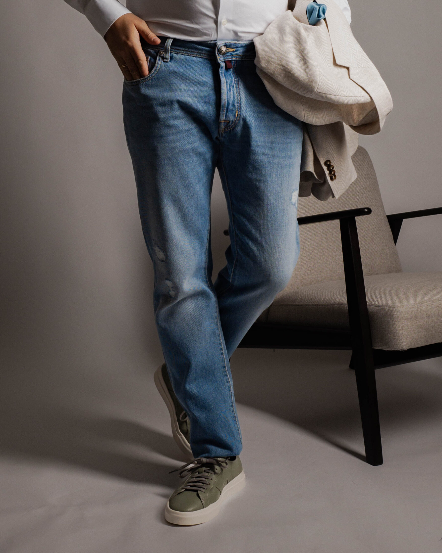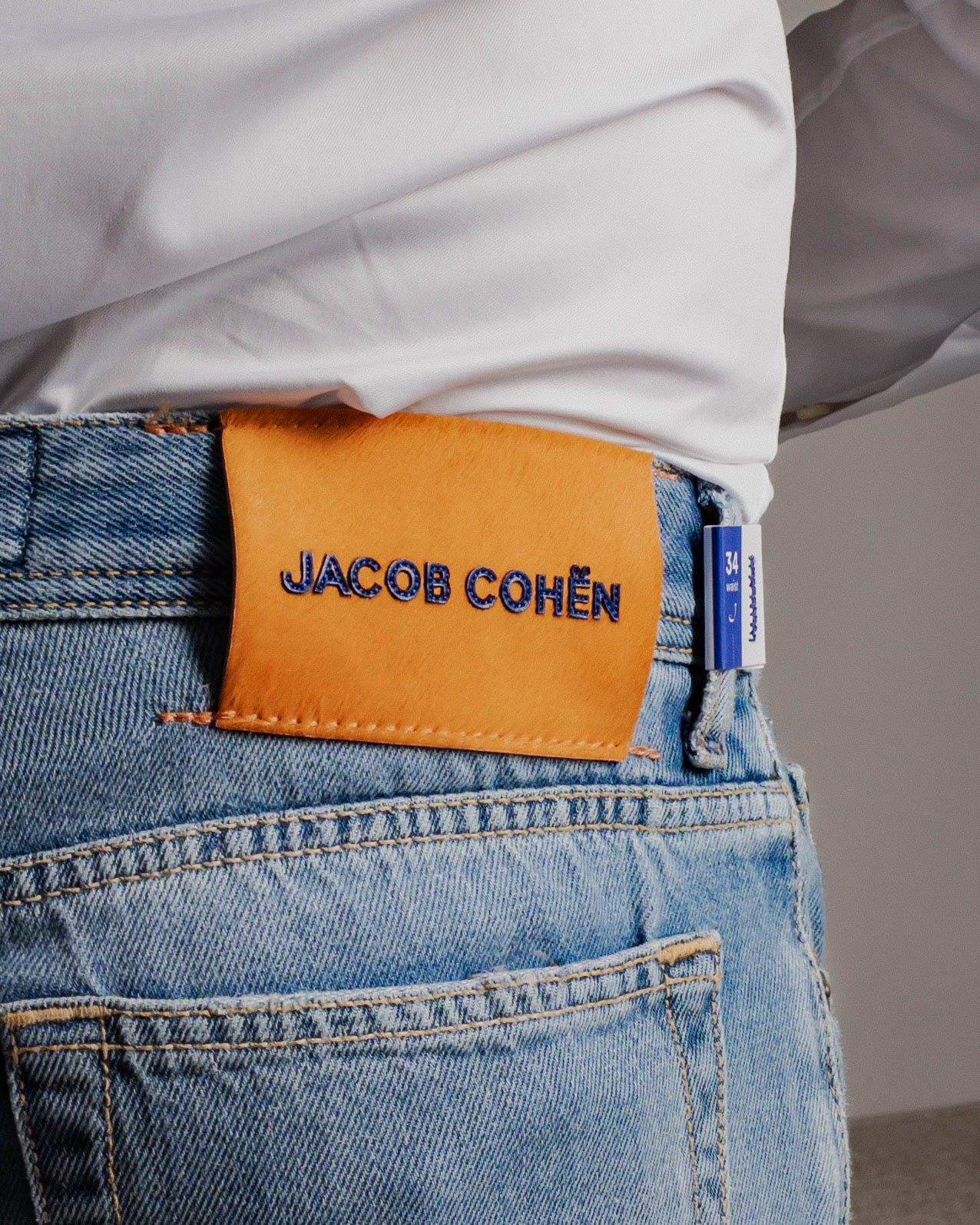 Jacob Cohen jeans i modell Bard. Lys blå vask med stemplet logo knapp i metall og klassiske søm detaljer. Kult design på patch, med skinn og pels detaljer og stemplet logo i midten . Laget i Italia. Parfymert med Jacob Cohen unike duft. Modellen Bard er rett i modellen og kommer i 34″ lengde. Trenger du og få lagt opp buksen besøk en av våre butikker.