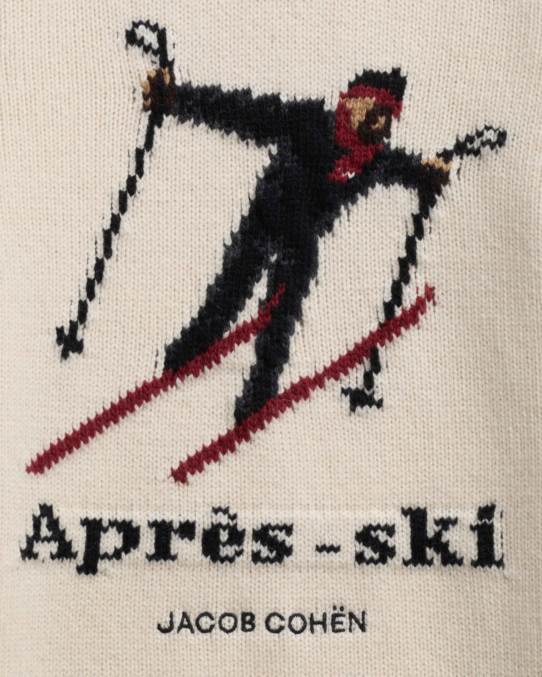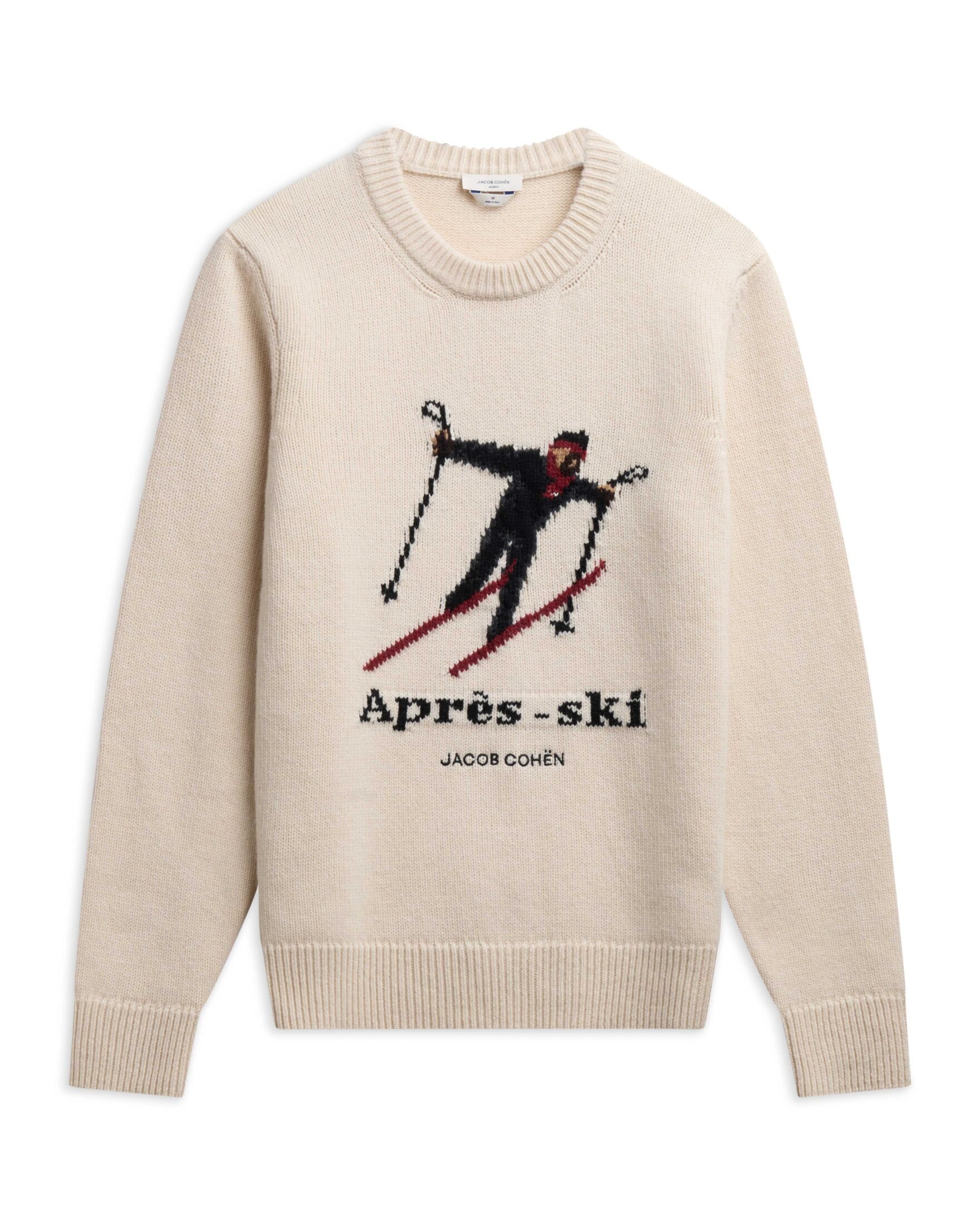 Denne eksklusive genseren til herre fra Jacob Cohën kombinerer luksus og lekenhet i ekte italiensk stil. Laget i en myk og varm ull- og kasjmirblanding, med et retroinspirert “Après-ski”-motiv som gir genseren et karakteristisk uttrykk. Den tidløse rundhalsen og ribbestrikkede kantene gjør den både komfortabel og elegant. Perfekt til vinterens avslappede, men sofistikerte garderobe.