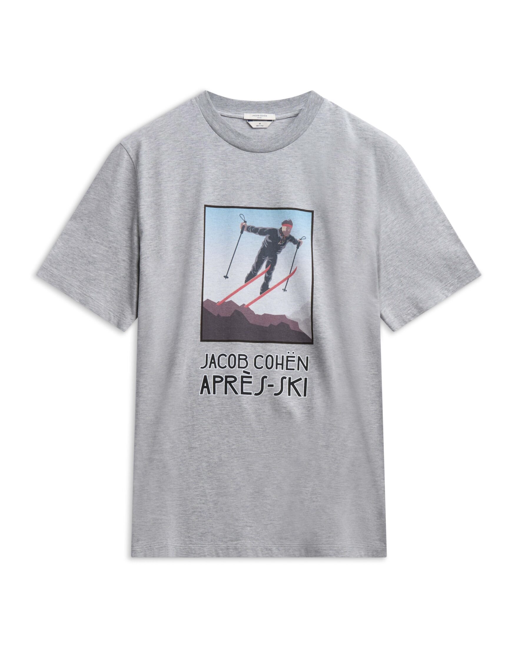 Denne stilrene t-skjorten til herre fra Jacob Cohën henter inspirasjon fra klassisk alpestil med sitt ikoniske “Après-ski”-motiv. Laget i myk og pustende bomull som gir en komfortabel passform og en eksklusiv følelse mot huden. Et perfekt plagg for deg som ønsker en avslappet men raffinert look, enten alene eller under en strikkegenser eller jakke.