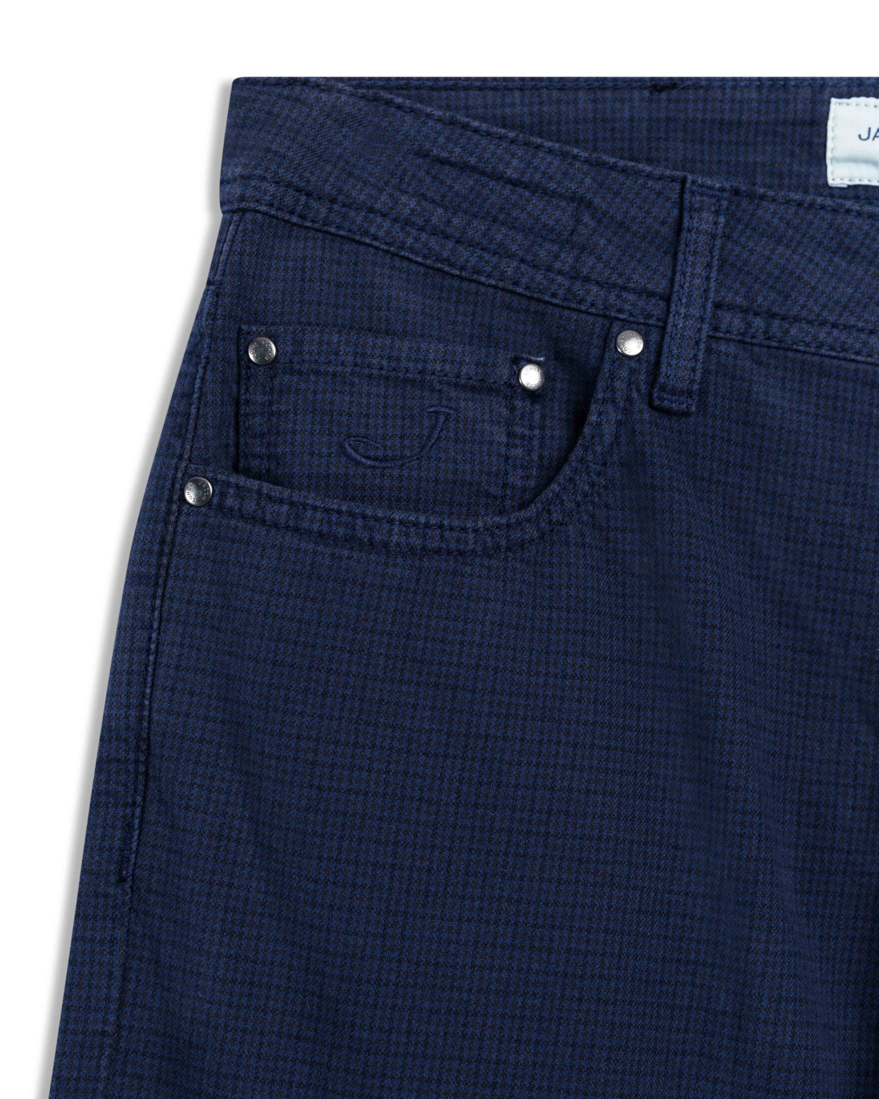 Bukse til herre fra Jacob Cohën. Laget i en komfortabel blanding av bomull og elastan, mmed et subtilt, vevd mønster som gir et eksklusivt uttrykk. Bard har en smal passform og rene silhuett som gjør dem perfekte både til hverdags og mer oppdressede anledninger.