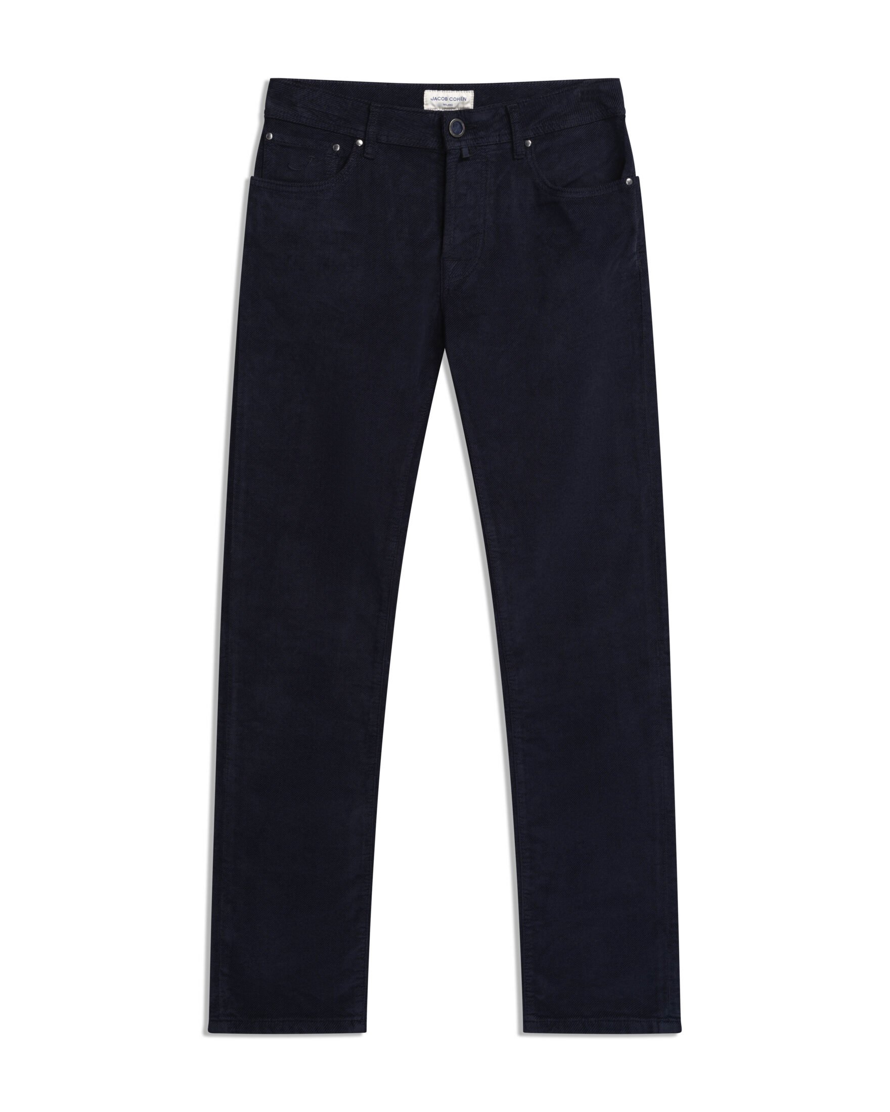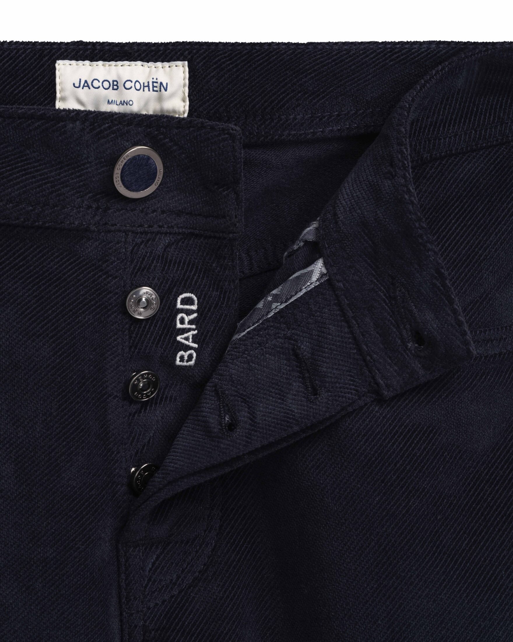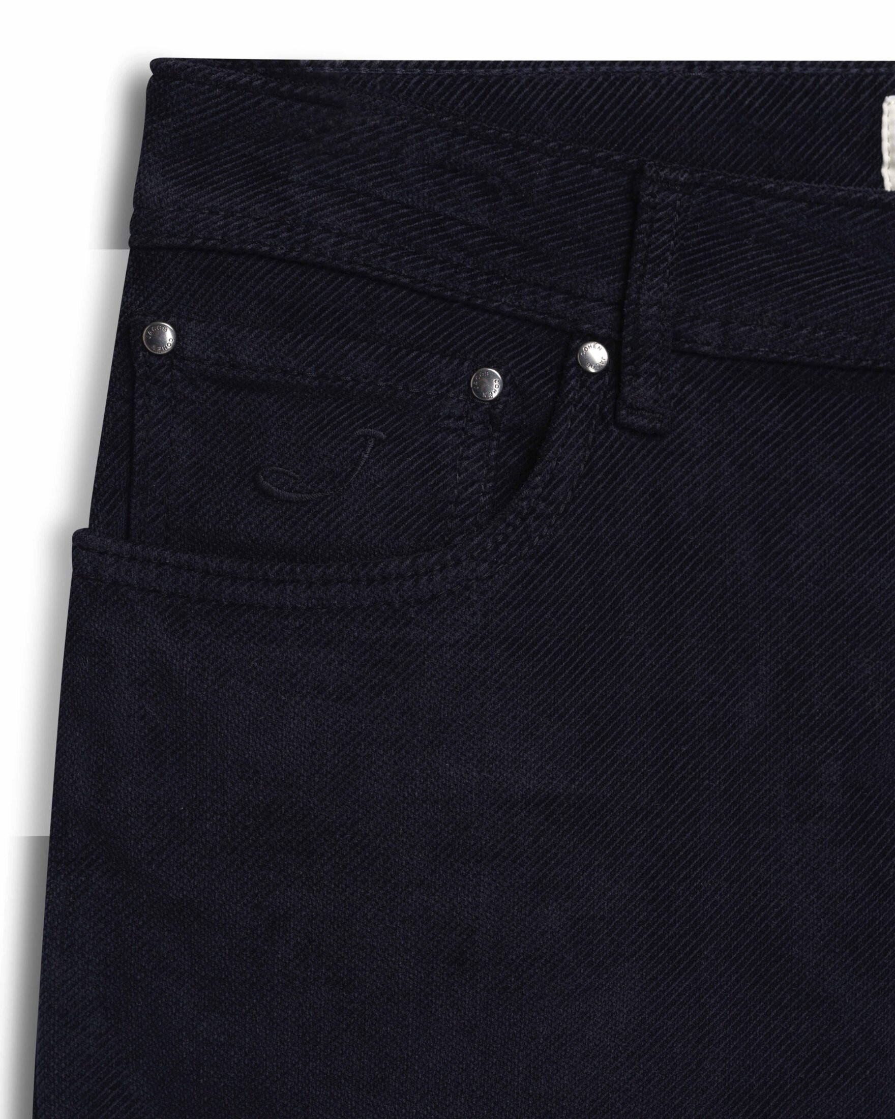 Bukse til herre fra Jacob Cohën. Elegant bukse laget i en luksuriøs fløyelskvalitet som gir en myk og raffinert overflate med diskret glans. Modellen Bard har en klassisk, smal passform med normal livhøyde. Perfekt til både hverdags og penere anledninger, der du ønsker en bukse som kombinerer komfort, eleganse og italiensk håndverk.