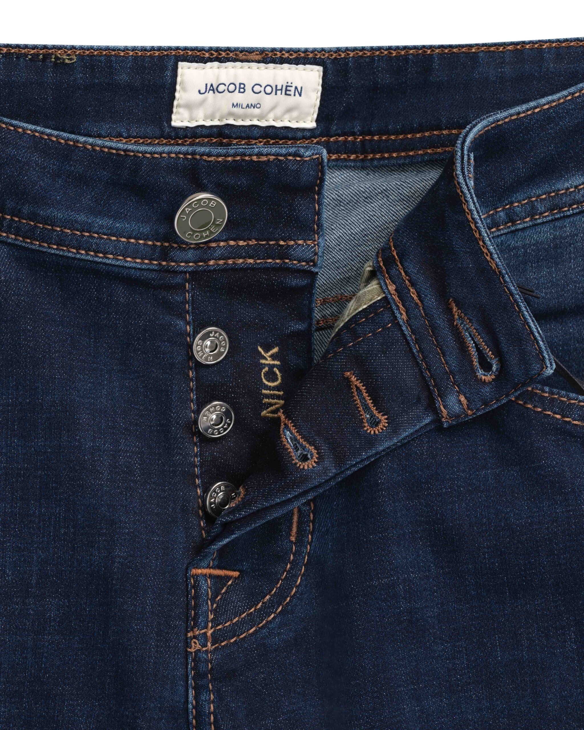 Jeans til herre fra Jacob Cohën. Modellen Nick kombinerer italiensk håndverk med moderne komfort. Den smale, rette passformen gir et tidløst og elegant uttrykk, mens den myke stretch-denimen sikrer bevegelsesfrihet og høy komfort gjennom hele dagen.