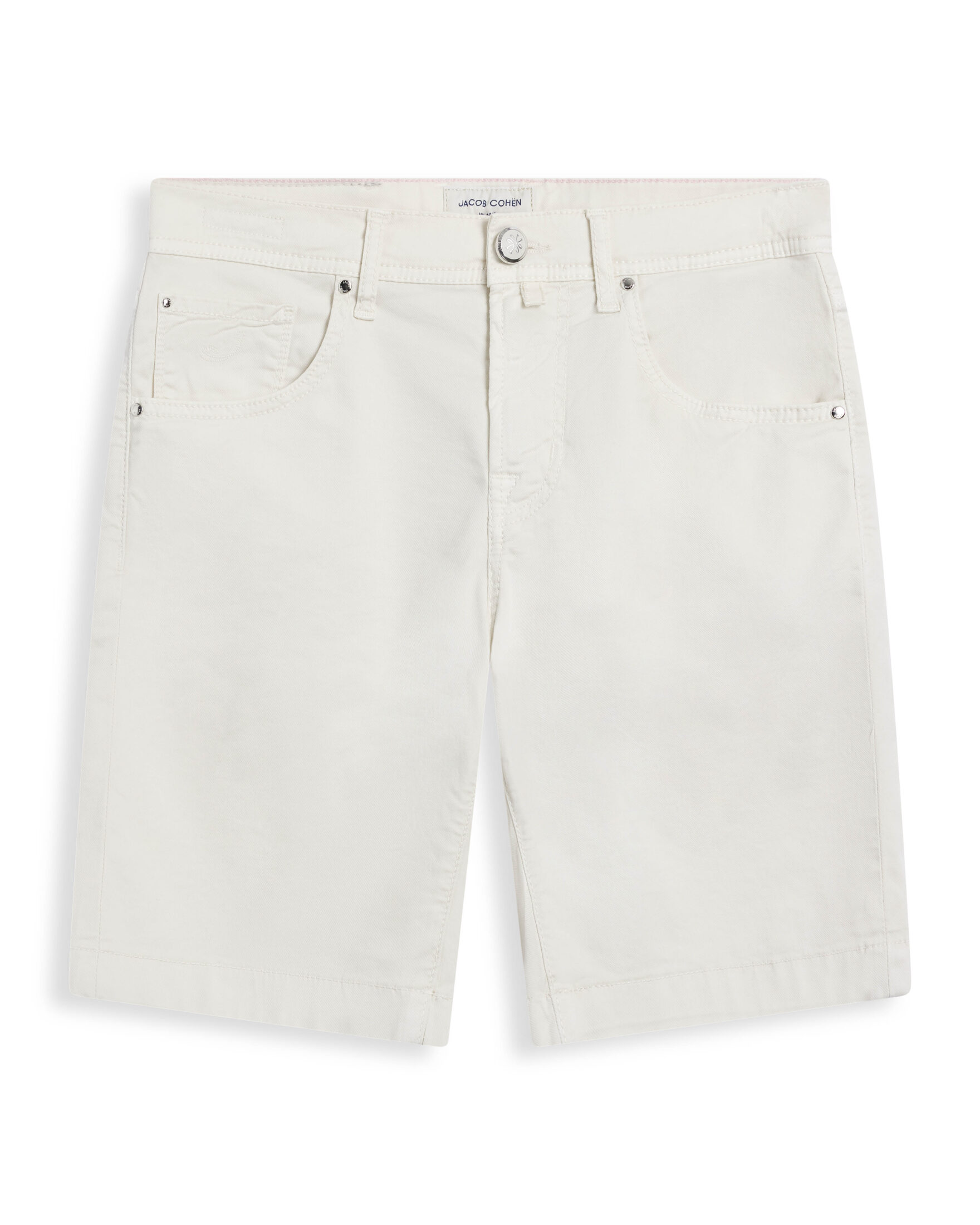 Nicolas Shorts til herre fra Jacob Cohën. Laget i vevd bomull med stretch som gir en komfortabel og lett følelse på varme dager. En klassisk og stilren modell med sofistikerte detaljer som gjør den like egnet til hverdags som til mer velkledde sommerantrekk.