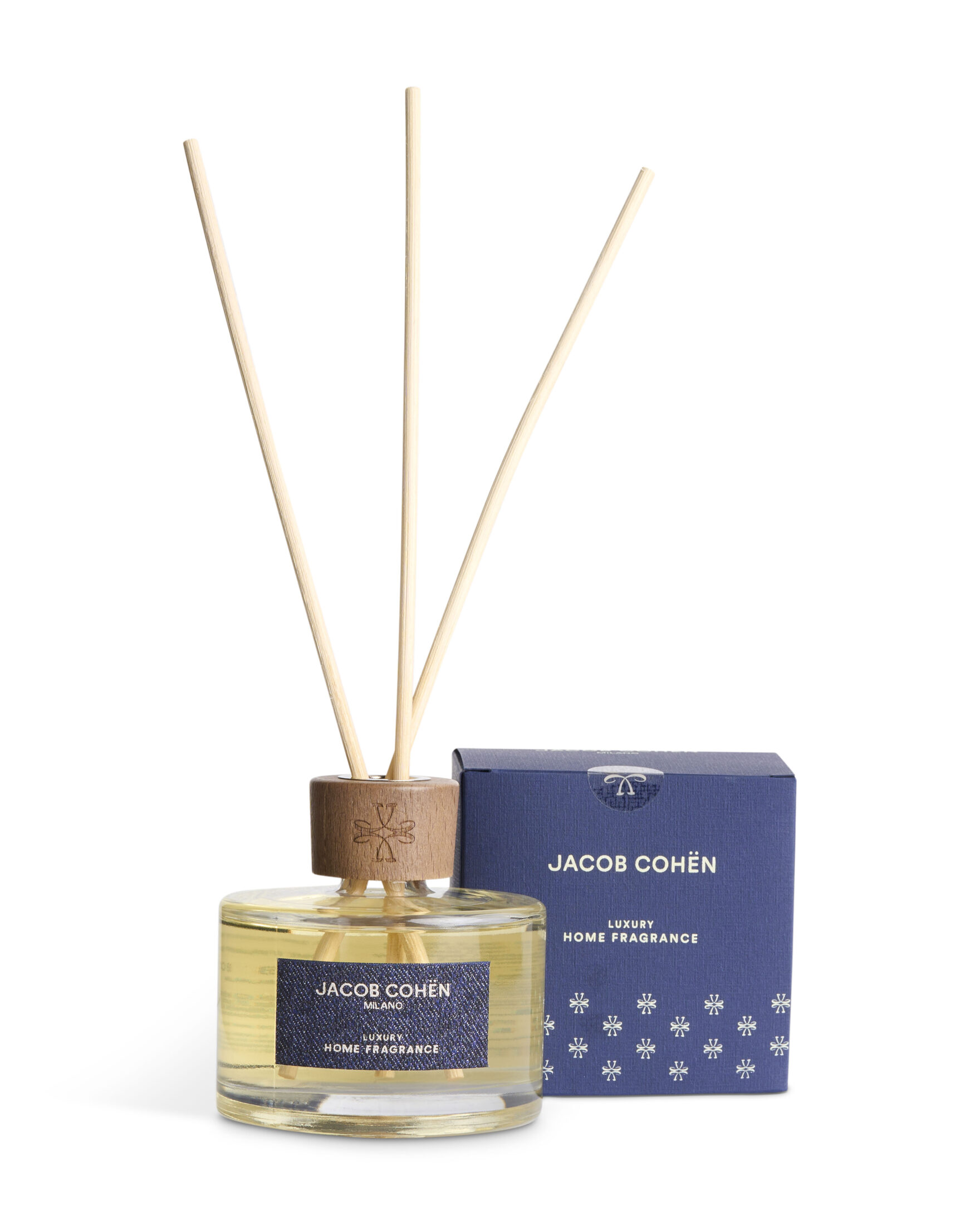 Duftpinner fra Jacob Cohën. Fylt med merkets anerkjente og eksklusive signaturduft. En sofistikert og behagelig aroma som gir hjemmet et elegant preg, presentert i en stilren glassflaske med duftpinner.